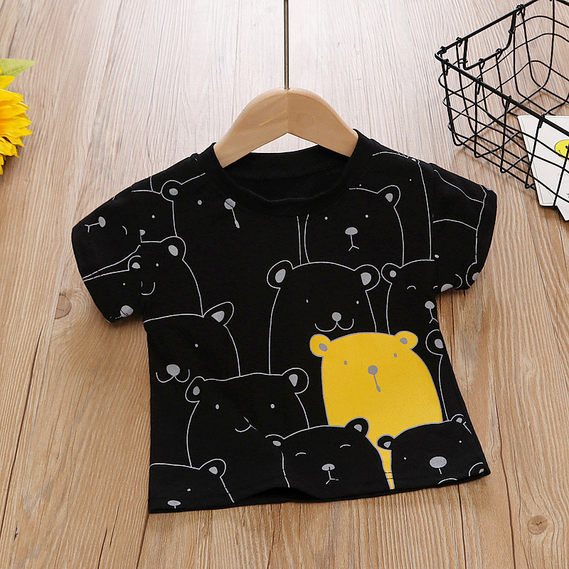 소년과 소녀 반팔 티셔츠 2025 여름 어린이 만화 프린트 반팔 땀 흡수 통기성 외국 스타일 아동상의스토어 가기