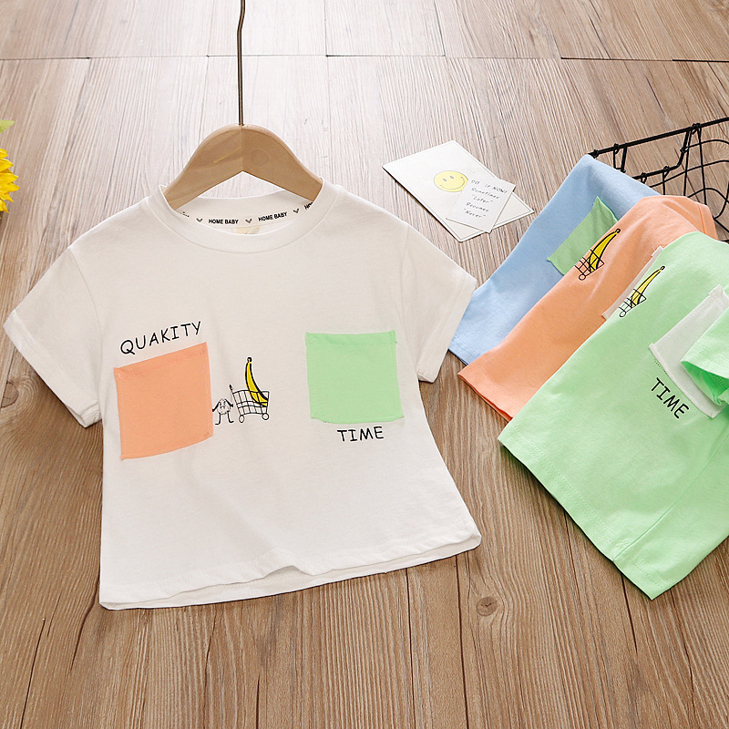 소년과 소녀 반팔 티셔츠 2025 여름 어린이 만화 프린트 반팔 땀 흡수 통기성 외국 스타일 아동상의