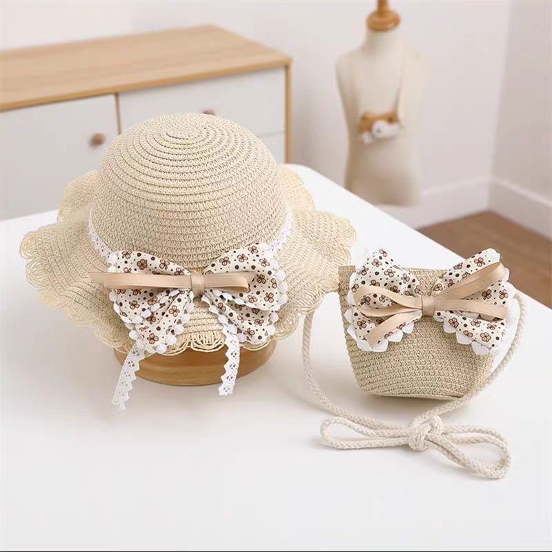 어린이 공주 태양 모자 밀짚 가방 여름 아기 태양 모자 어린이 야외 소녀 태양 모자