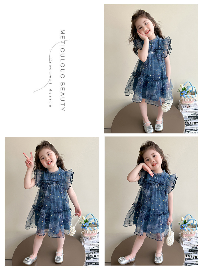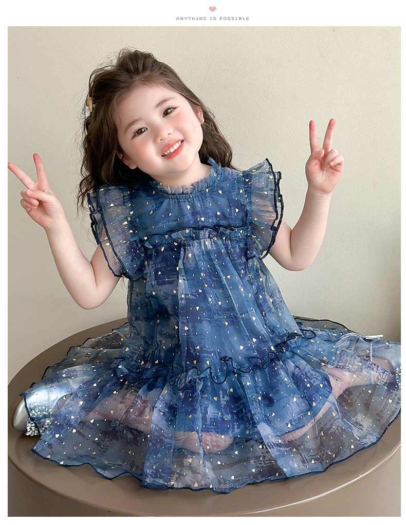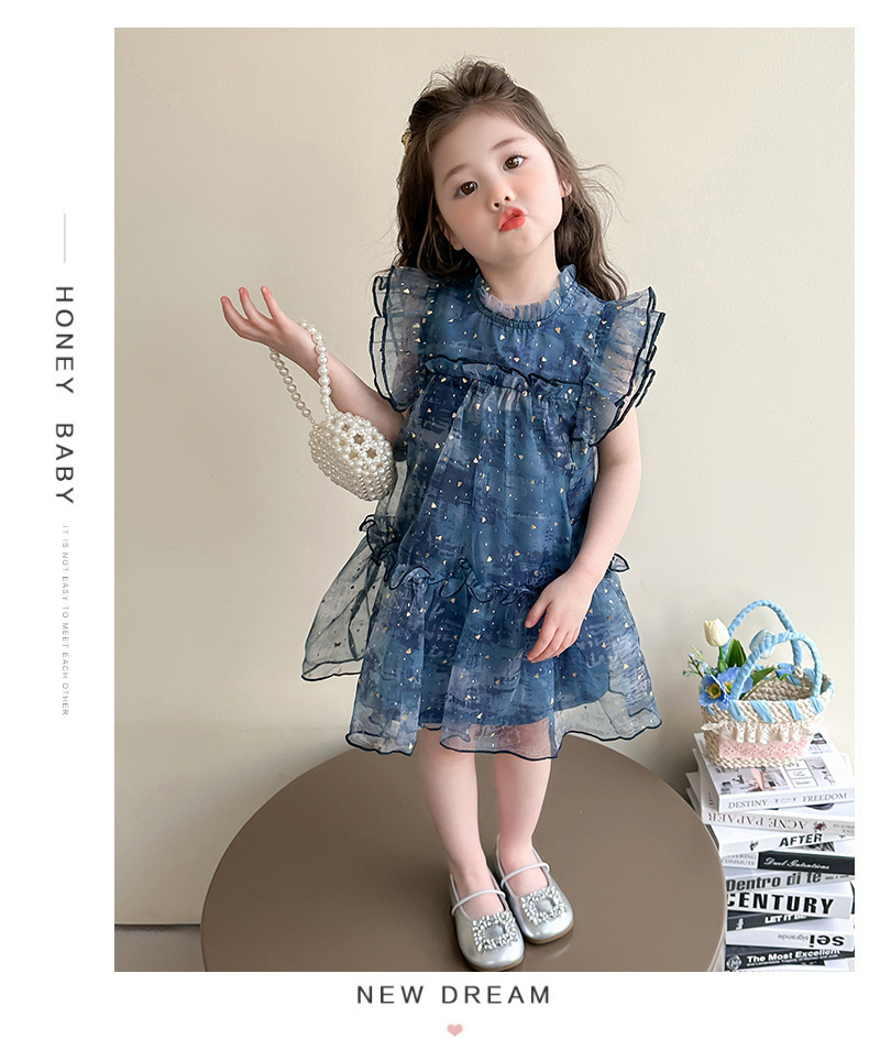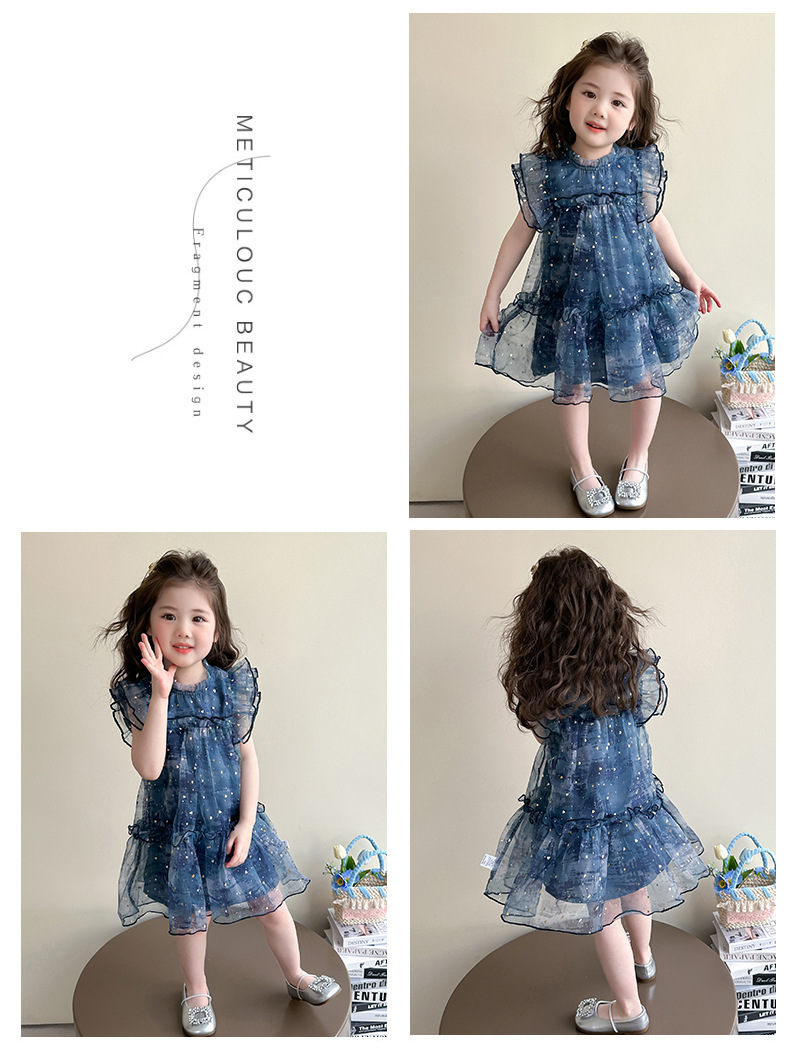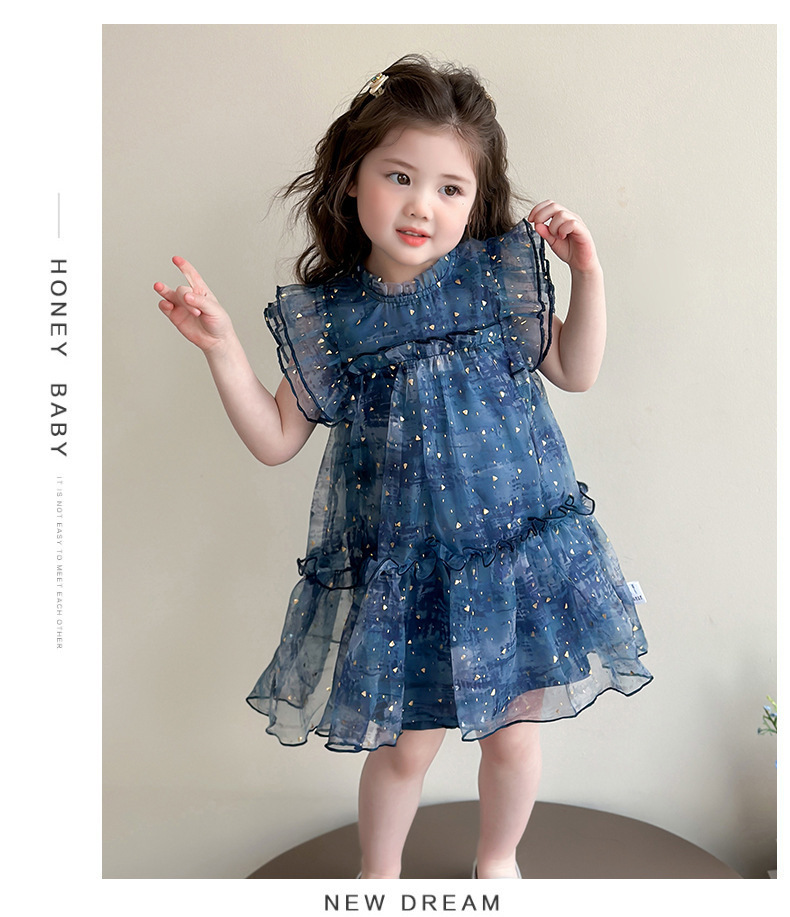 소녀 공주 치마 여름 아기 메쉬 스커트 얇은 요정 작은 비행 슬리브 어린이 치마 원피스