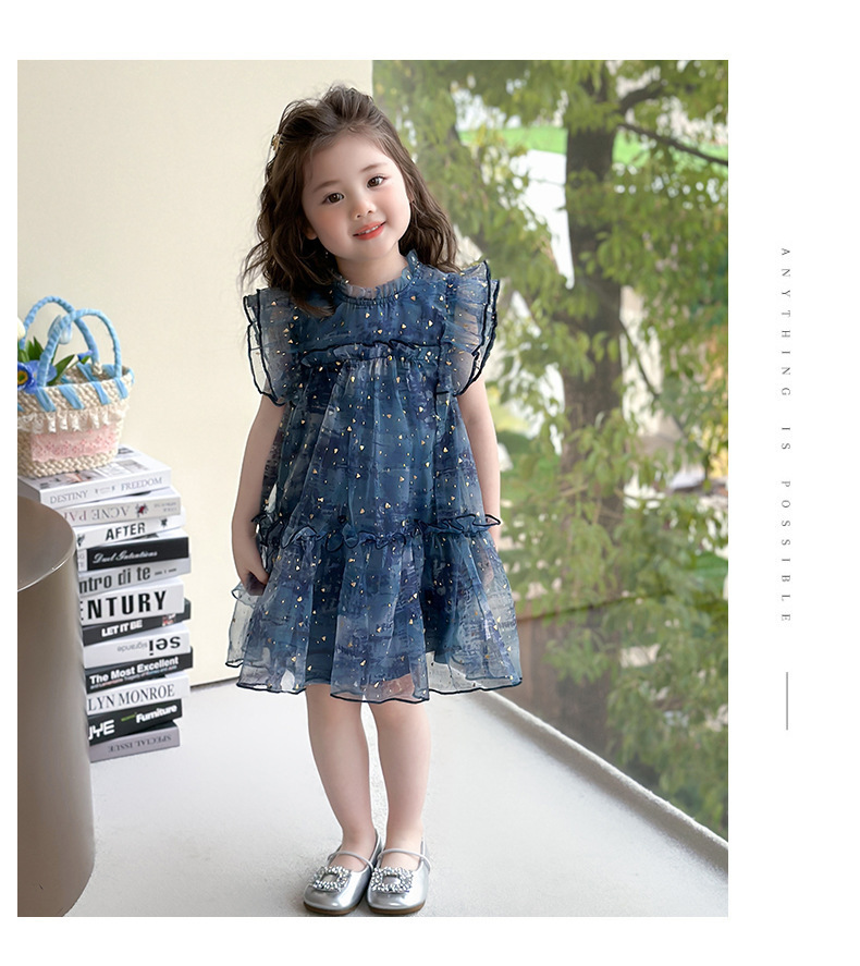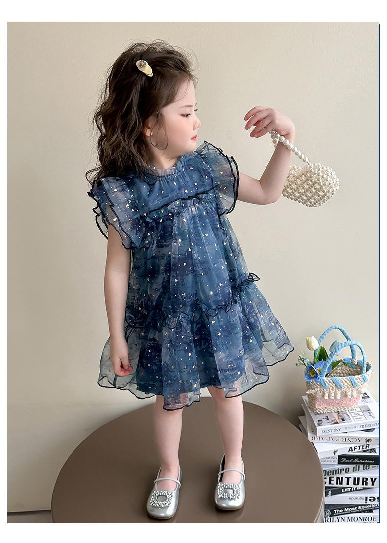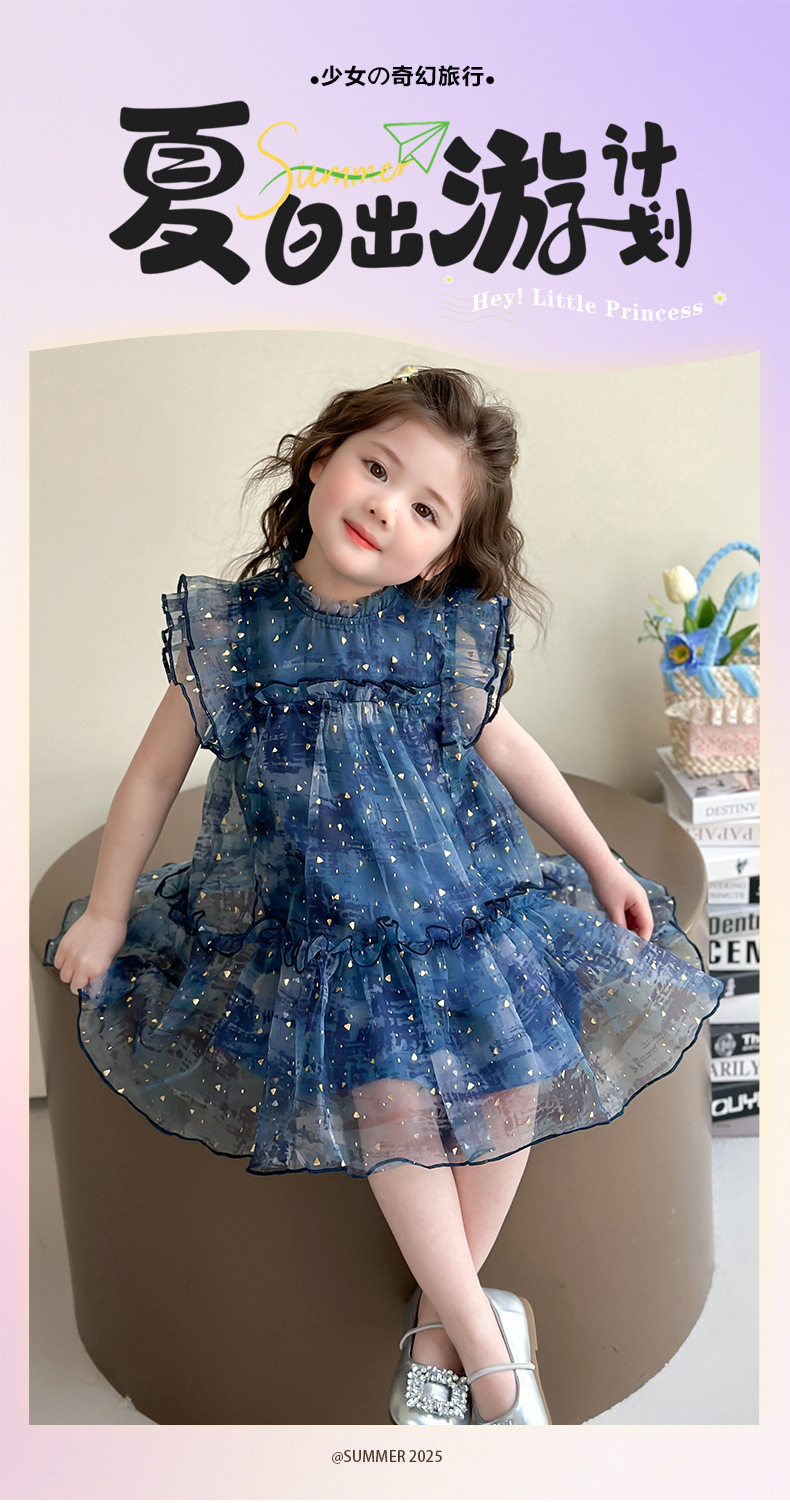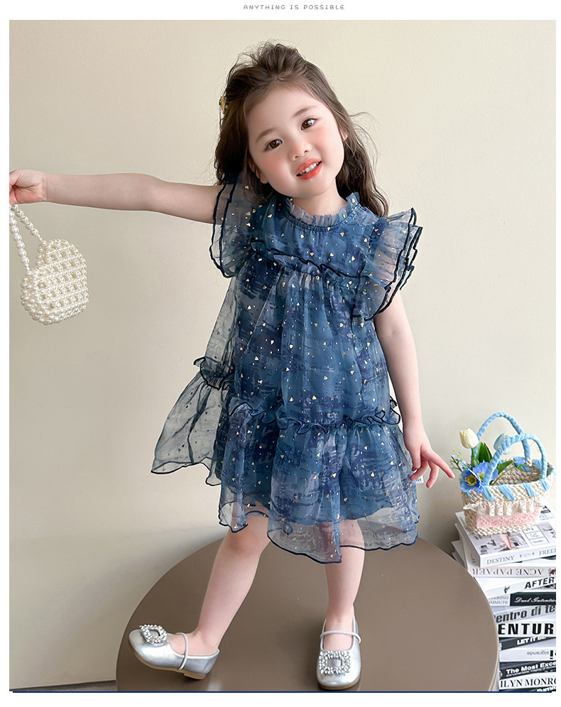 소녀 공주 치마 여름 아기 메쉬 스커트 얇은 요정 작은 비행 슬리브 어린이 치마 원피스
