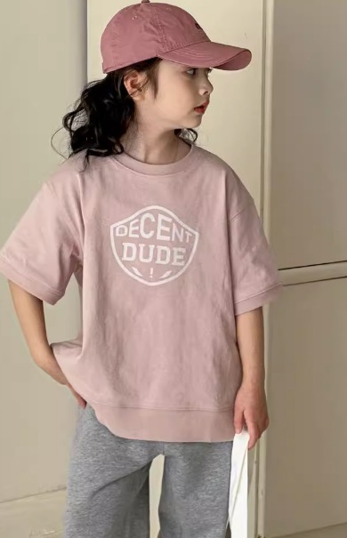 리틀 레드 피쉬 걸스 반팔 티셔츠 여름 2025 새로운 어린이 여름베이스 셔츠 큰 아이들 걸스 반소매 트렌디 T스토어 가기