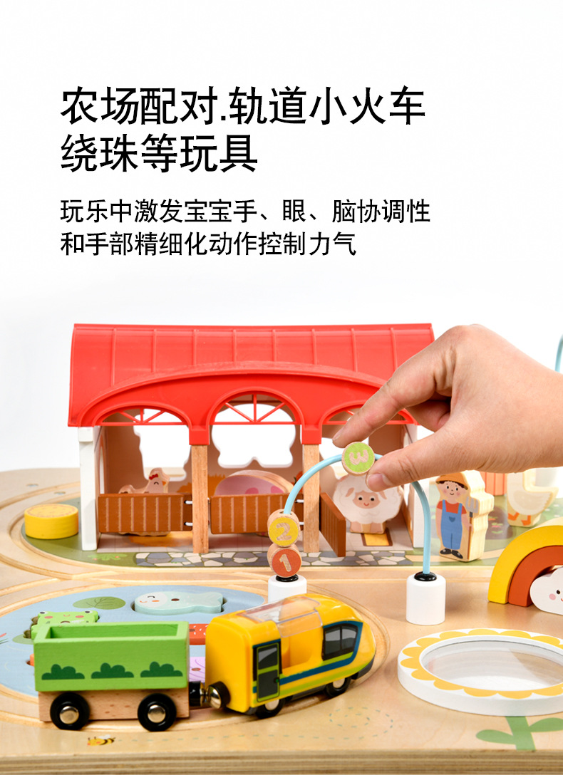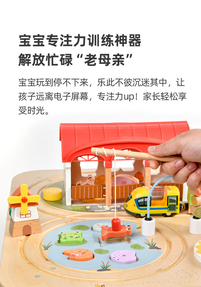 Woodnins 나무 조기 교육 바쁜 테이블 어린이 교육 다기능 자기 낚시 두드리는 기차 트랙 장난감스토어 가기