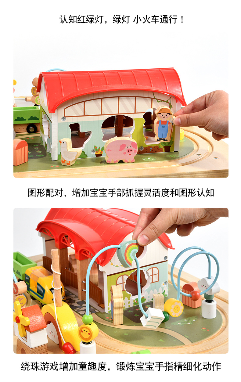 Woodnins 나무 조기 교육 바쁜 테이블 어린이 교육 다기능 자기 낚시 두드리는 기차 트랙 장난감