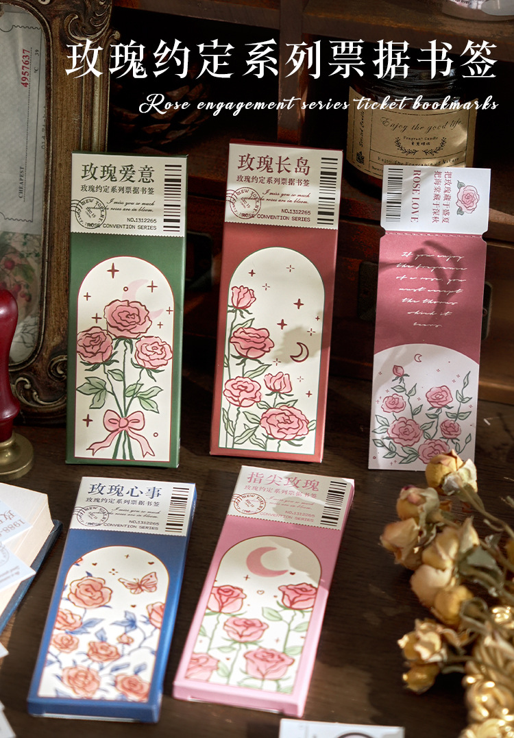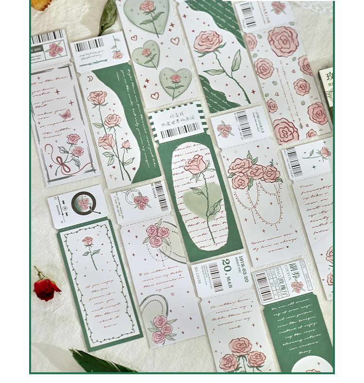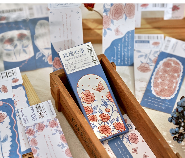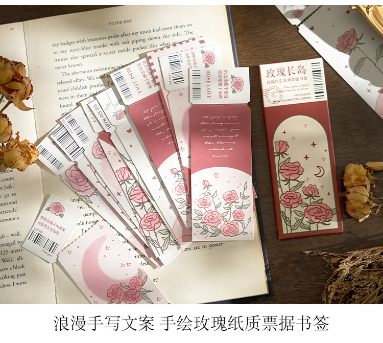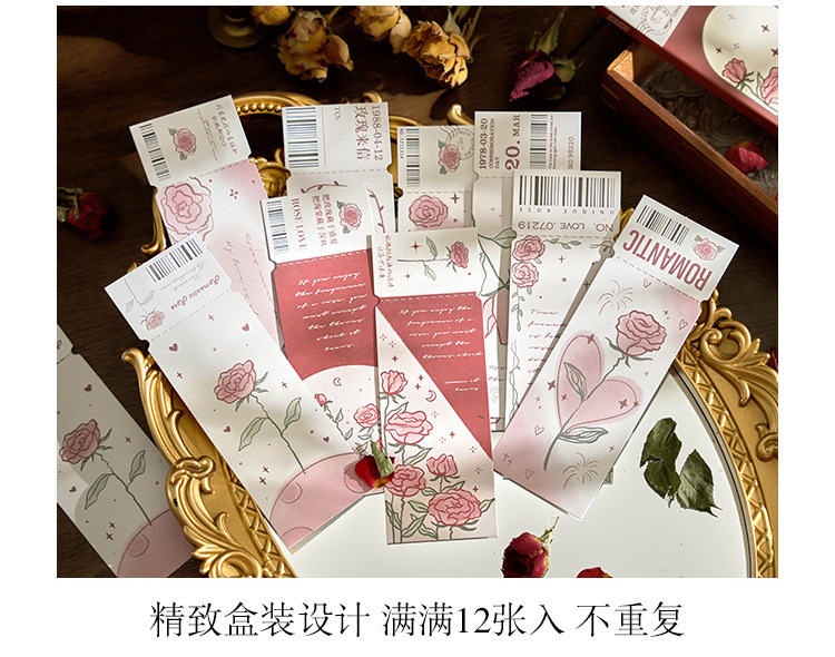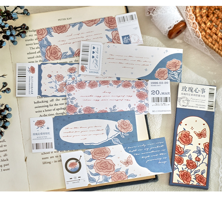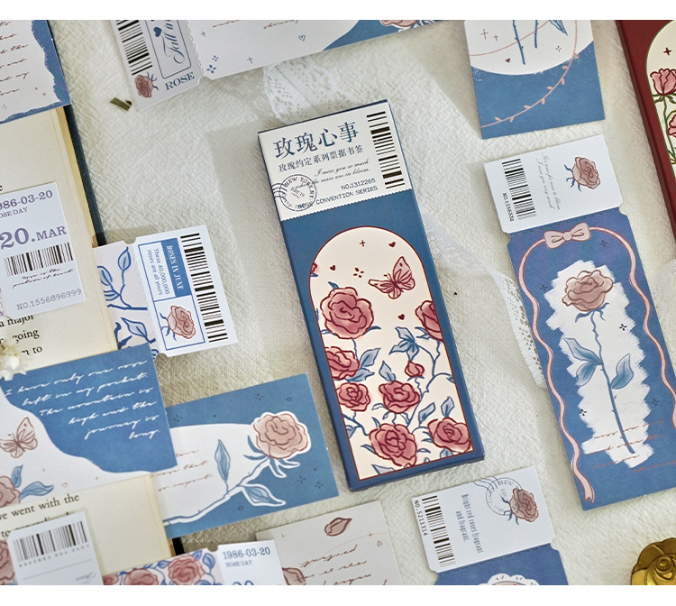 자오 모 북마크 로즈 컨벤션 시리즈 레트로 손으로 그린 만화 로즈 종이 북마크 독서 책자스토어 가기
