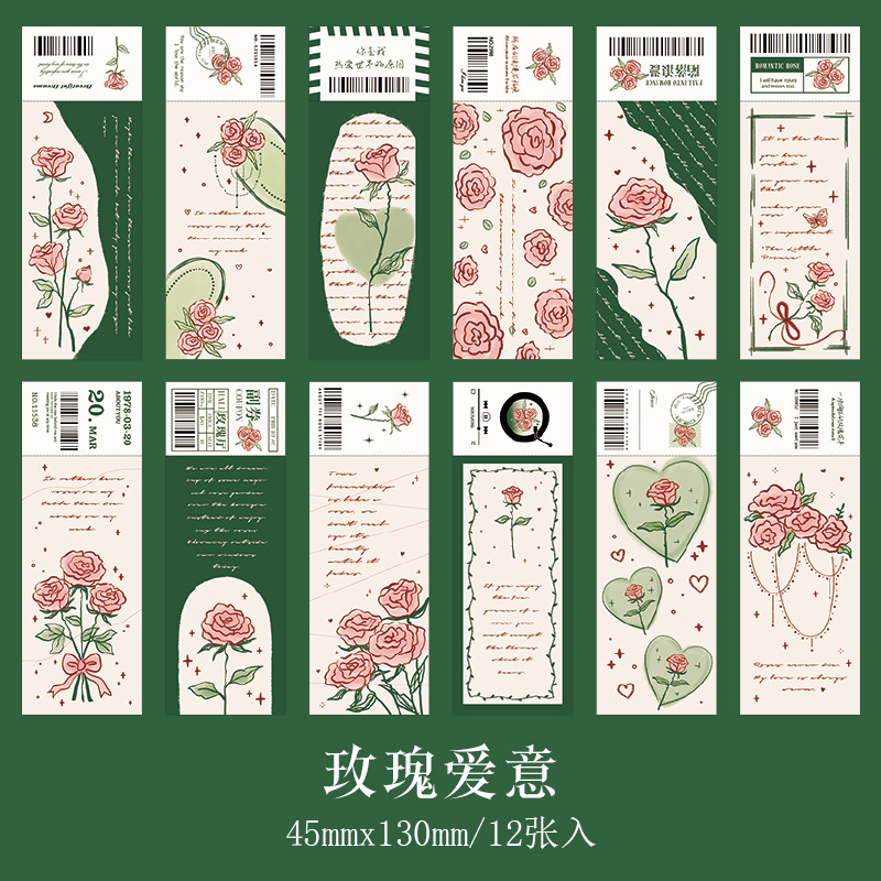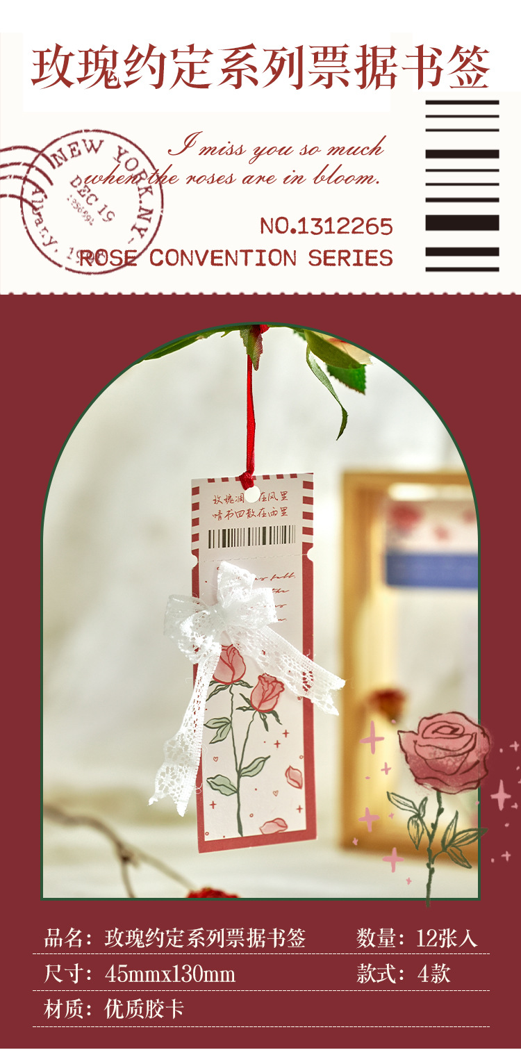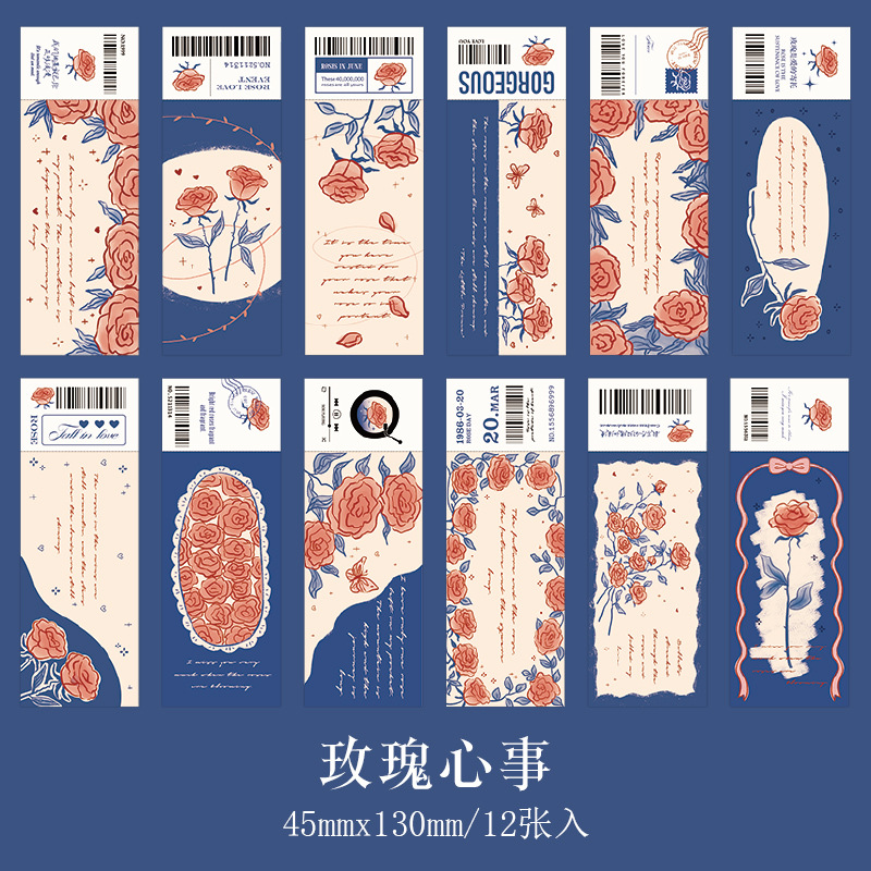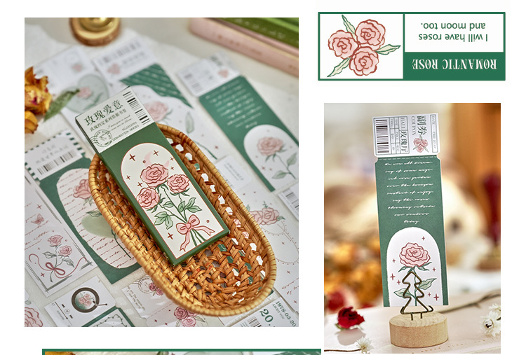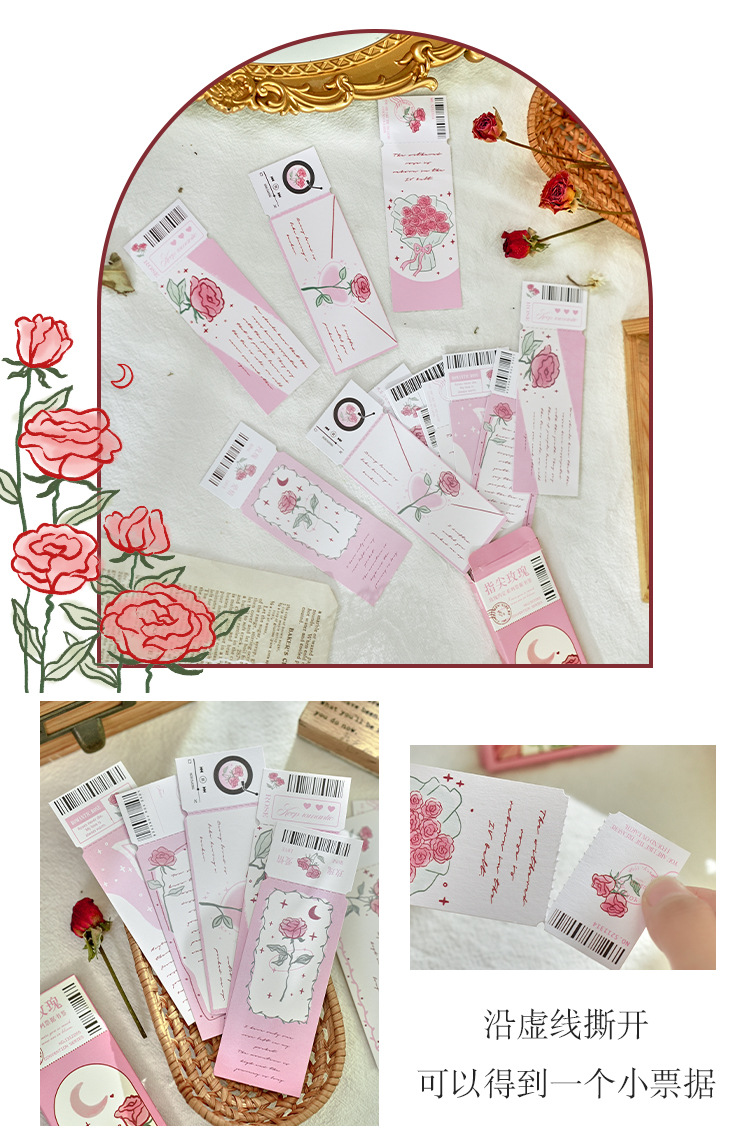 자오 모 북마크 로즈 컨벤션 시리즈 레트로 손으로 그린 만화 로즈 종이 북마크 독서 책자스토어 가기