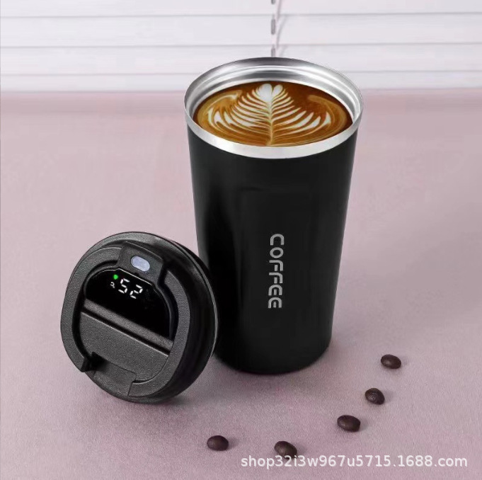 국경 간 스테인레스 스틸 보온병 컵 더블 레이어 진공 플립 뚜껑 커피 컵 지능형 온도 디스플레이 고가 커플 자동차 워터 컵스토어 가기