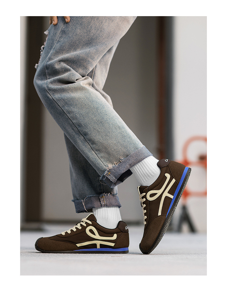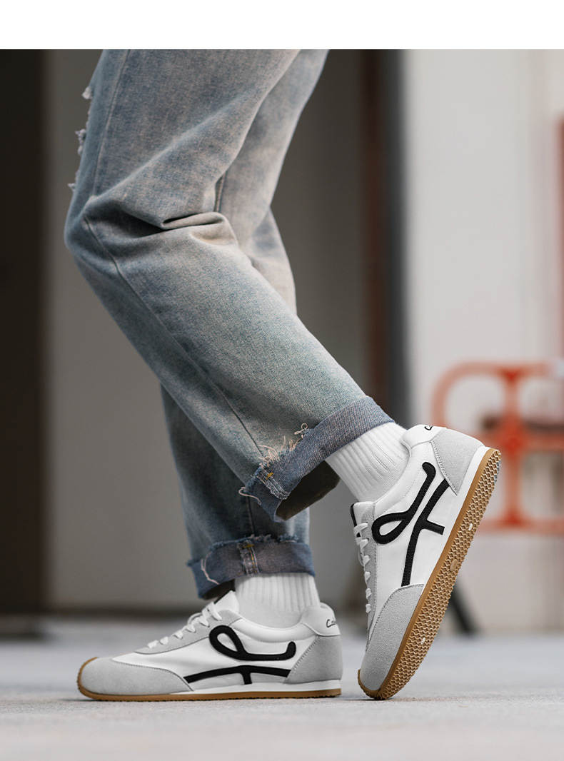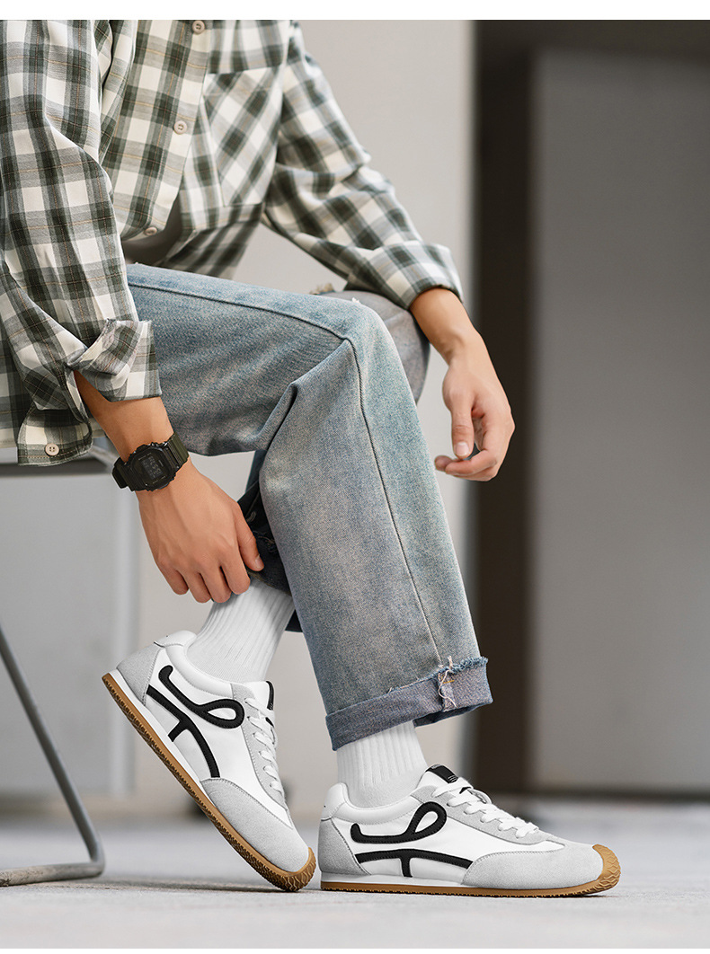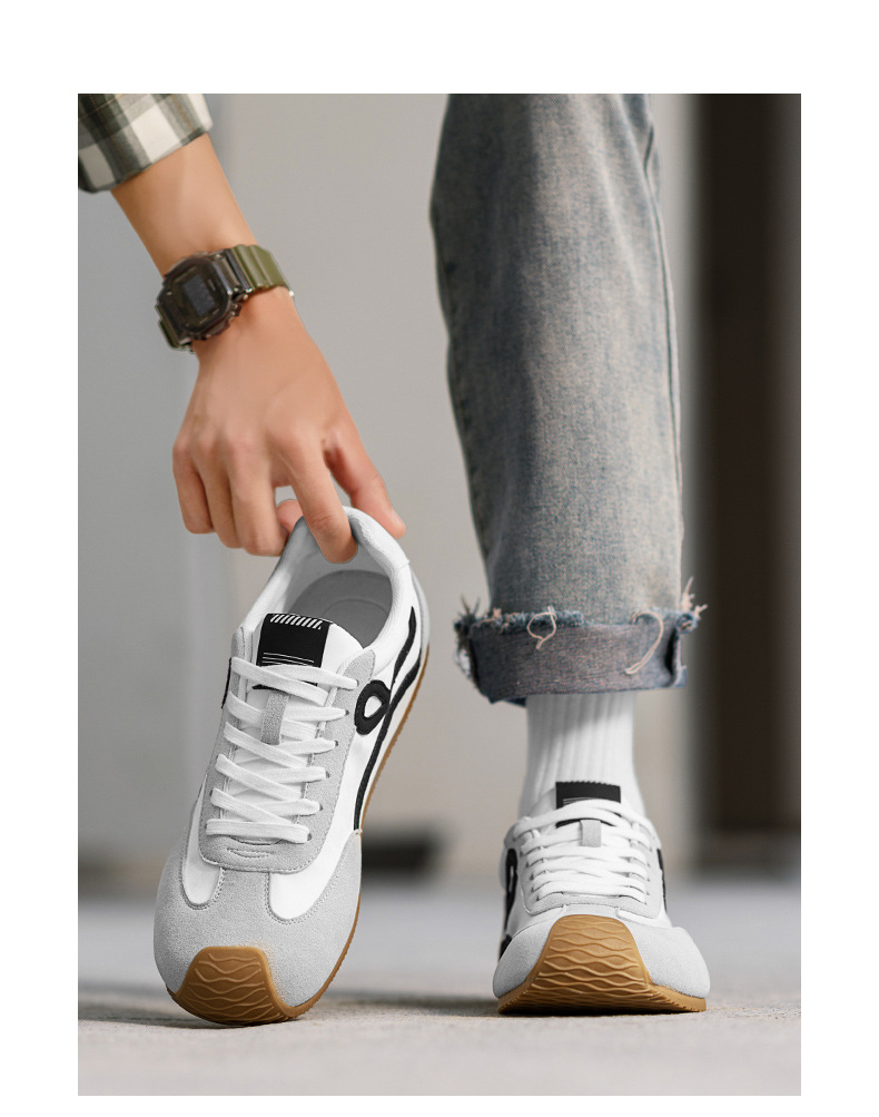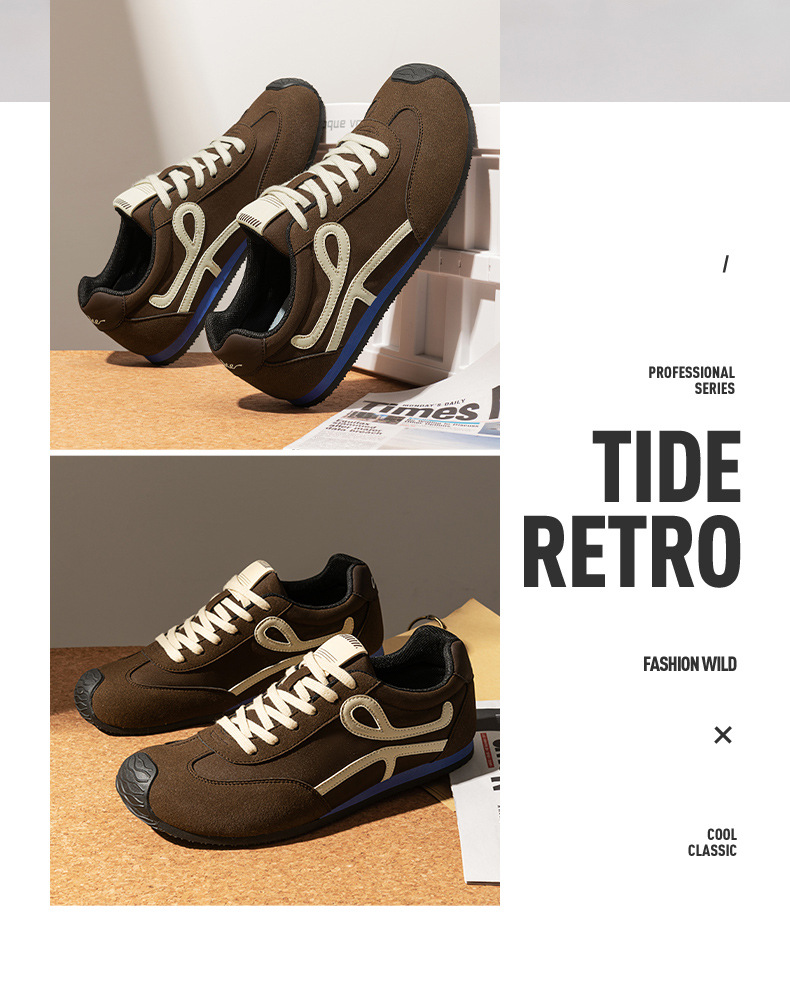 사계절 내내 신을 수 있는 남성 신발, 새로운 트렌디한 라운드 투, 다재다능하고 통기성이 뛰어난 레이스업 두꺼운 밑창, 도덕훈련 캐주얼 컬러 매칭 편안한 남성 신발