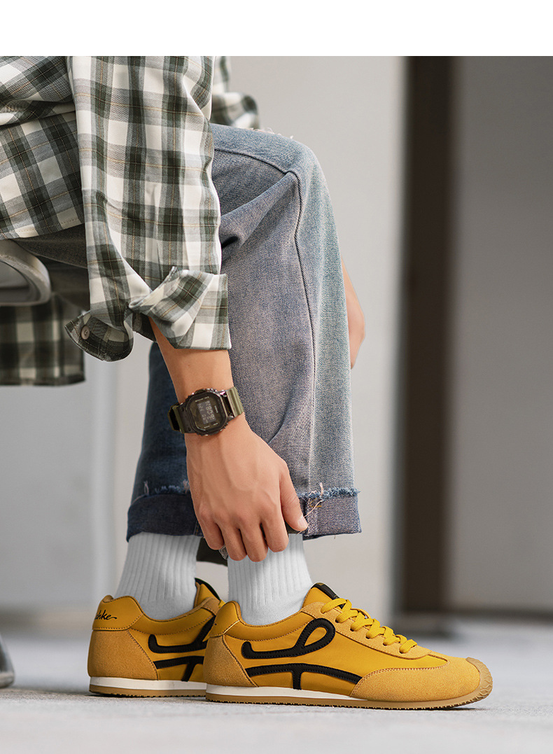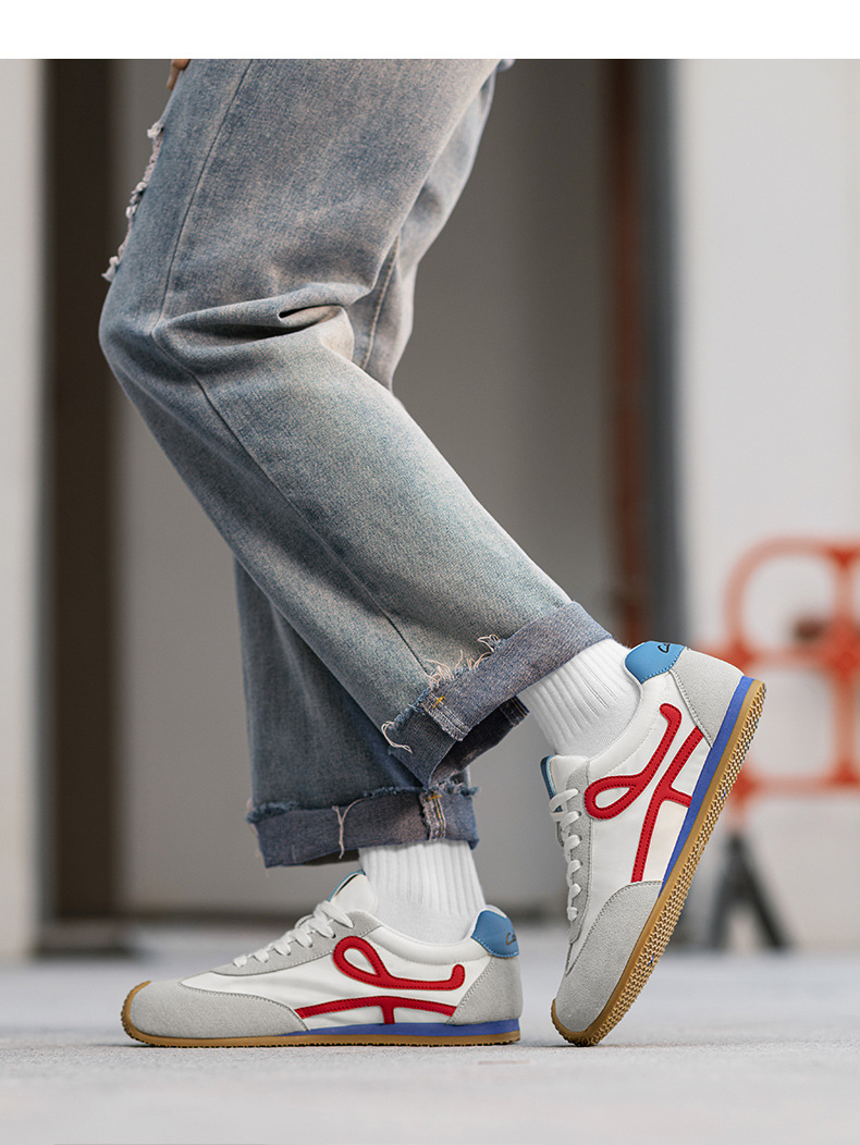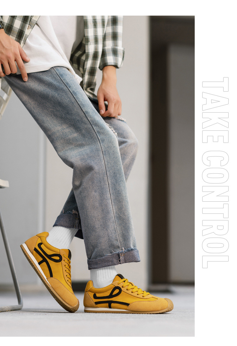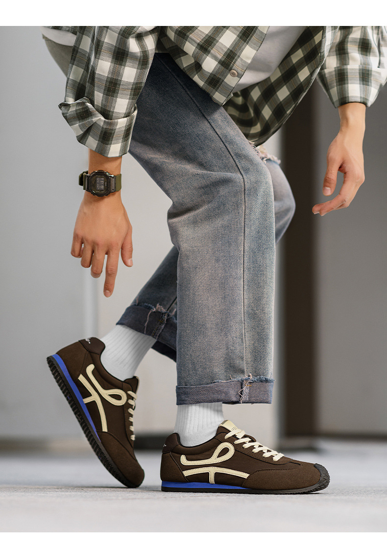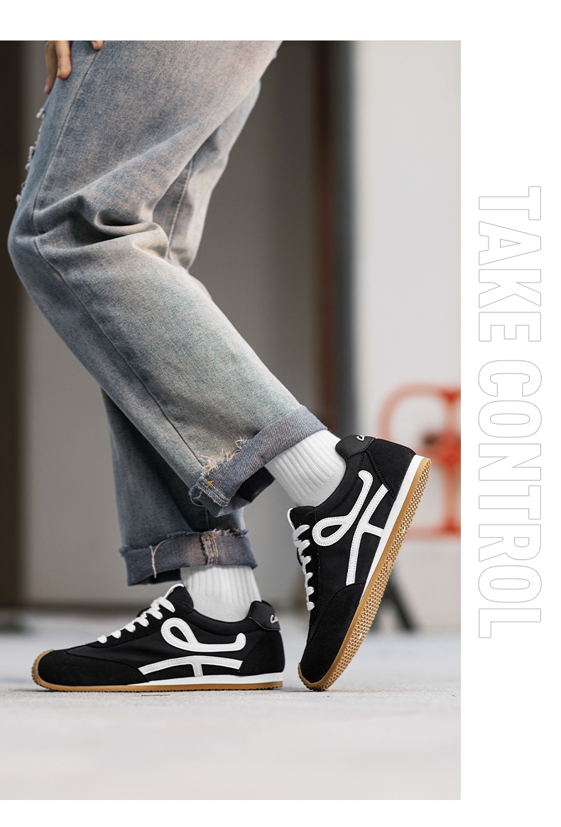 사계절 내내 신을 수 있는 남성 신발, 새로운 트렌디한 라운드 투, 다재다능하고 통기성이 뛰어난 레이스업 두꺼운 밑창, 도덕훈련 캐주얼 컬러 매칭 편안한 남성 신발