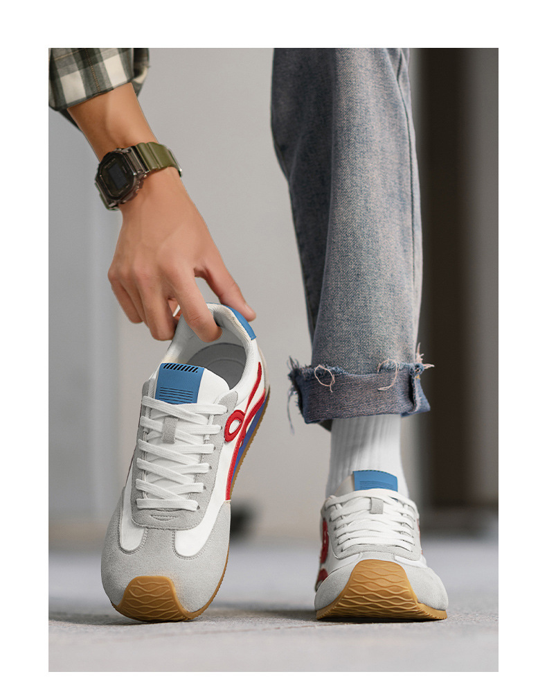 사계절 내내 신을 수 있는 남성 신발, 새로운 트렌디한 라운드 투, 다재다능하고 통기성이 뛰어난 레이스업 두꺼운 밑창, 도덕훈련 캐주얼 컬러 매칭 편안한 남성 신발스토어 가기