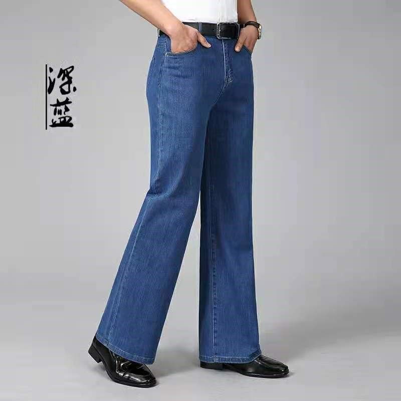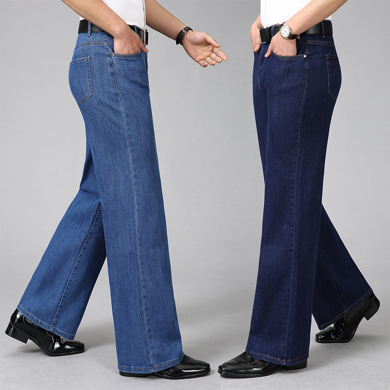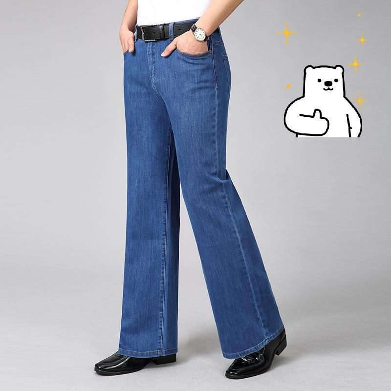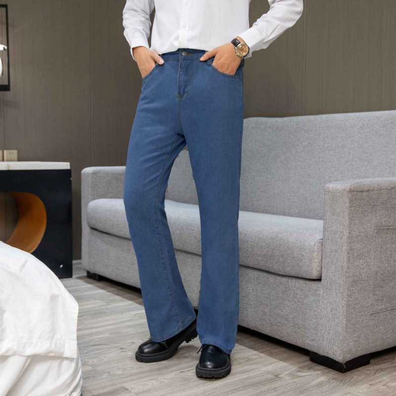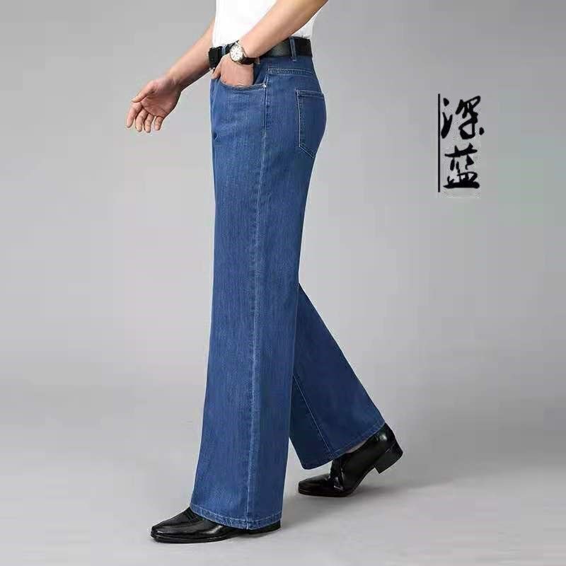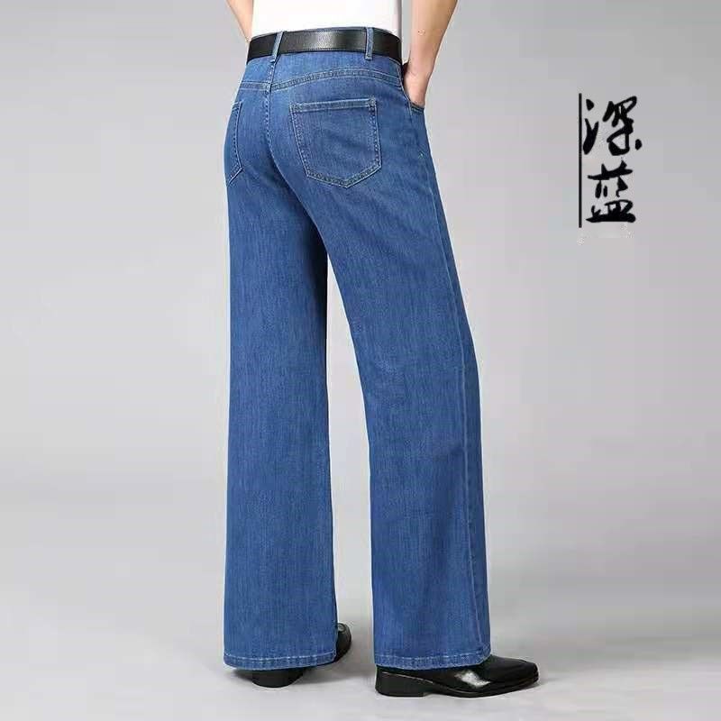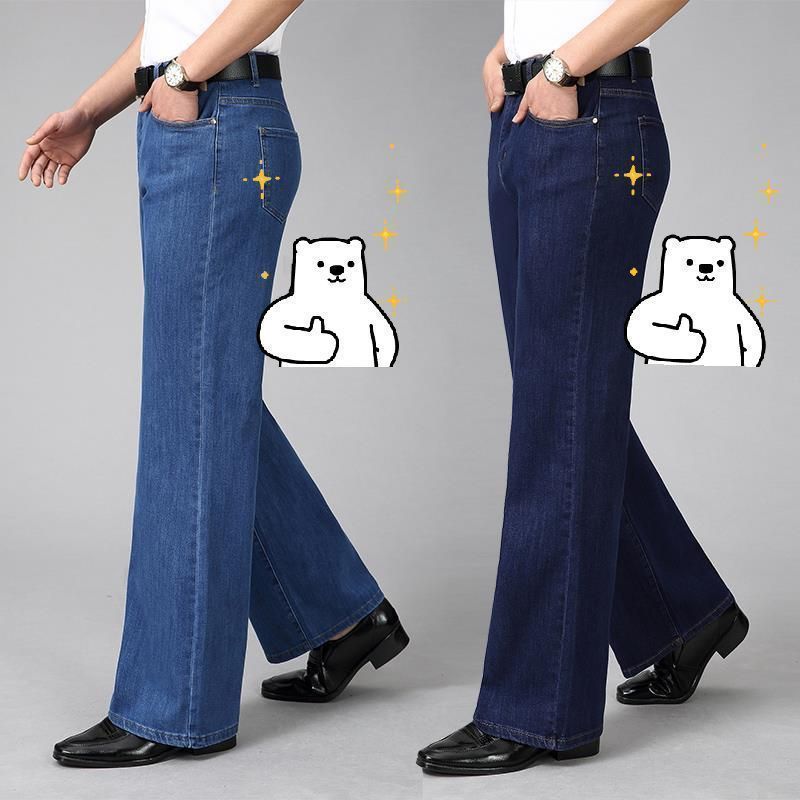 여름 남성용 루즈한 와이드 팬츠, 빅 레그 부츠컷 청바지, 미드 웨이스트, 빅 스트레이트 레그 루즈 플레어 롱 팬츠, 얇은스토어 가기