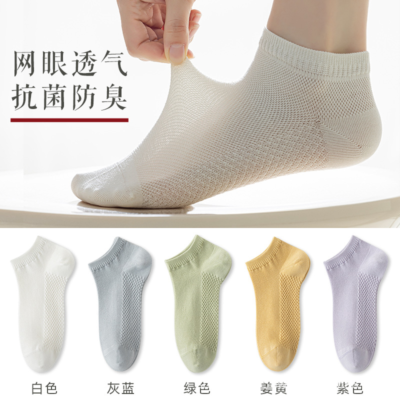 주지 양말 여성 여름 얇은 짧은 양말 순수 코튼 땀 흡수 냄새 방지 필링 한국 여름 솔리드 컬러 메쉬 여성