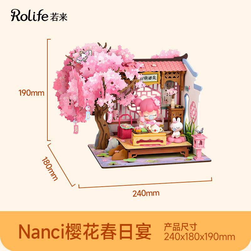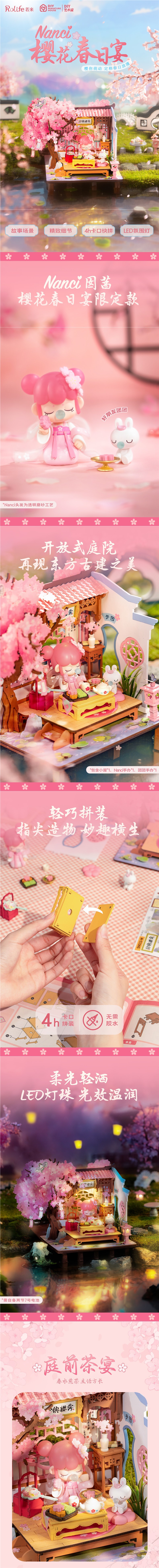 Rolife Ruolai Nanci 봄 연회 DIY 수제 오두막 빌라 미니어처 모델 조립 된 집 빌딩 블록