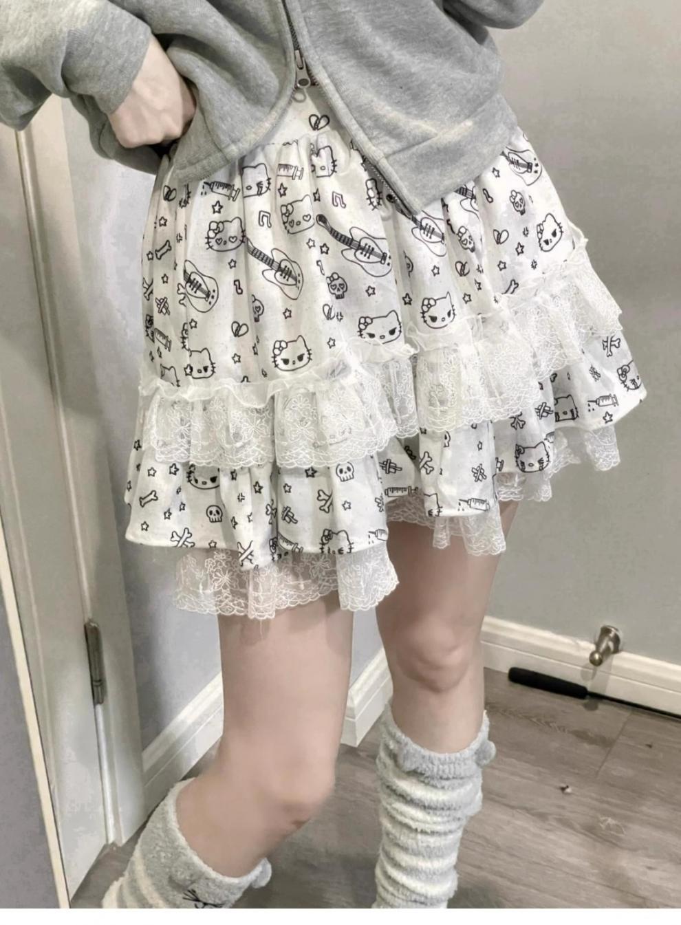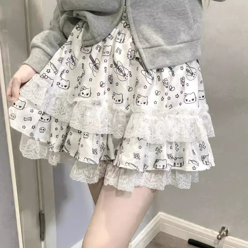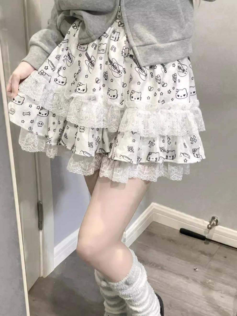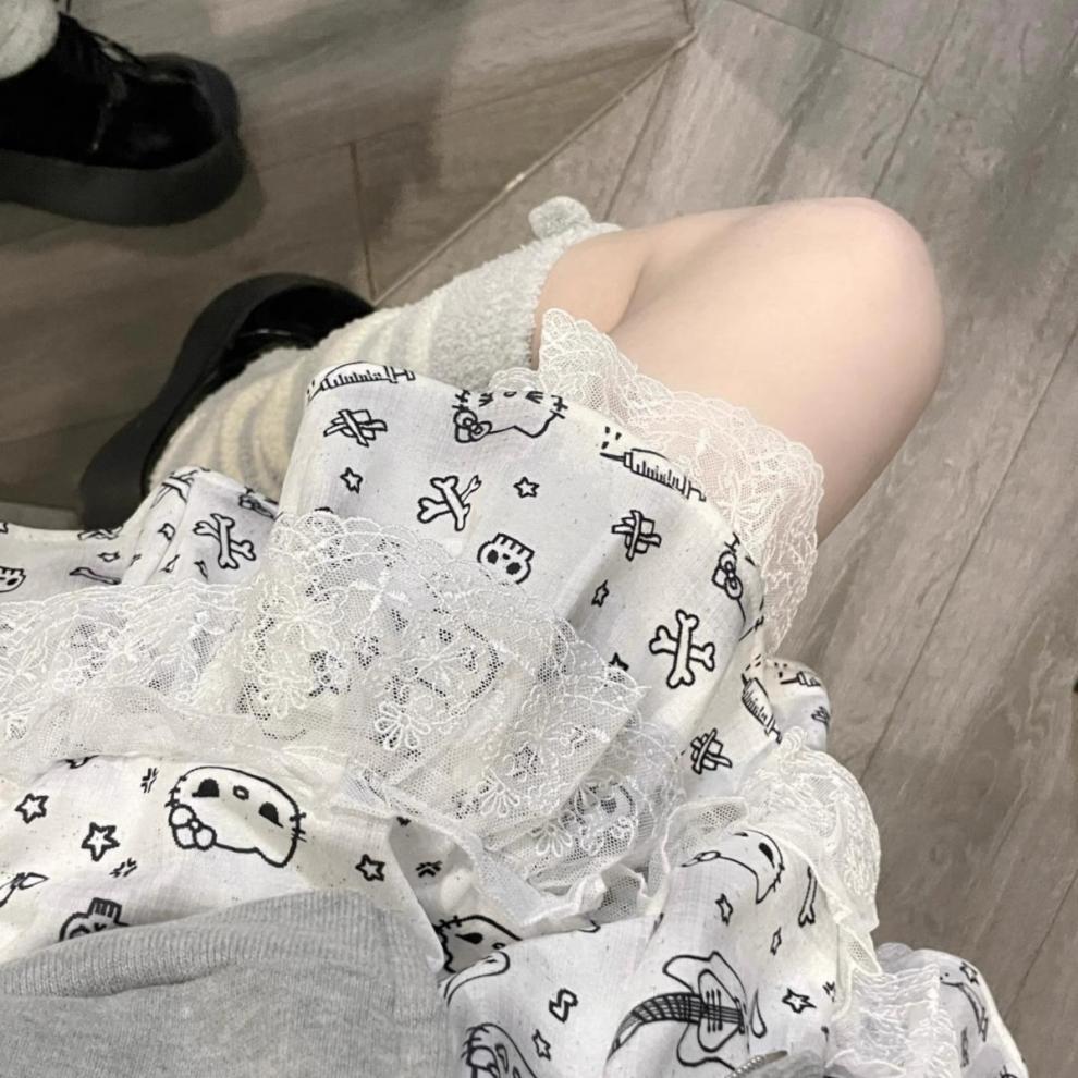 2025 봄 여름 새로운 일본 스타일 달콤한 뜨거운 소녀 스커트 다크 프린트 레이스 레이스 폼 케이크 스커트