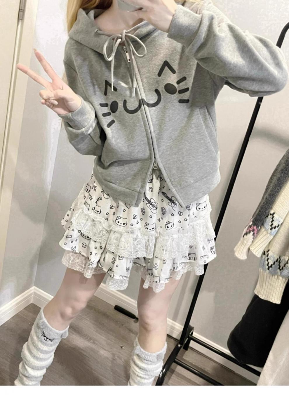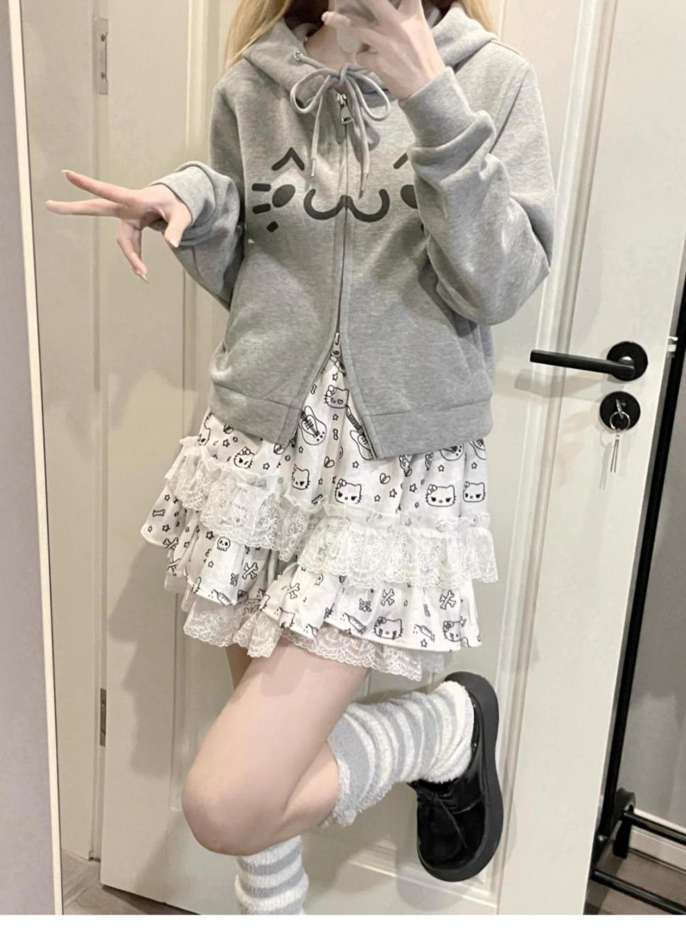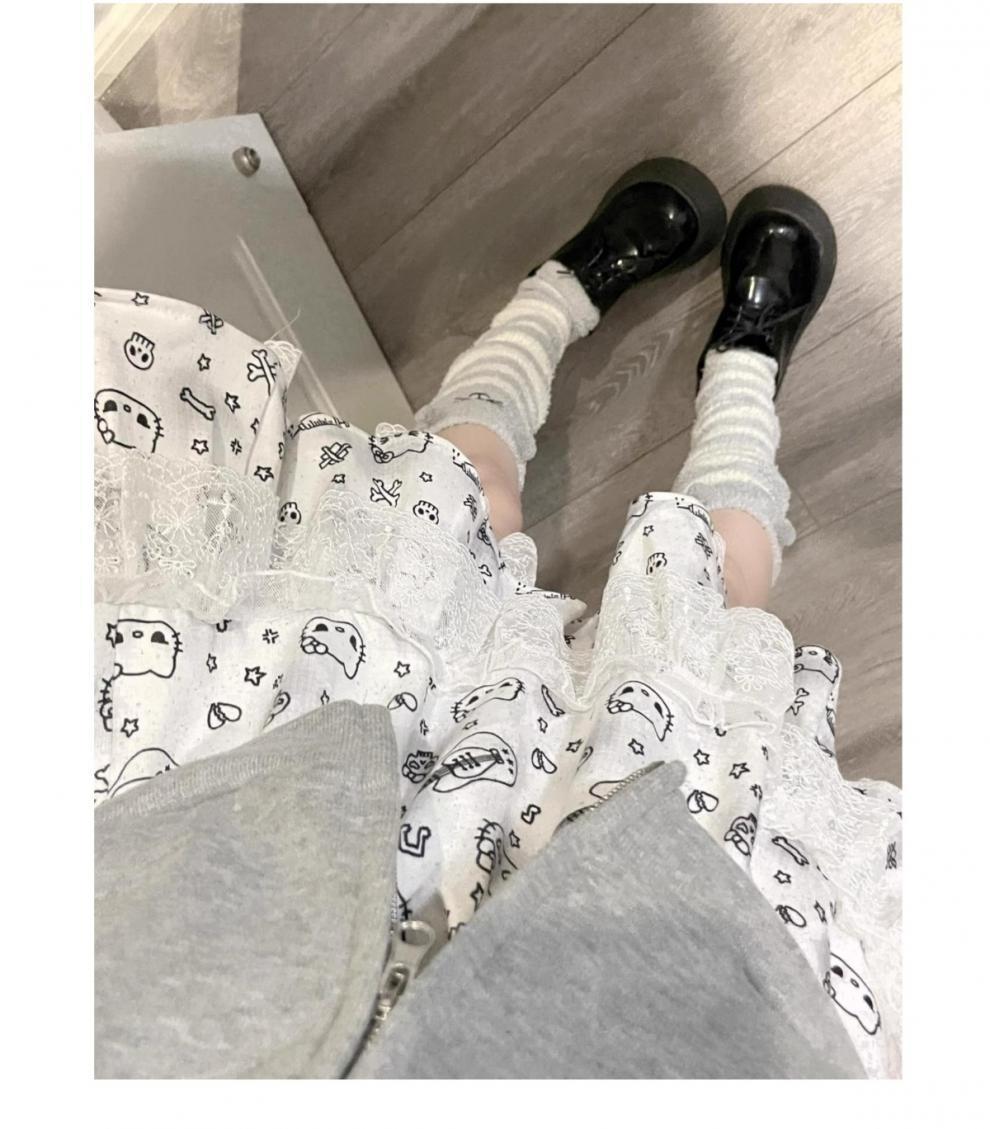 2025 봄 여름 새로운 일본 스타일 달콤한 뜨거운 소녀 스커트 다크 프린트 레이스 레이스 폼 케이크 스커트