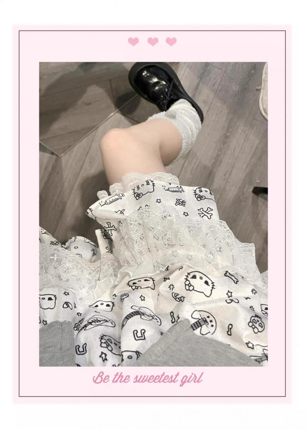 2025 봄 여름 새로운 일본 스타일 달콤한 뜨거운 소녀 스커트 다크 프린트 레이스 레이스 폼 케이크 스커트스토어 가기