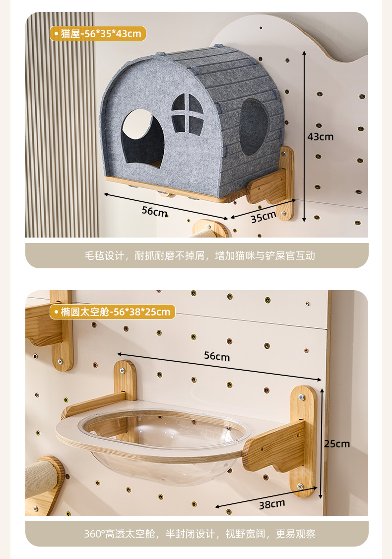 고양이 클라이밍 프레임, 벽걸이형, 가정용 고양이 벽, 대형 고양이 스크래치 컬럼, 홀보드, 고양이 점프 플랫폼, 고양이 둥지, 일체형 우주 캡슐