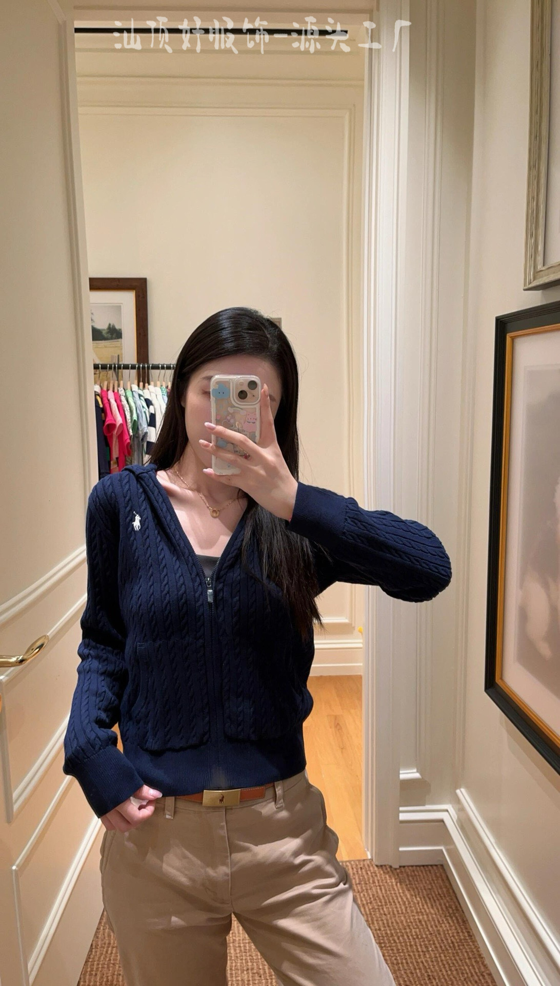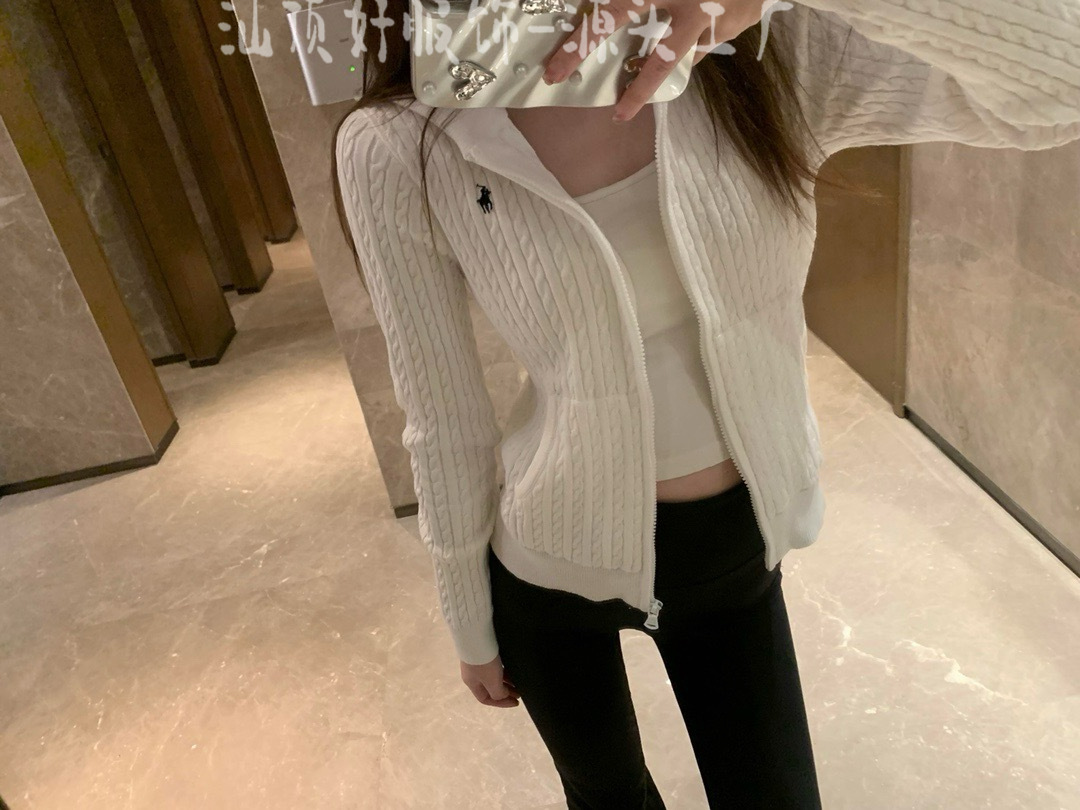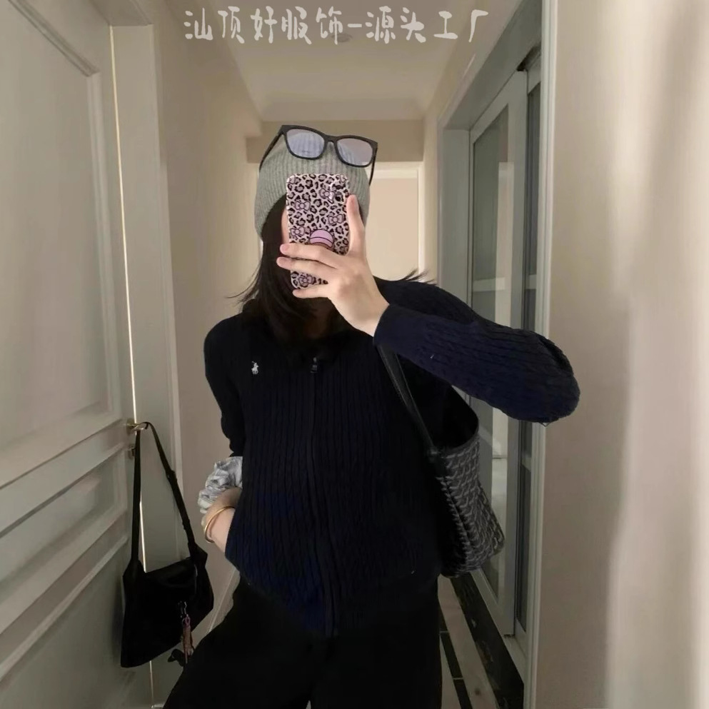 3 표준 완전한 rl 수 놓은 트위스트 후드 니트 지퍼 카디건 여성의 2025 년 봄과 가을 새로운 탑 스웨터 코트스토어 가기