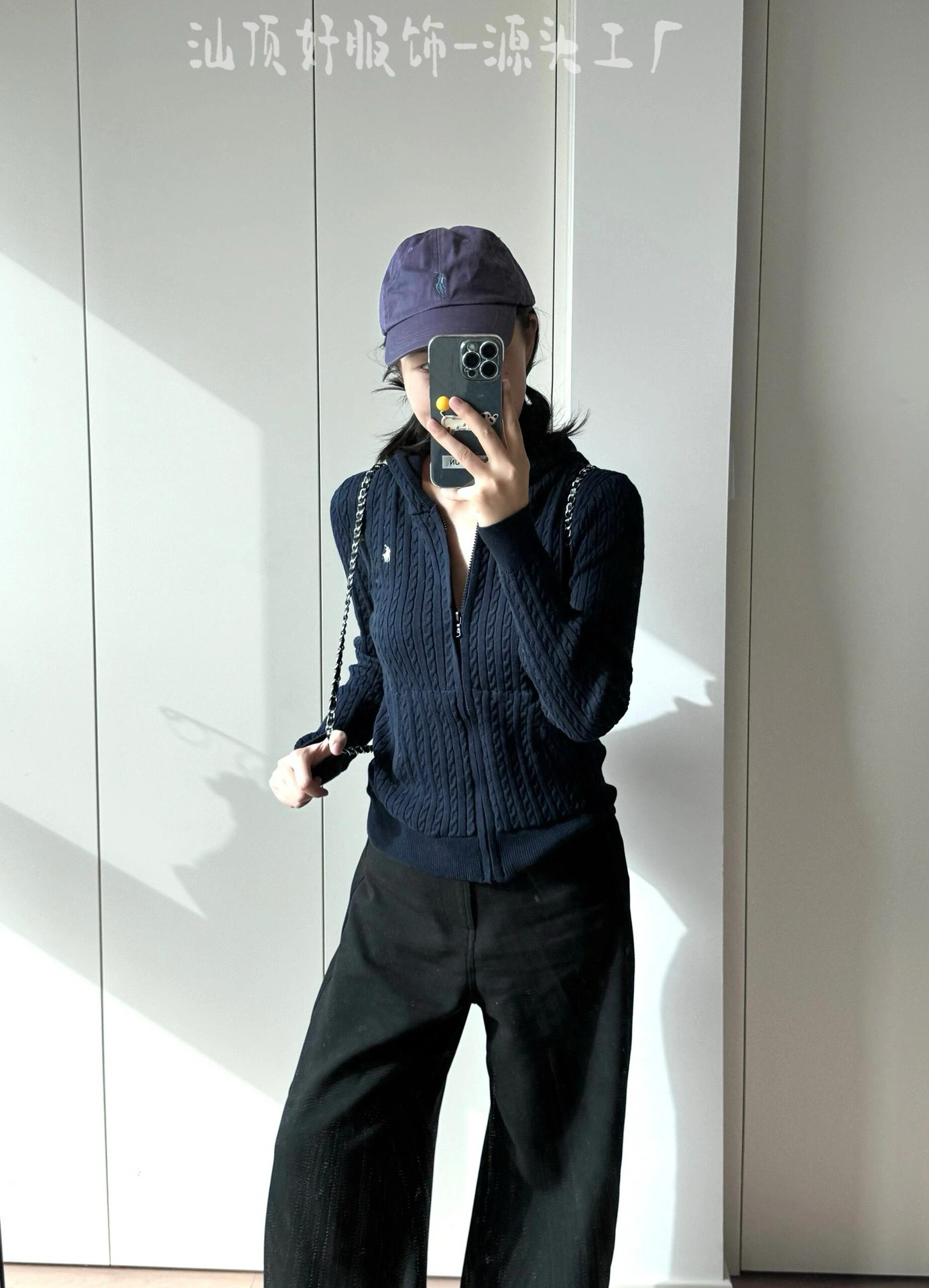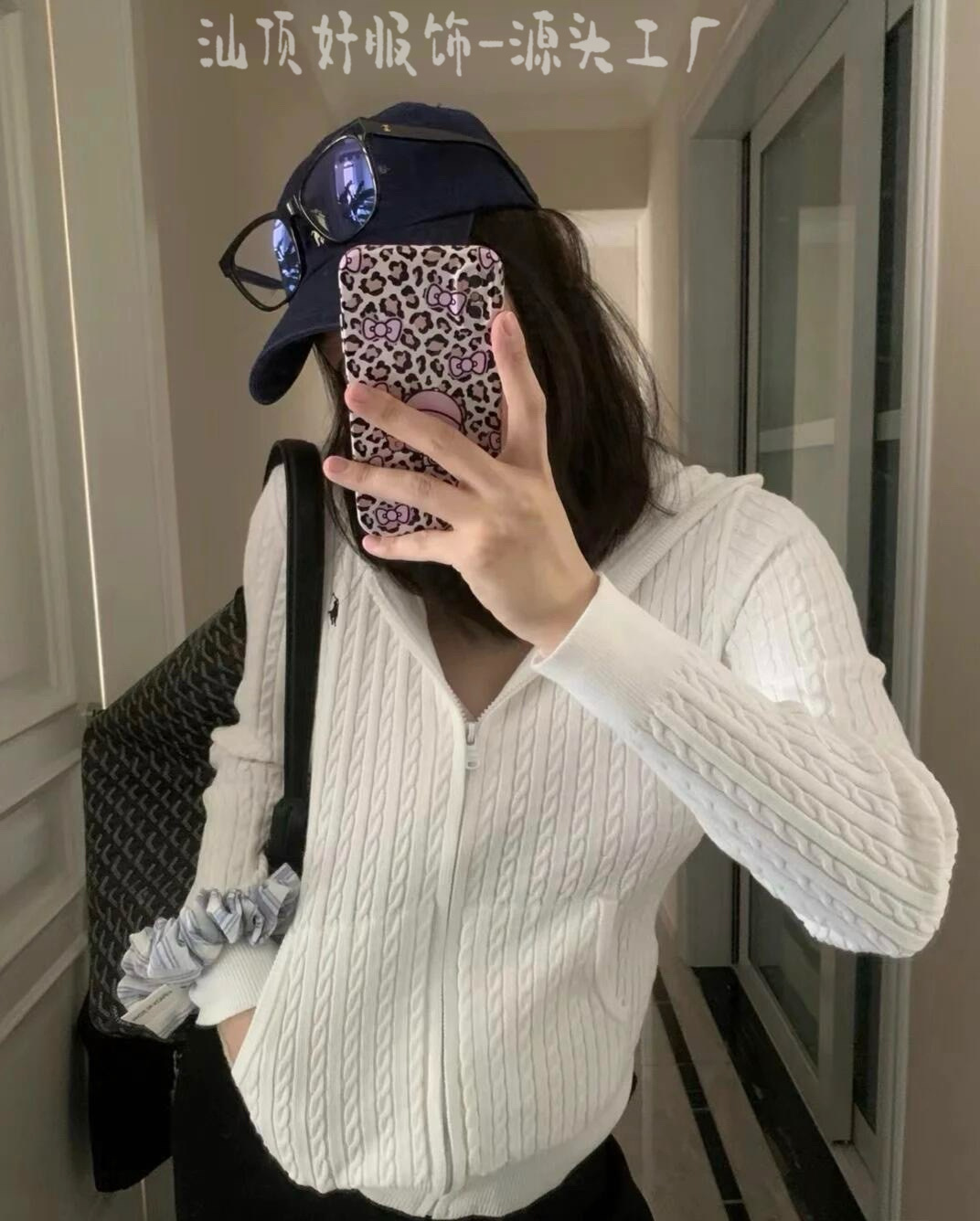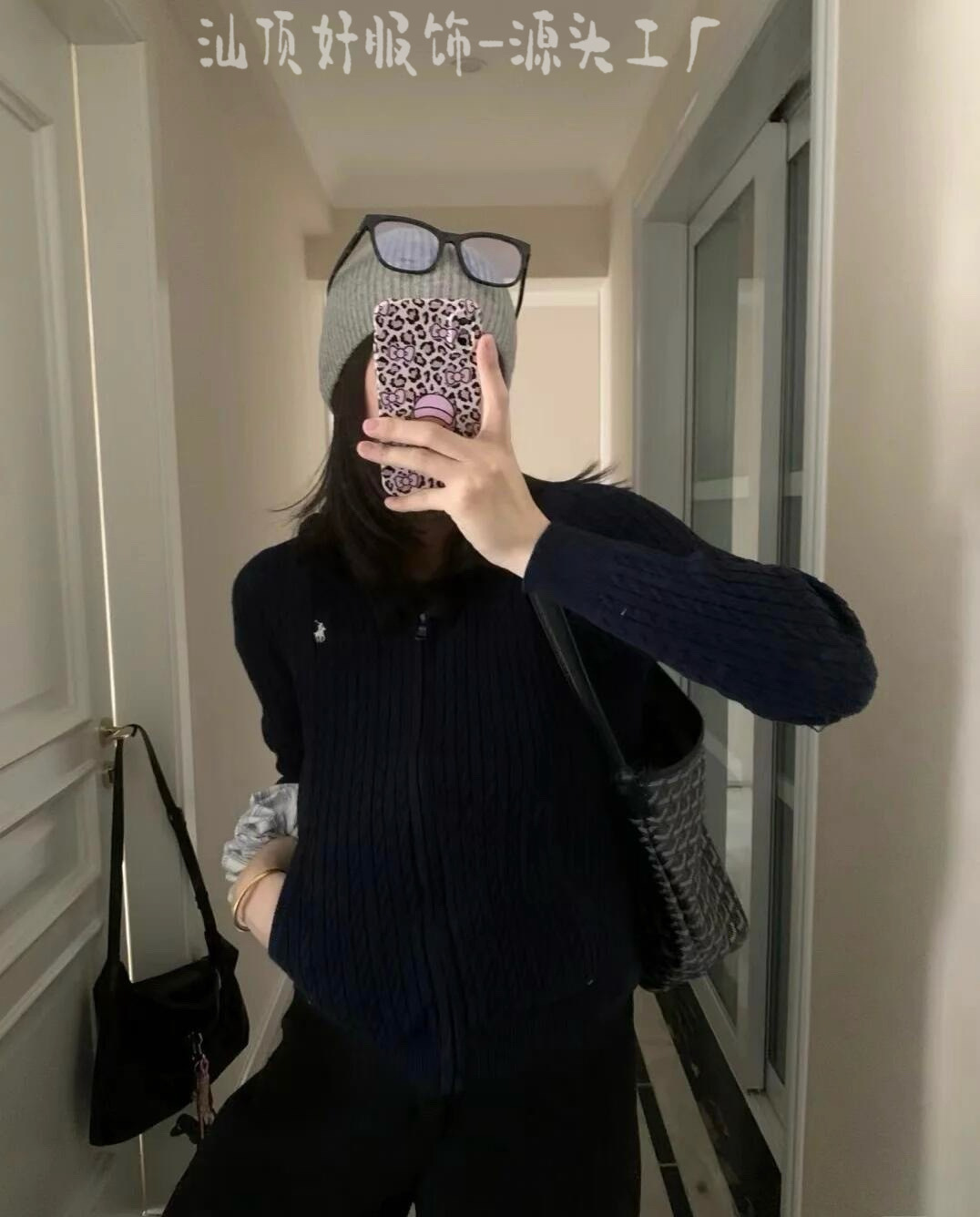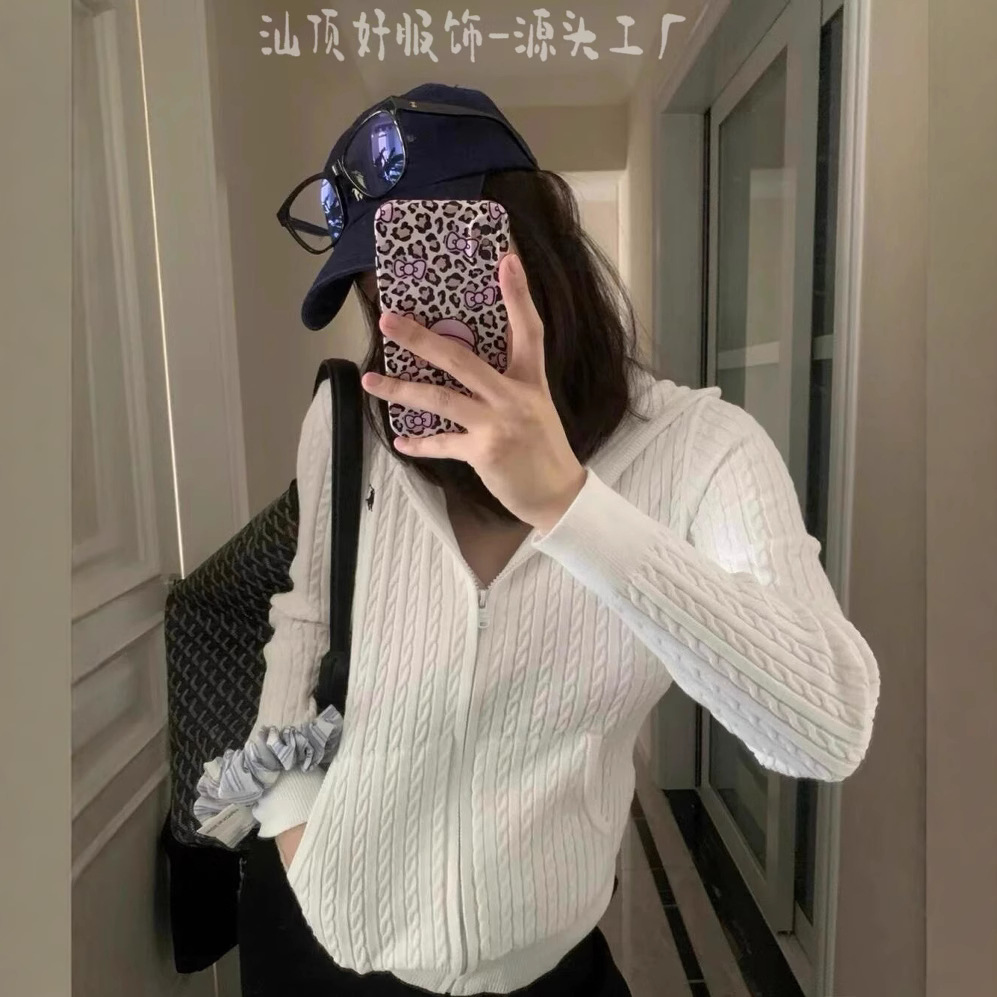 3 표준 완전한 rl 수 놓은 트위스트 후드 니트 지퍼 카디건 여성의 2025 년 봄과 가을 새로운 탑 스웨터 코트