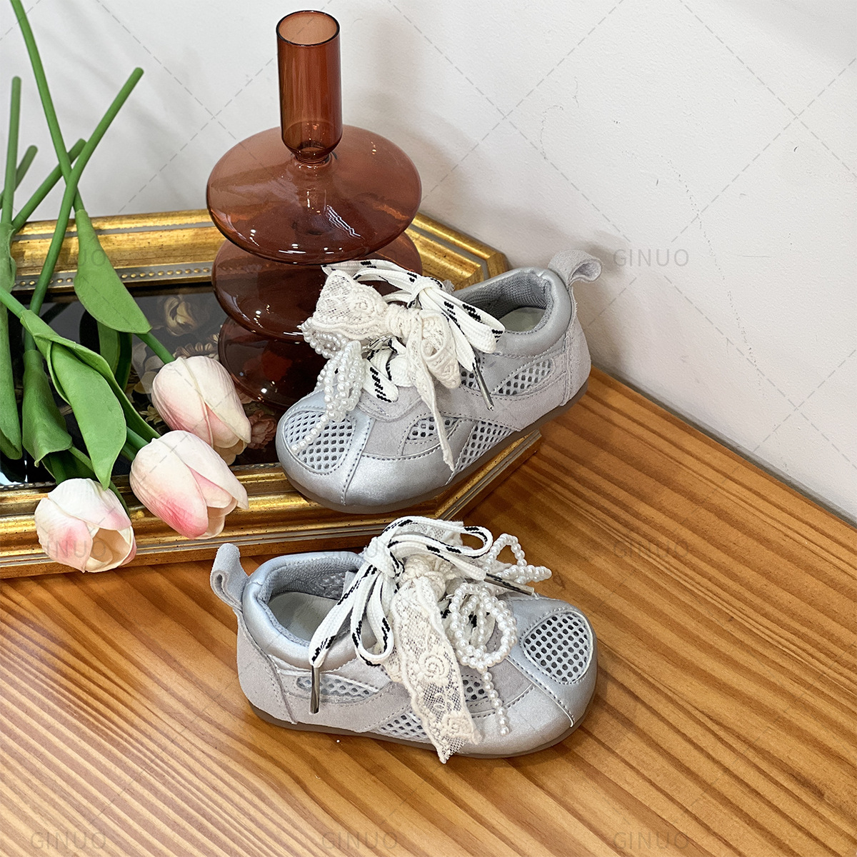 {16-30 야드} 어린이 보드 신발 소녀 유아 신발 여자 레이스 통기성 메쉬 신발 공주 신발 아기 신발