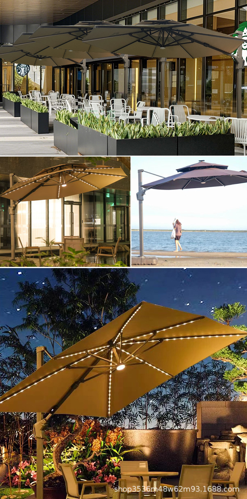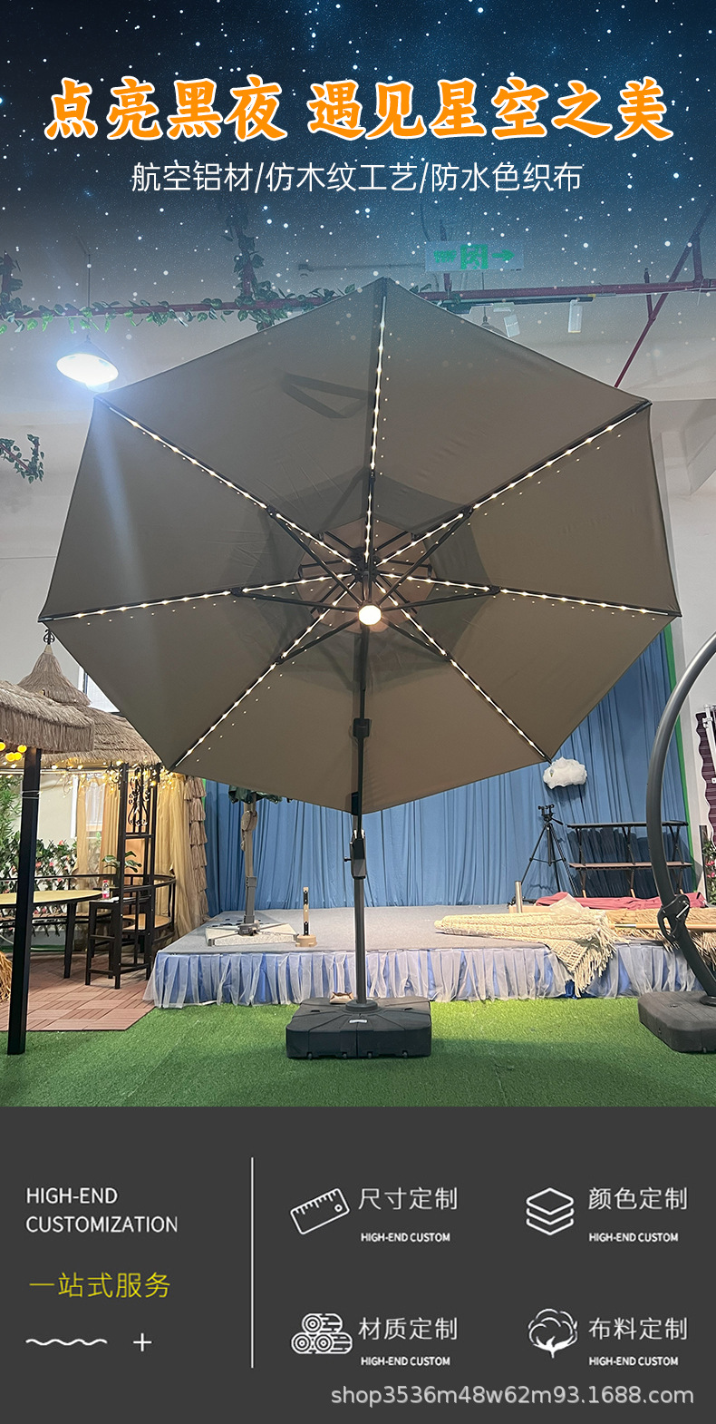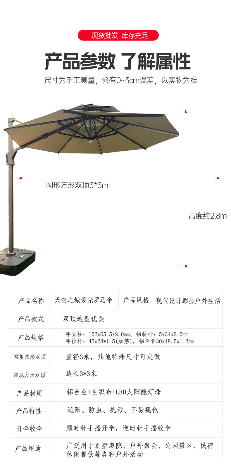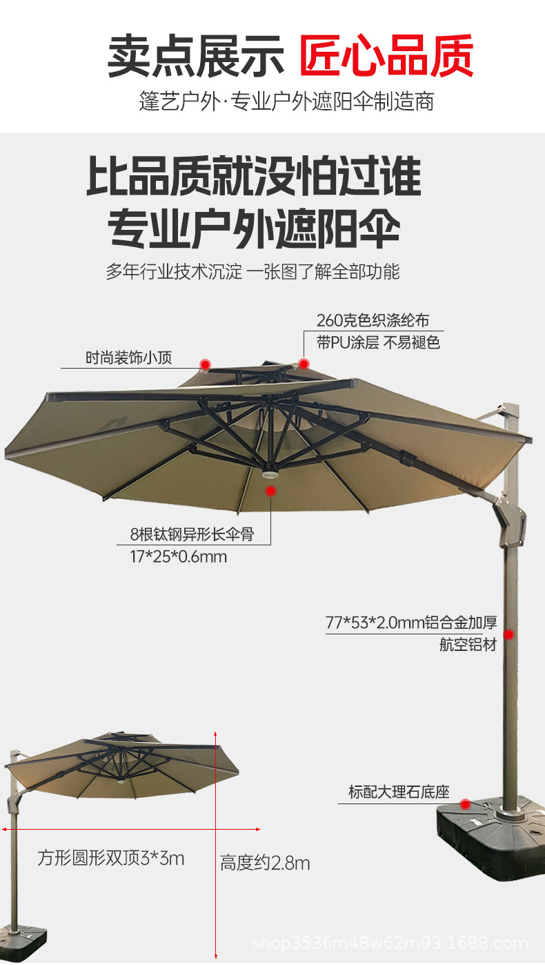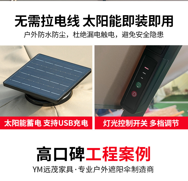 야외 파라솔, 태양광 구슬, 로마 우산, 안뜰 정원 측면 우산, 방수 대형 접이식 스카이 시티