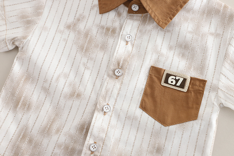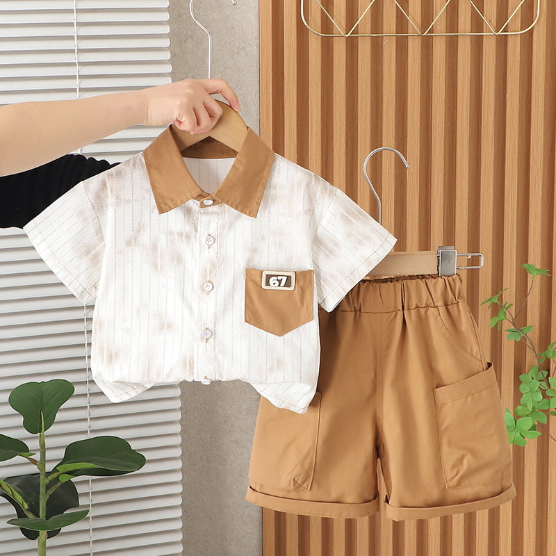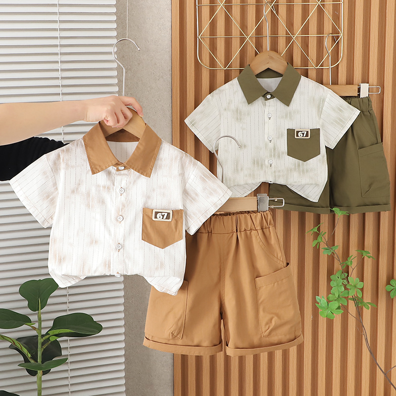 소년 여름 반팔 셔츠 정장 새로운 스타일 어린이 아기 여름 스타일 얇은 셔츠 재킷 투피스 유행 세트