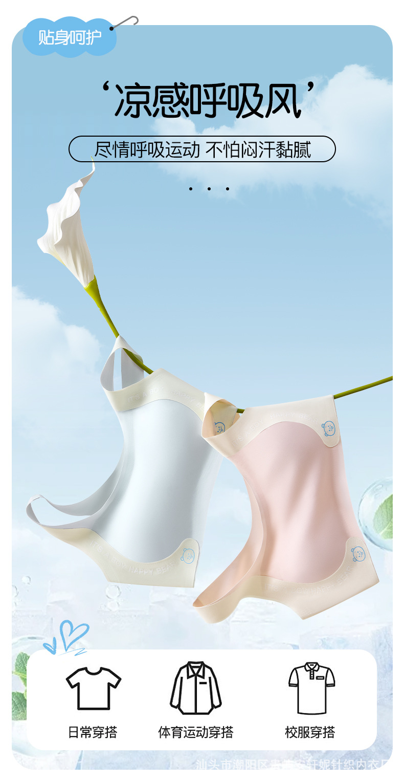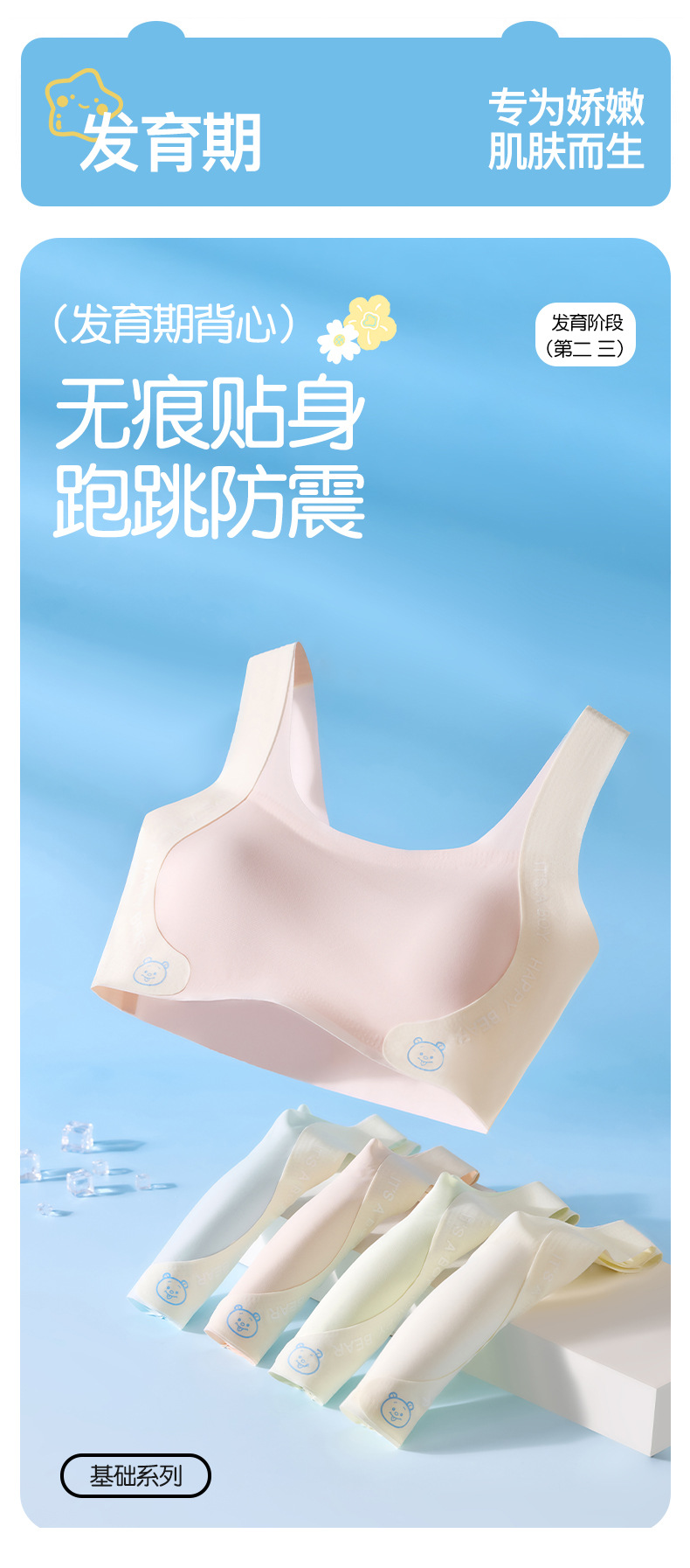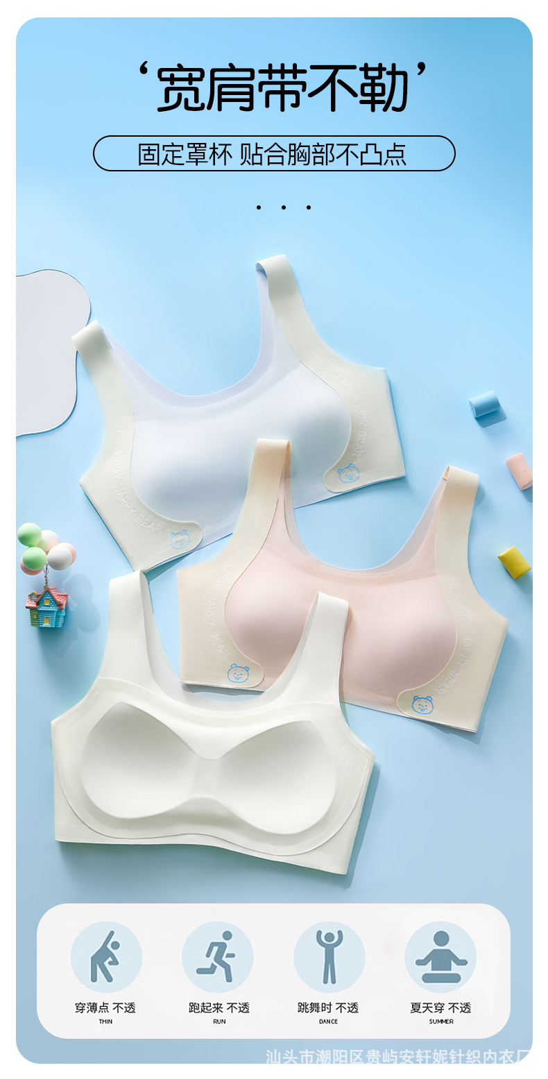 고등학생을위한 발달 기간 중학생을위한 속옷 고정 컵 여자 브라 원활한 아이스 실크 스포츠 충격 방지 조끼
