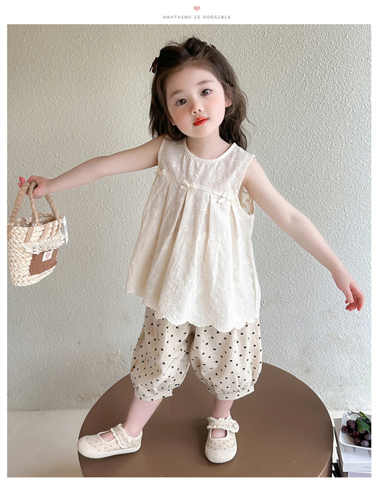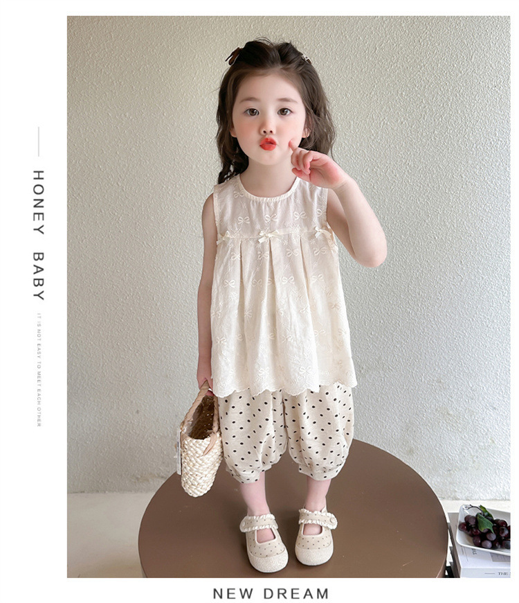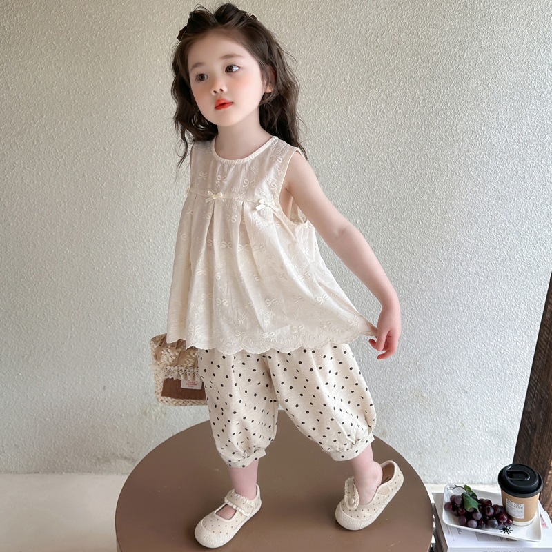 소녀 활 점 바지 세트 2025 여름 새로운 패션 소녀 세련된 투피스 어린이 여름 원피스