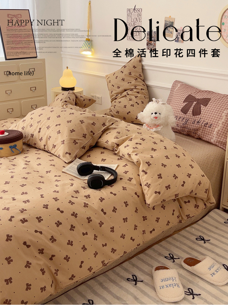 귀여운 만화 순면 침대 4피스 세트 순면 어린이 기숙사 싱글 이불 커버 침구 2025 침대 시트 3피스 세트스토어 가기