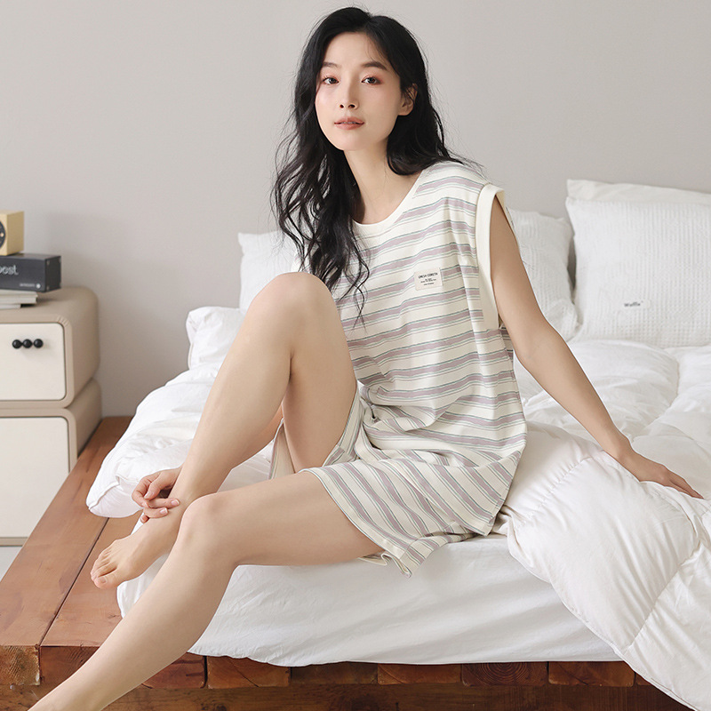 커플 조끼 잠옷 여성용 풀업 코튼 새 줄무늬 캐주얼 심플 양복 조끼 플러스 사이즈 홈웨어 남성용 얇은 양복스토어 가기