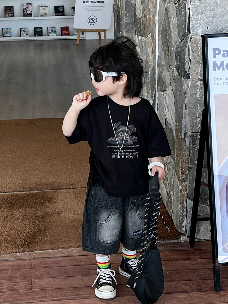 두꺼운 의상 소년 여름 티셔츠 잘 생긴 반팔 탑 어린이 느슨한 만화 코튼 새로운 티셔츠 트렌디스토어 가기