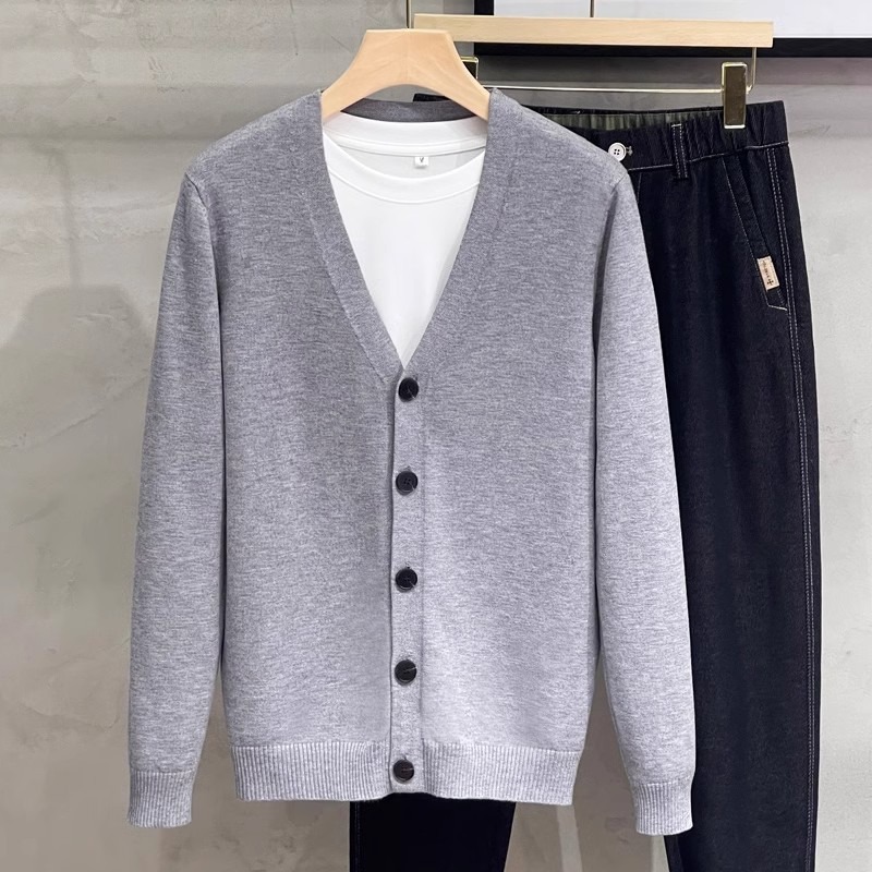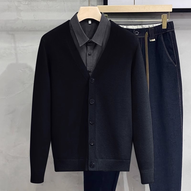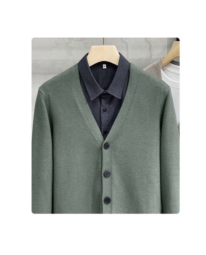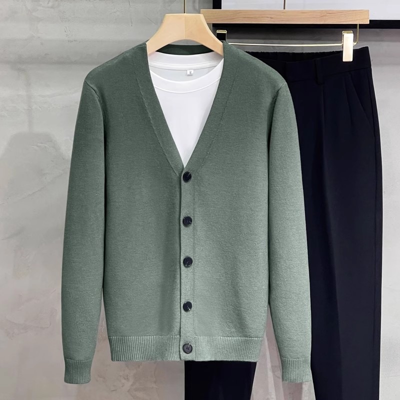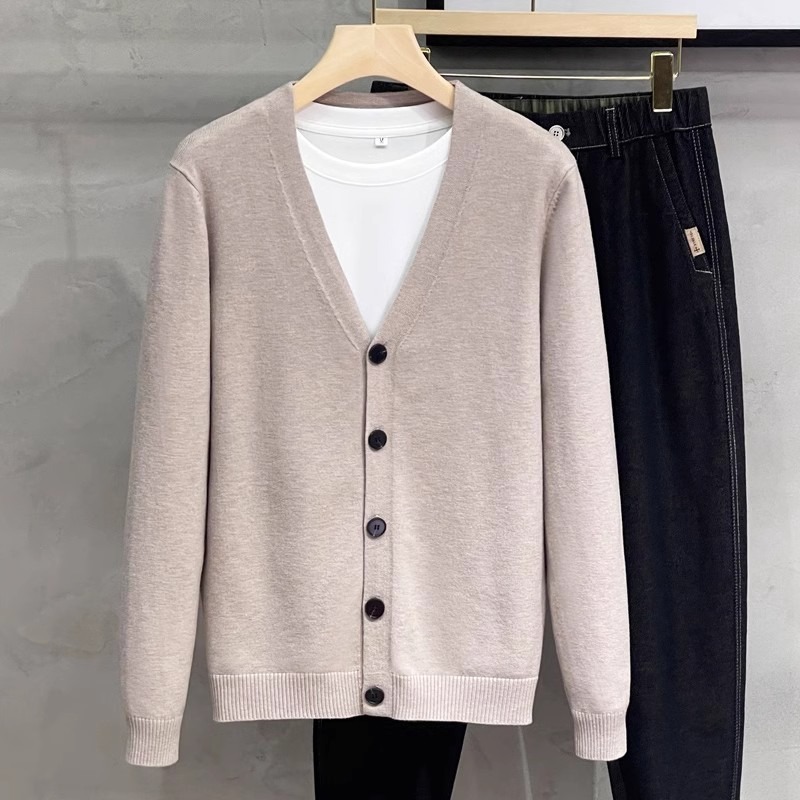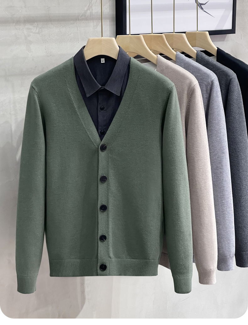남성용 니트 스웨터 카디건 2025 새로운 v 넥 비즈니스 캐주얼 다목적 봄, 가을 남성용 솔리드 컬러 스웨터 재킷