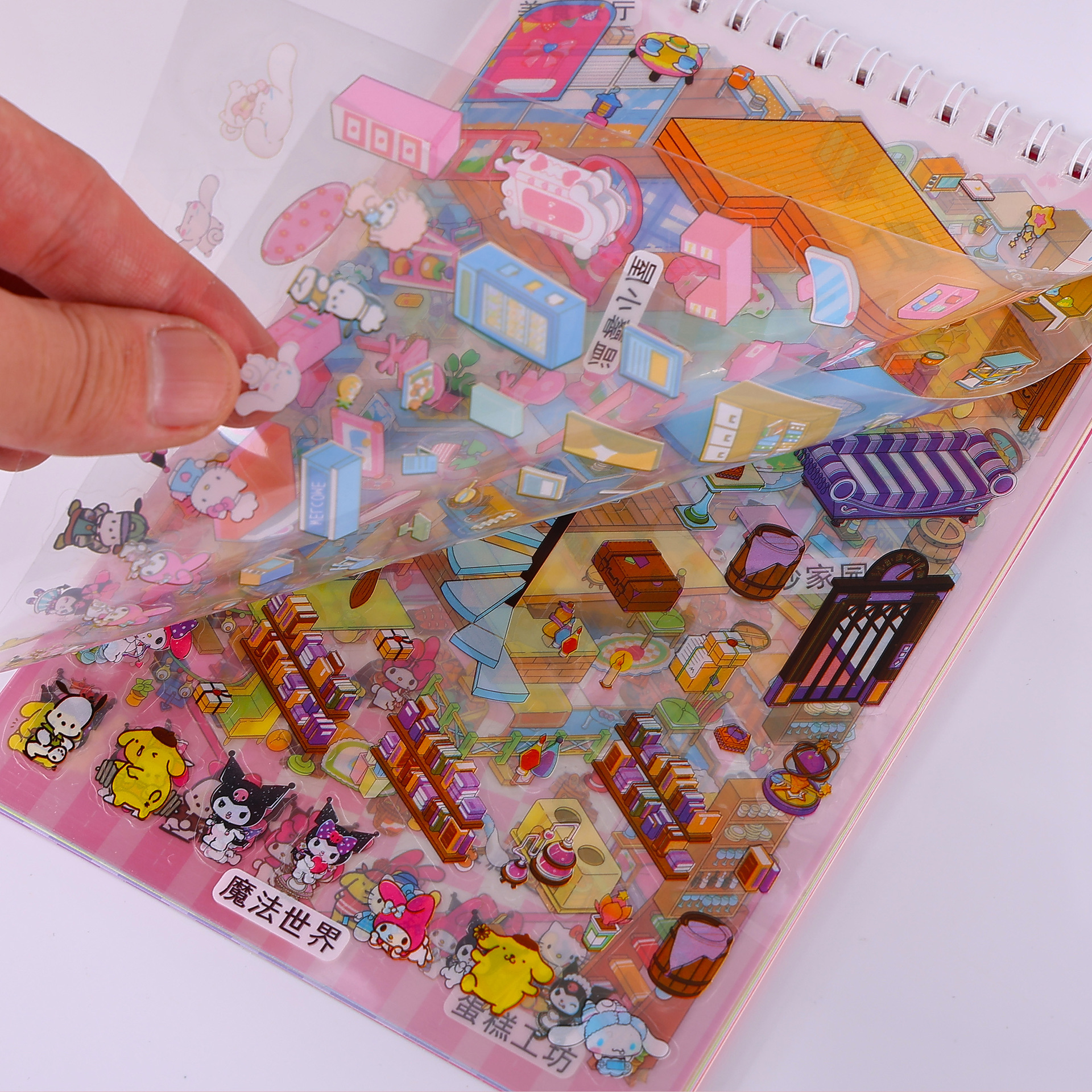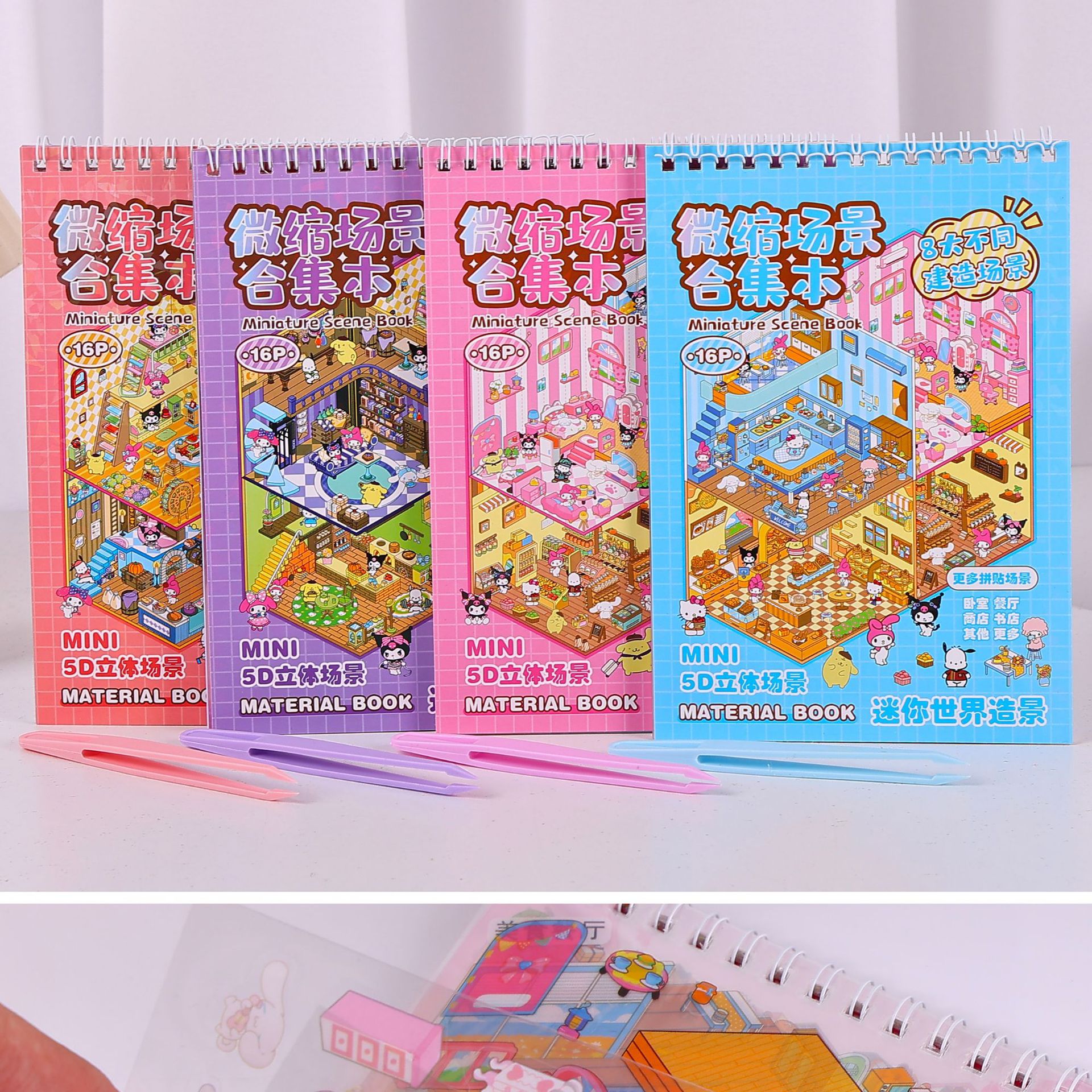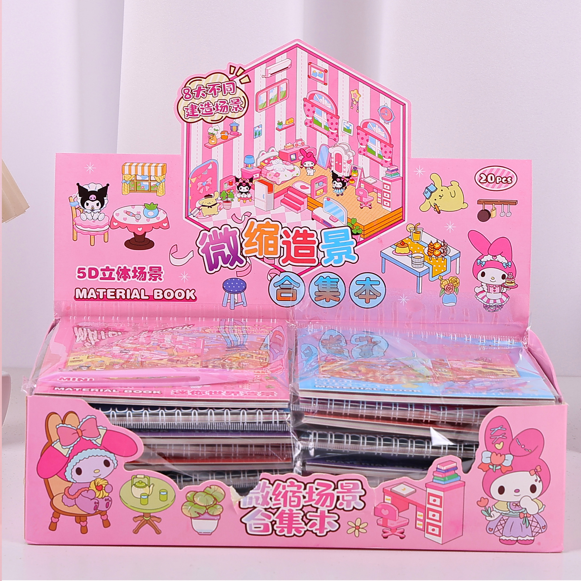 새로운 산리오 미니어처 조경 컬렉션이 만화 귀여운 어린이 5D 입체 장면 스티커 소재이 세트