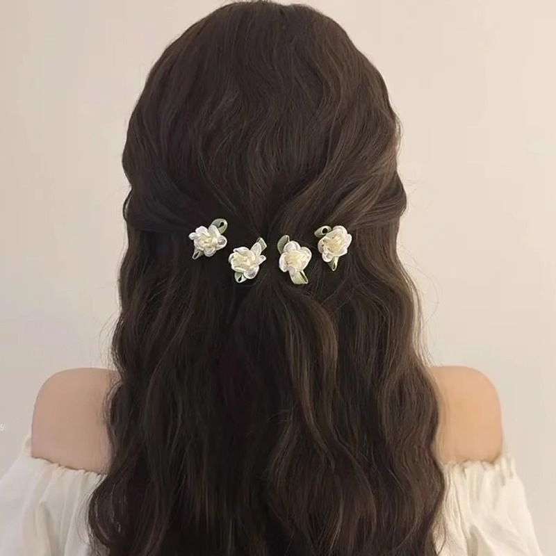 카멜리아 헤어핀 아름다운 사이드 모리 스타일 뱅 클립 꽃 헤어핀 여성의 2025 새로운 스타일 클립 덕빌 클립 헤드웨어스토어 가기