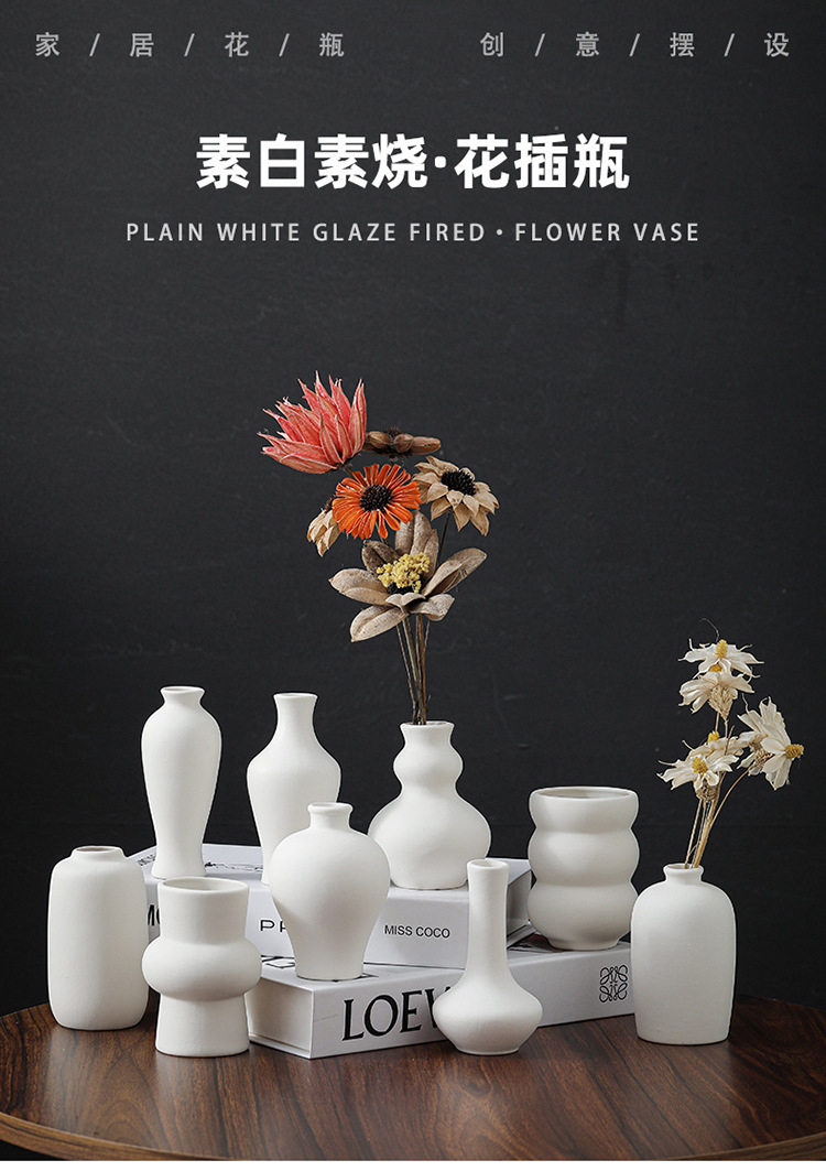 흰색 안료 화상 세라믹 꽃병 DIY 페인트 낙서 작은 꽃병 말린 꽃 장식 세라믹 공예 국경 도매