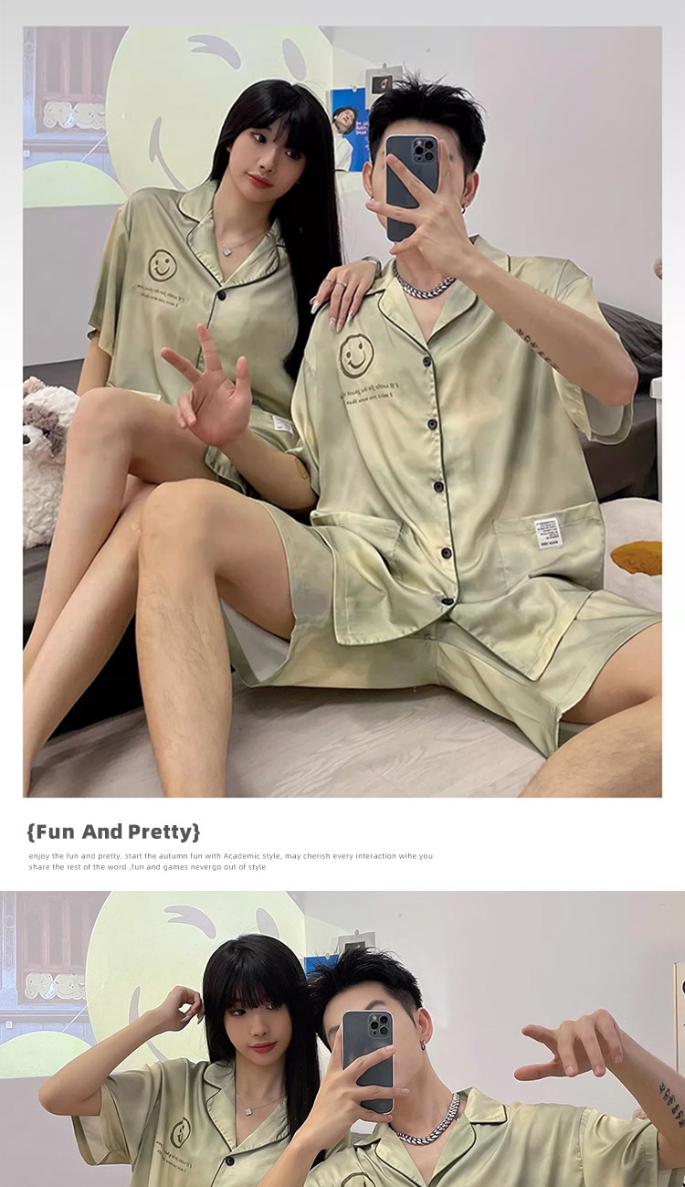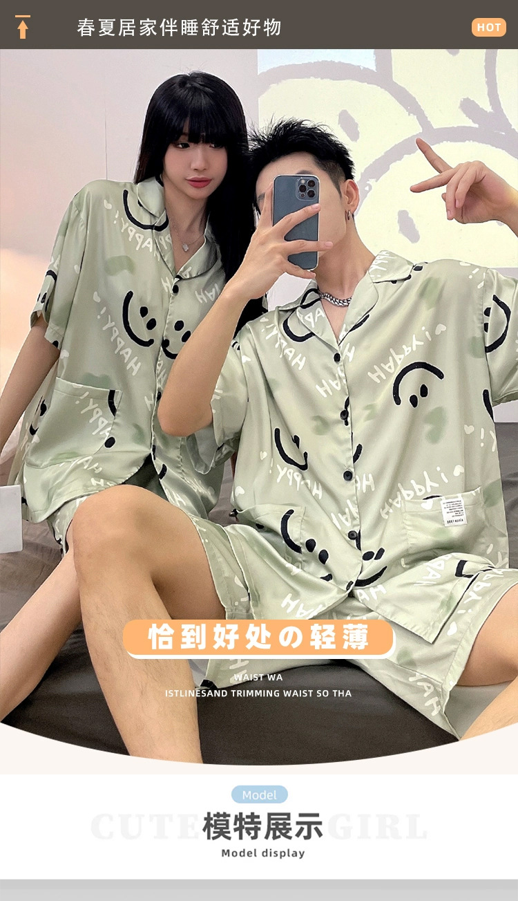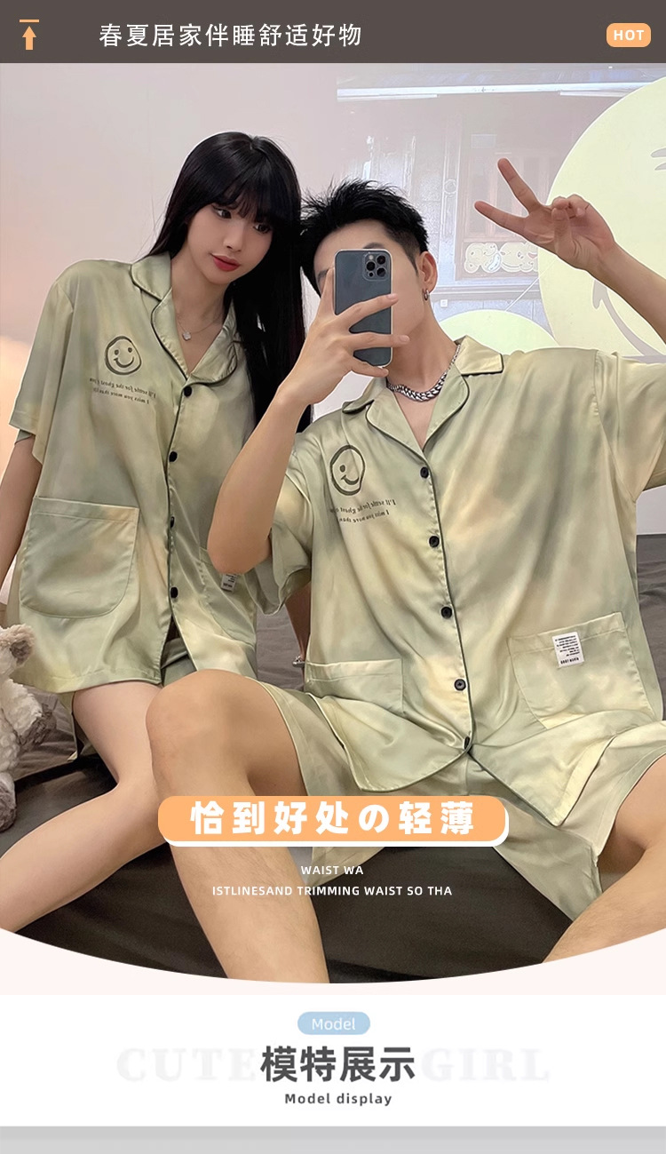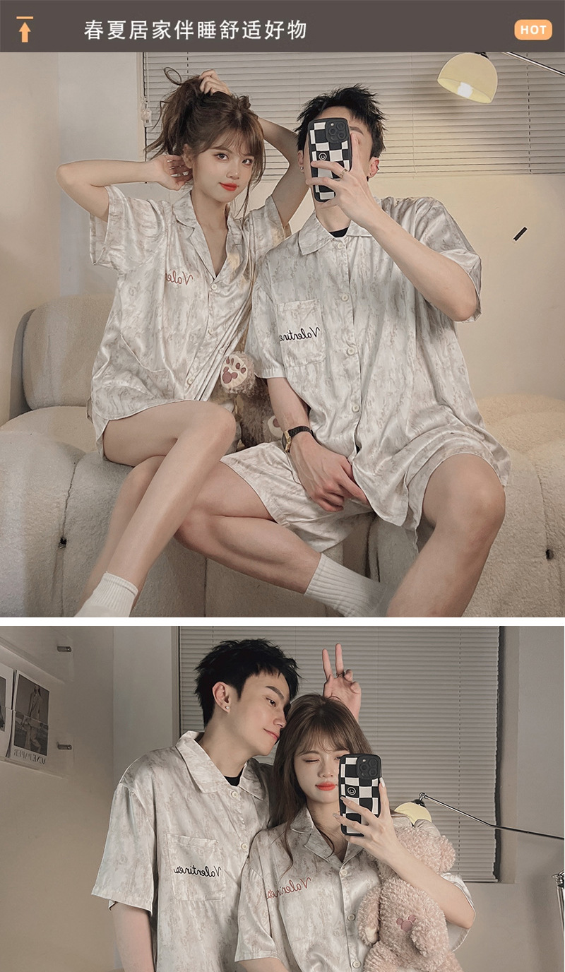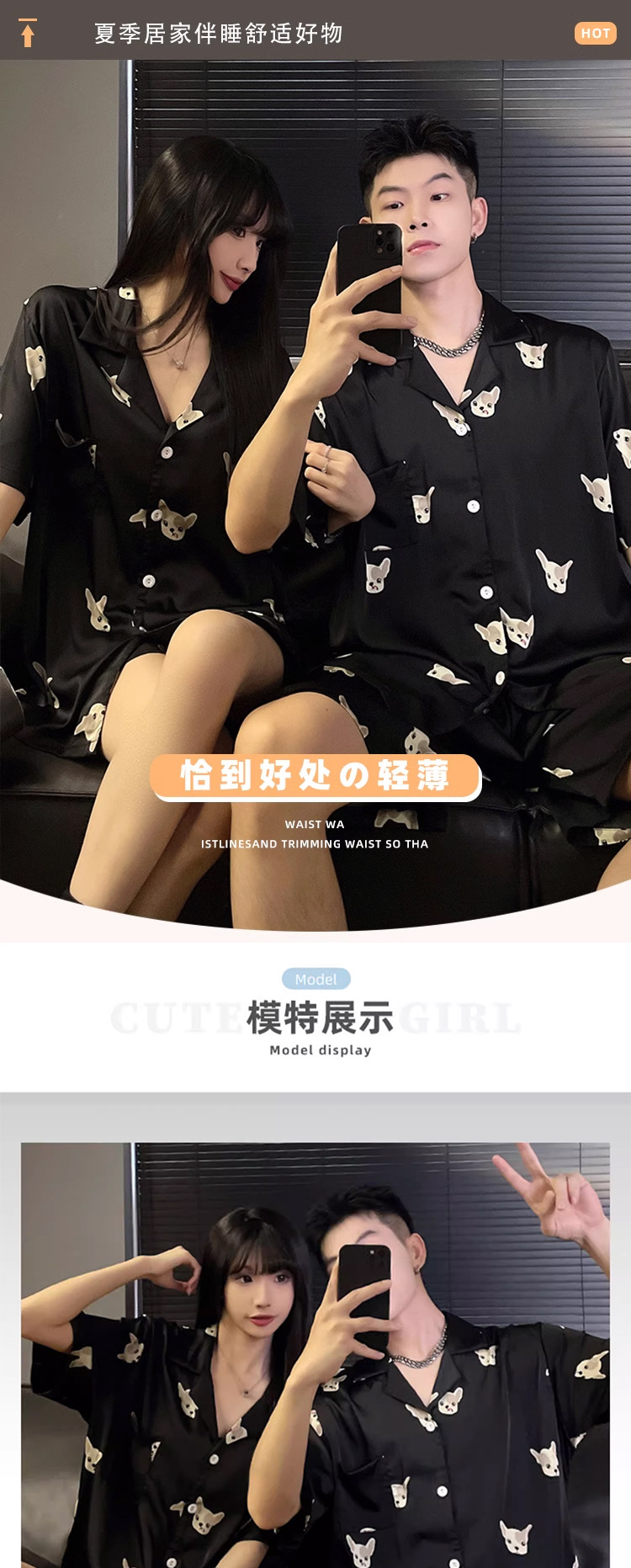 커플 잠옷 여자 아이스 실크 여름 반팔 하이 엔드 플러스 사이즈 남자 멋진 외주 여름 홈 의류 세트스토어 가기