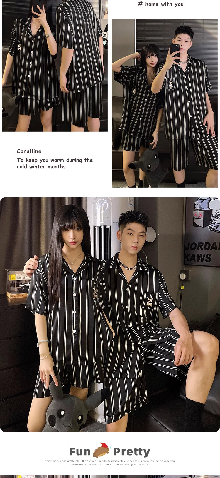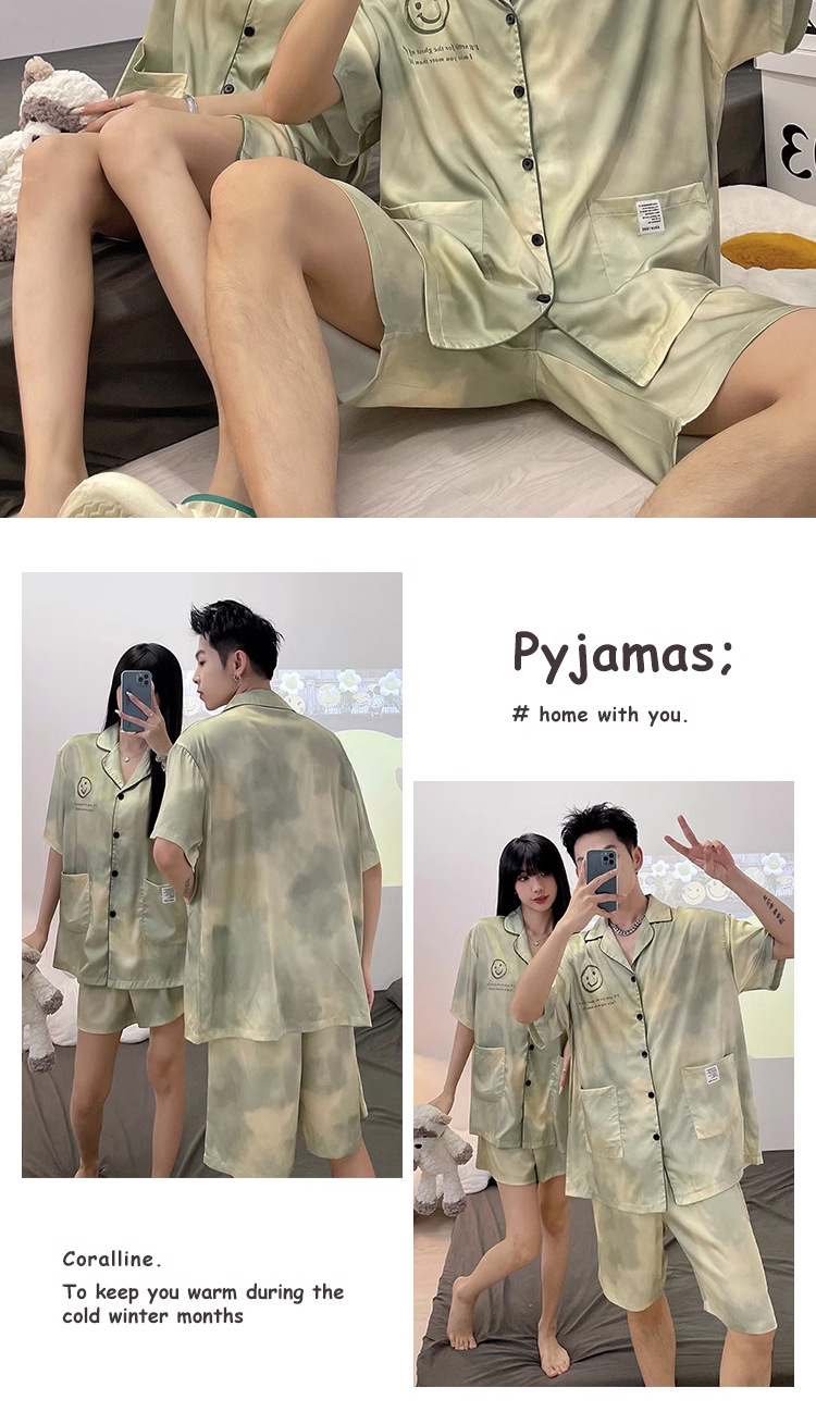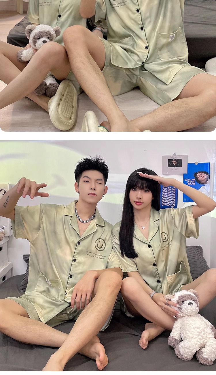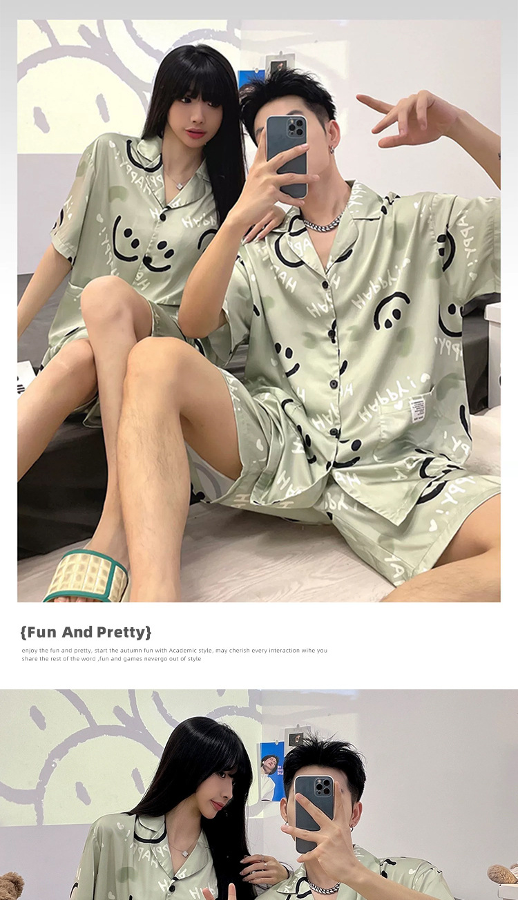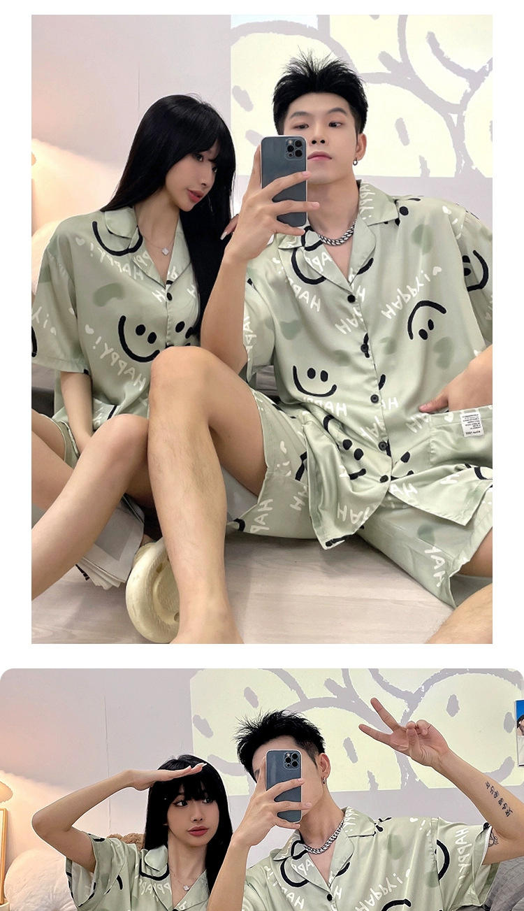 커플 잠옷 여자 아이스 실크 여름 반팔 하이 엔드 플러스 사이즈 남자 멋진 외주 여름 홈 의류 세트스토어 가기