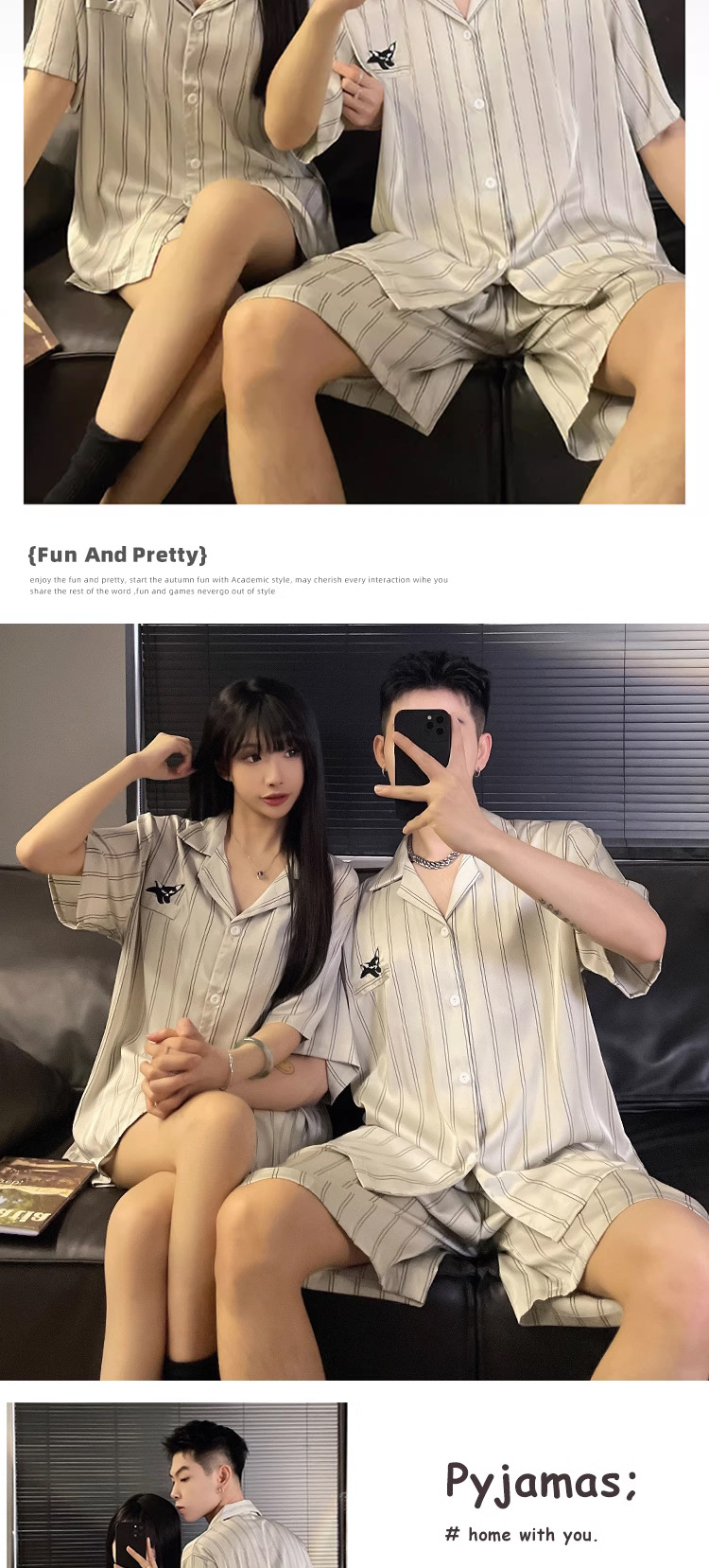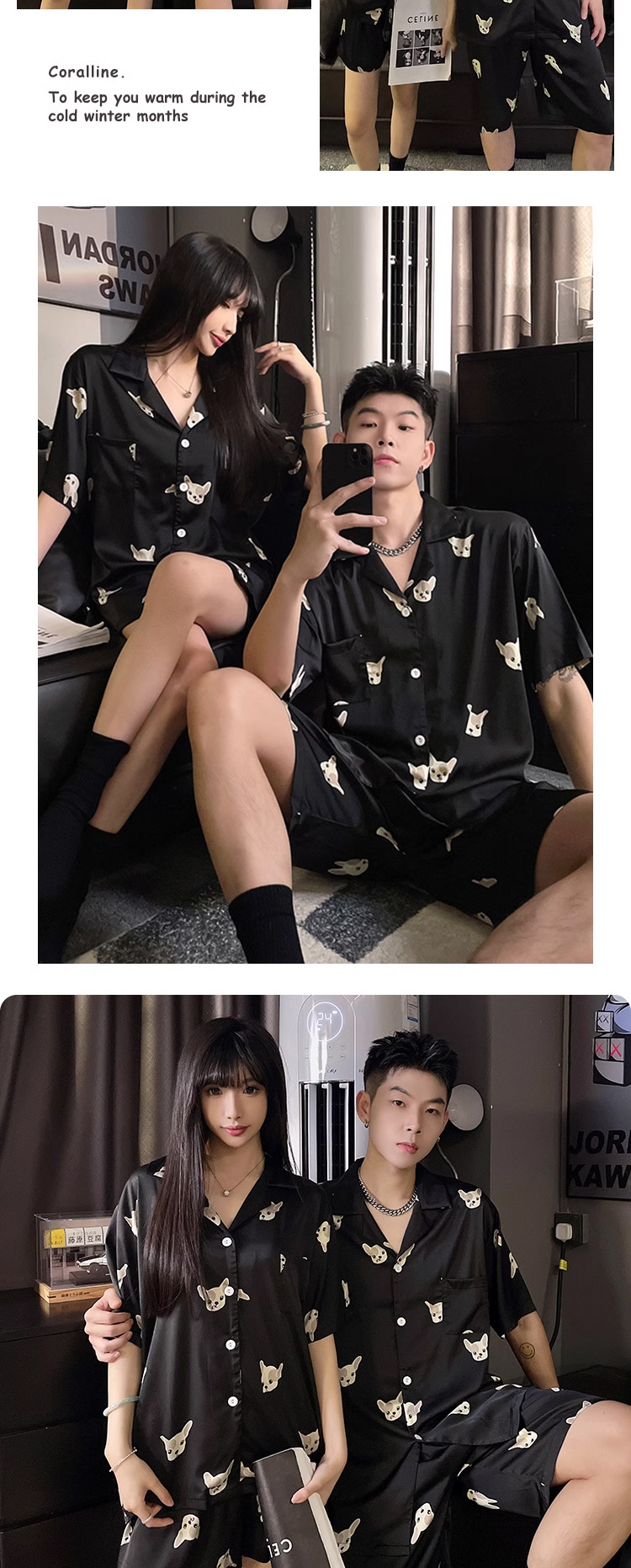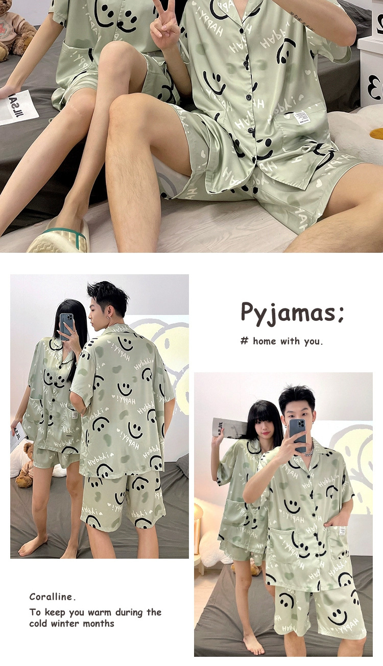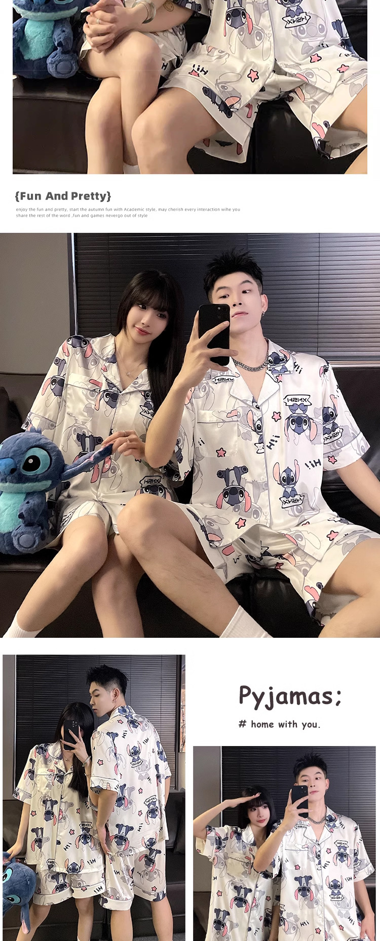 커플 잠옷 여자 아이스 실크 여름 반팔 하이 엔드 플러스 사이즈 남자 멋진 외주 여름 홈 의류 세트스토어 가기