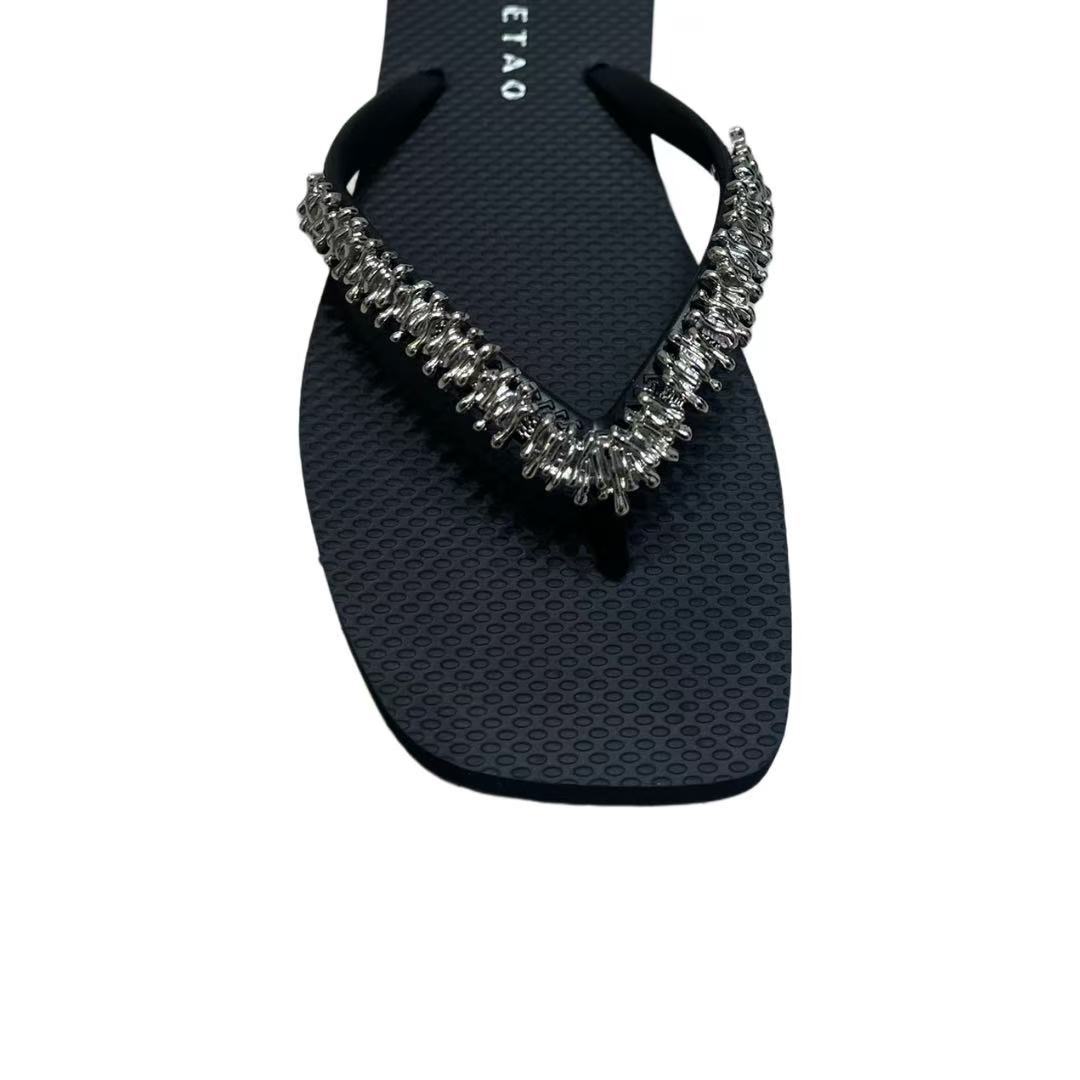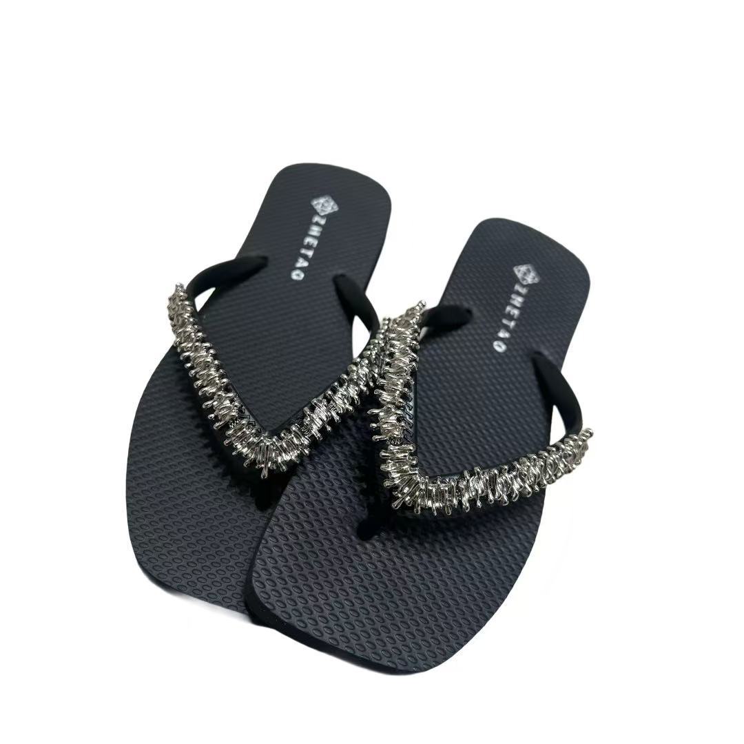 2025 봄 뉴 스퀘어 플랫 슬리퍼 유행 외부 착용 모든 경기 캐주얼 비치 여성의 플립 플롭