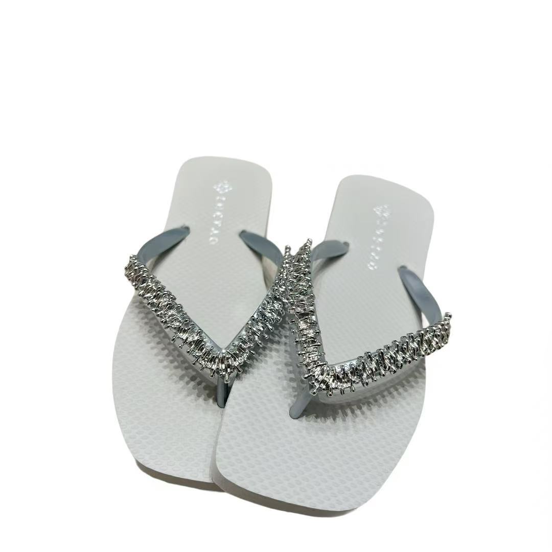 2025 봄 뉴 스퀘어 플랫 슬리퍼 유행 외부 착용 모든 경기 캐주얼 비치 여성의 플립 플롭스토어 가기