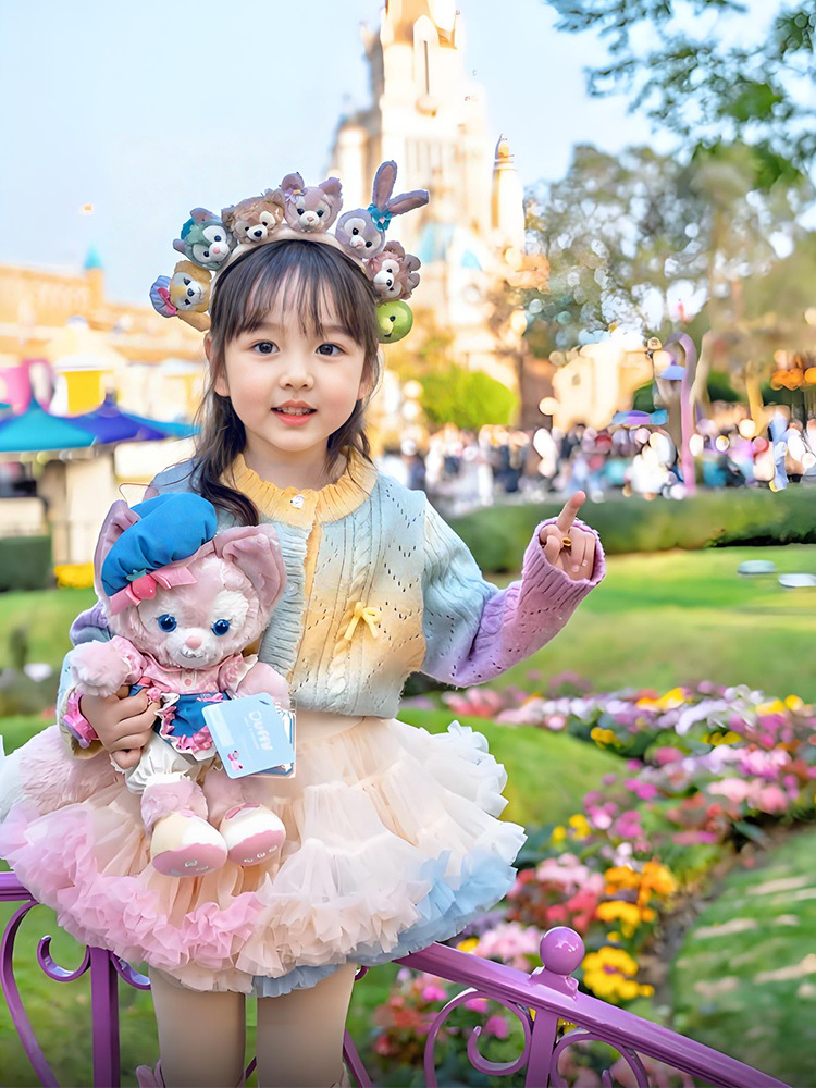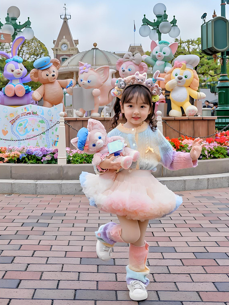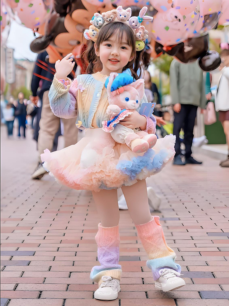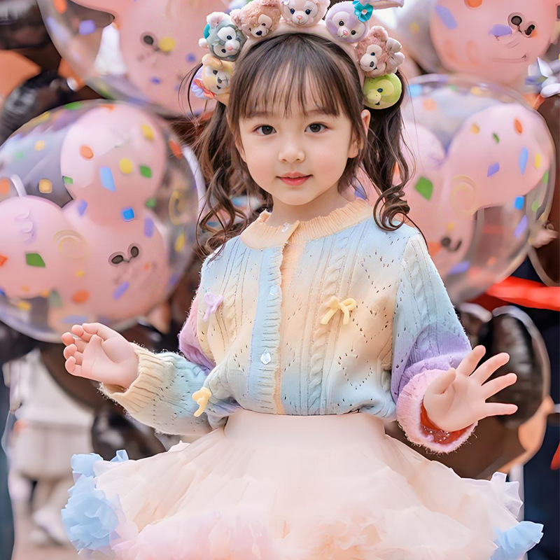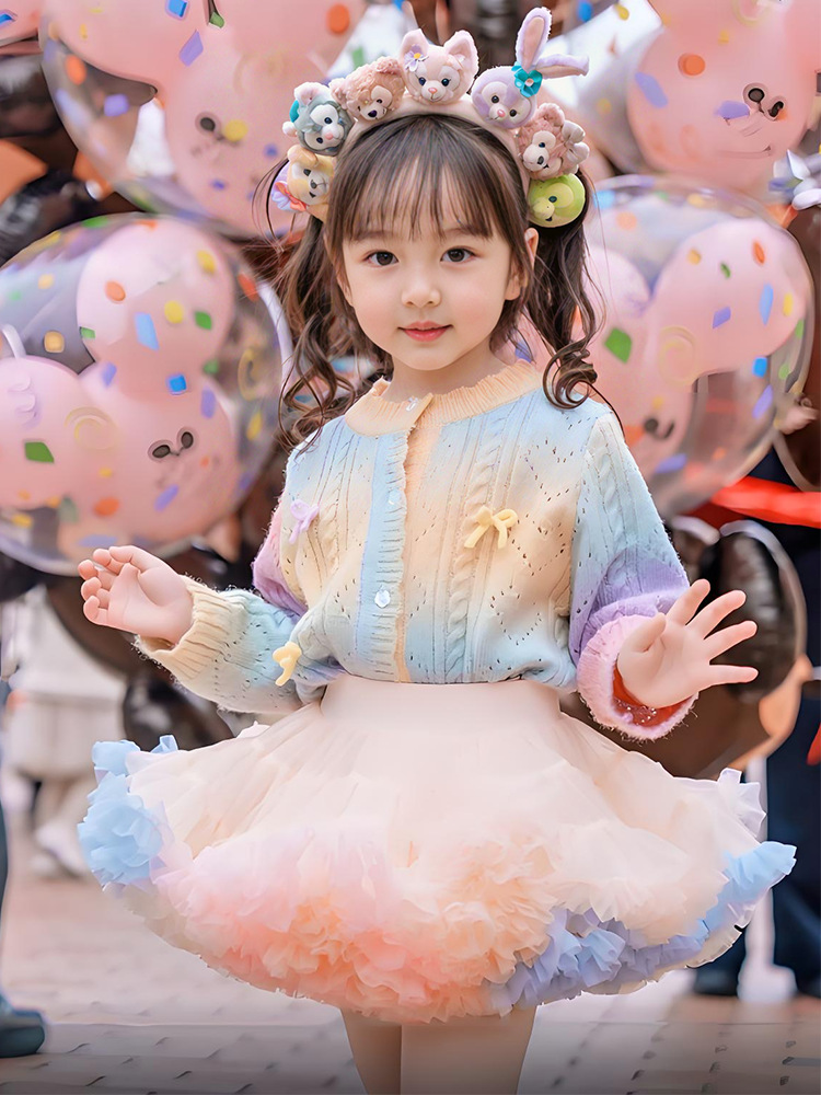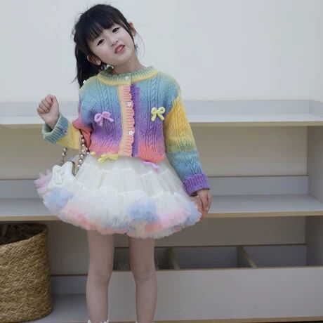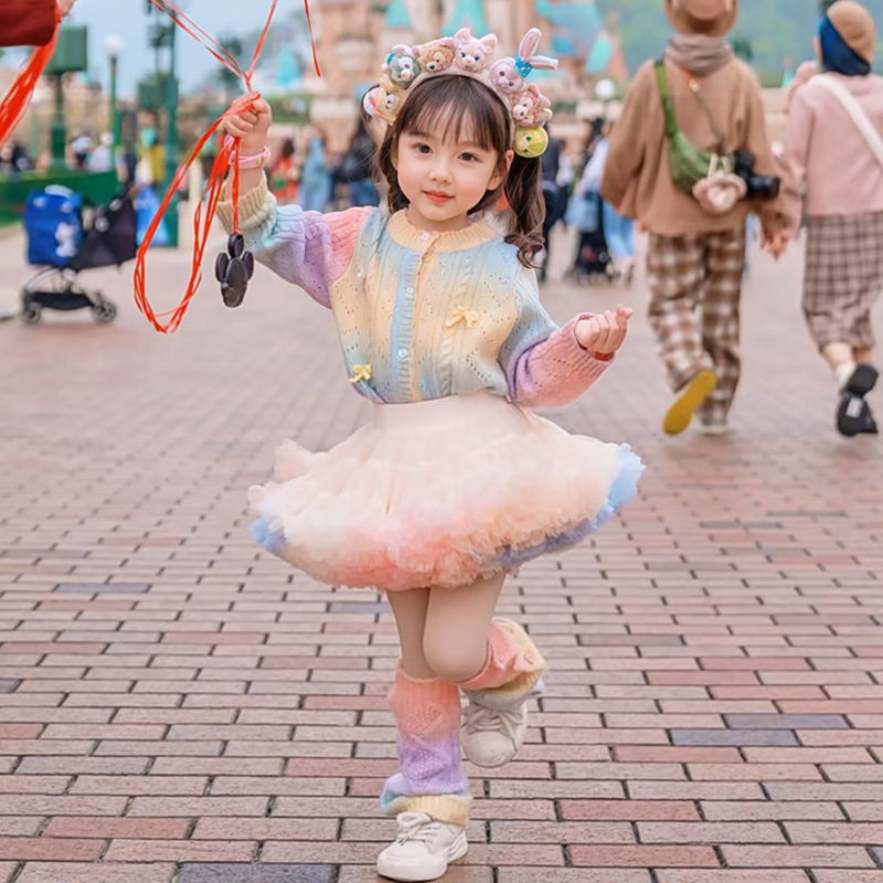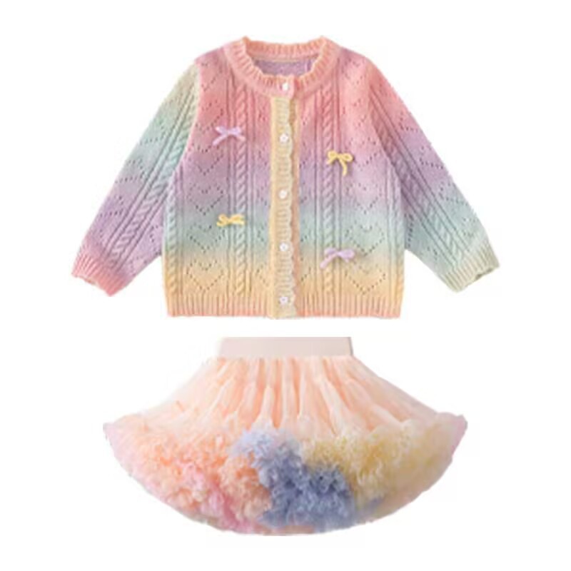 • 리본 컬러풀한 스웨터 + 핑크 레인보우 반기장 투투 스커트