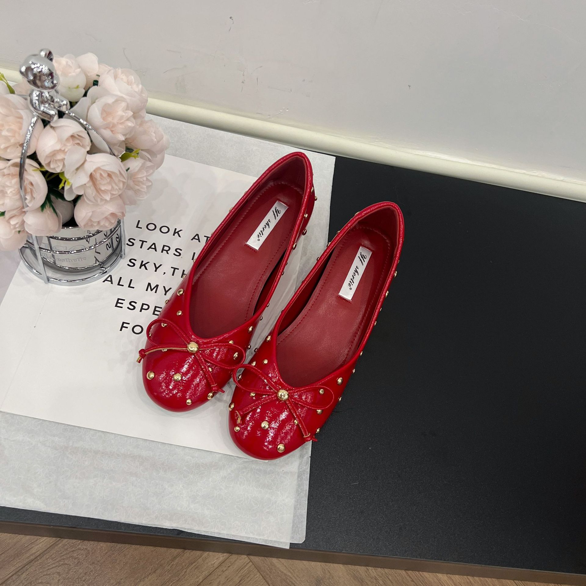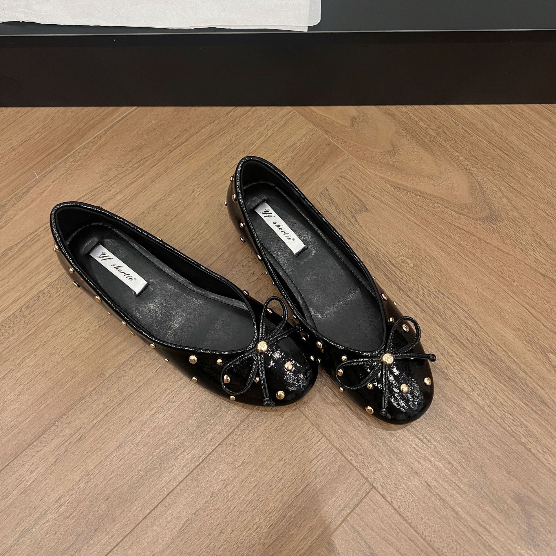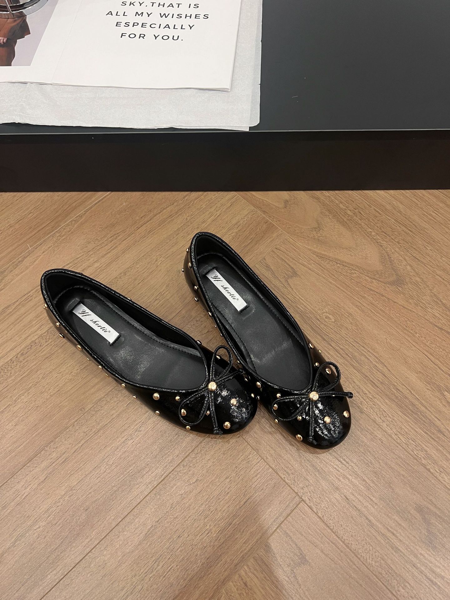 높이 5cm 활 리벳 특허 가죽 싱글 레이어 신발 여성 2025 봄 새로운 레트로 슬립 온 플랫 발레 신발스토어 가기