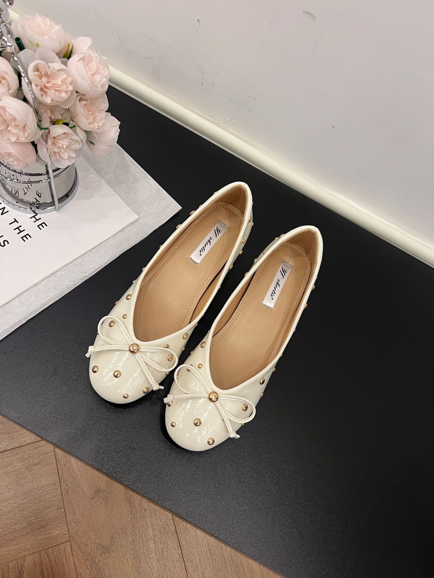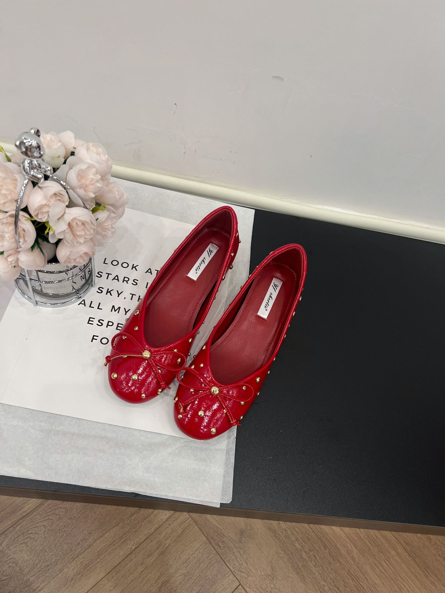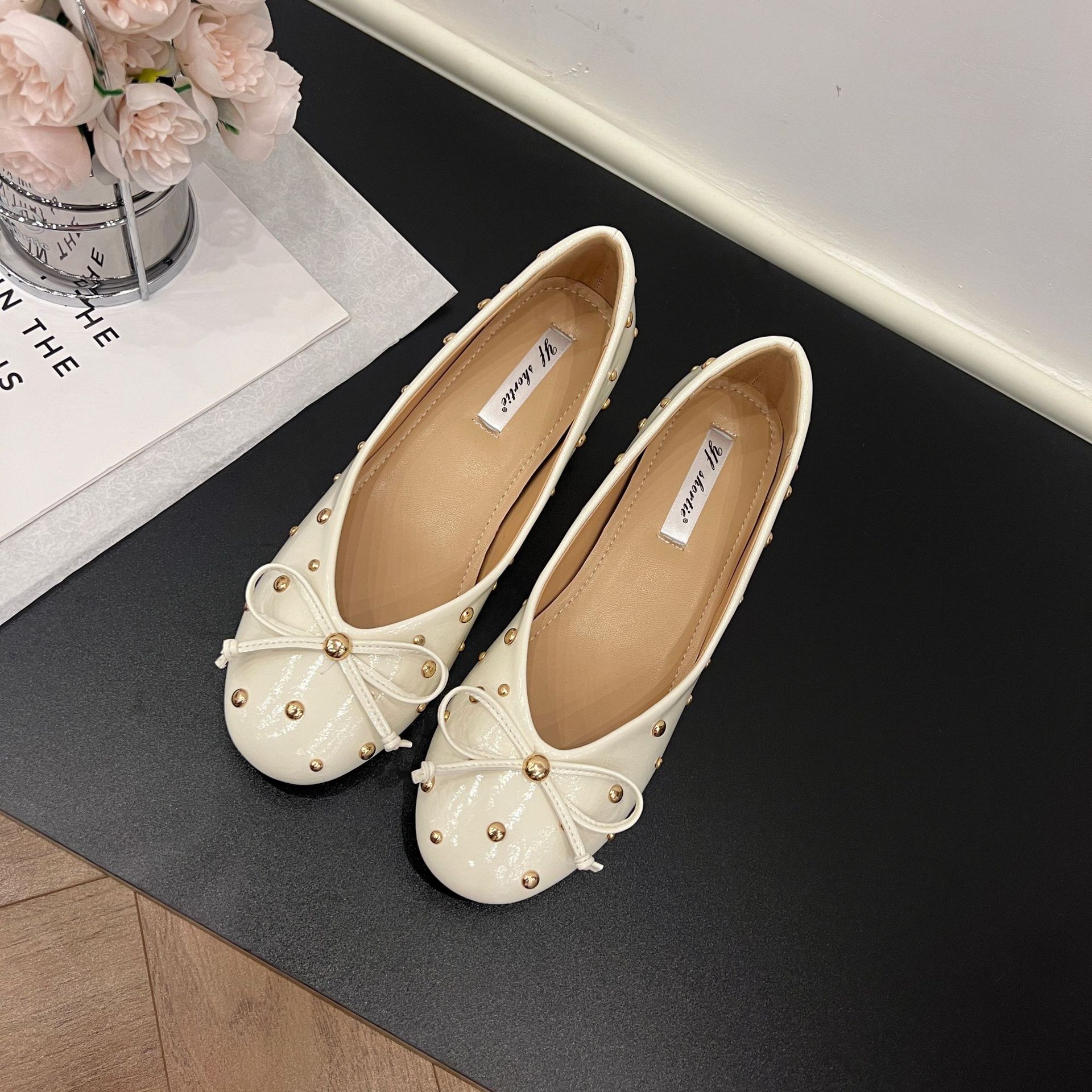 높이 5cm 활 리벳 특허 가죽 싱글 레이어 신발 여성 2025 봄 새로운 레트로 슬립 온 플랫 발레 신발스토어 가기
