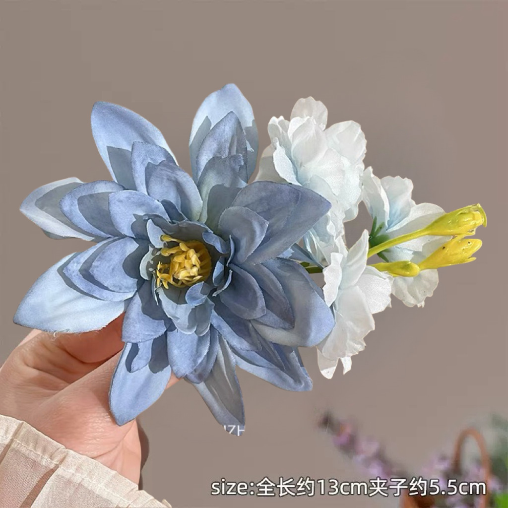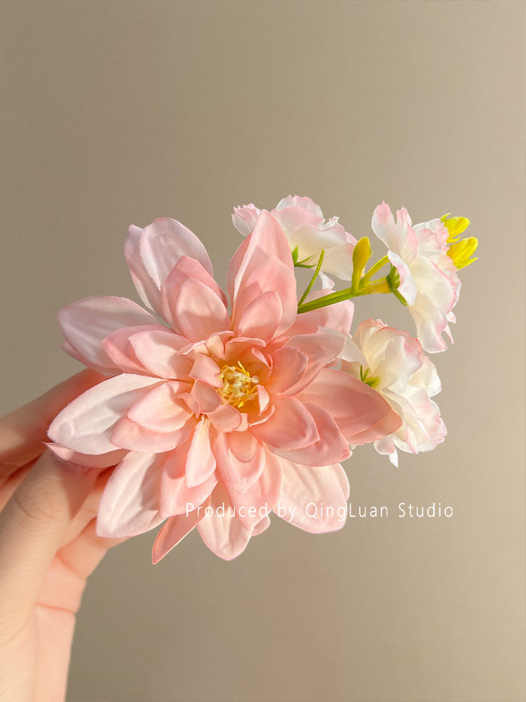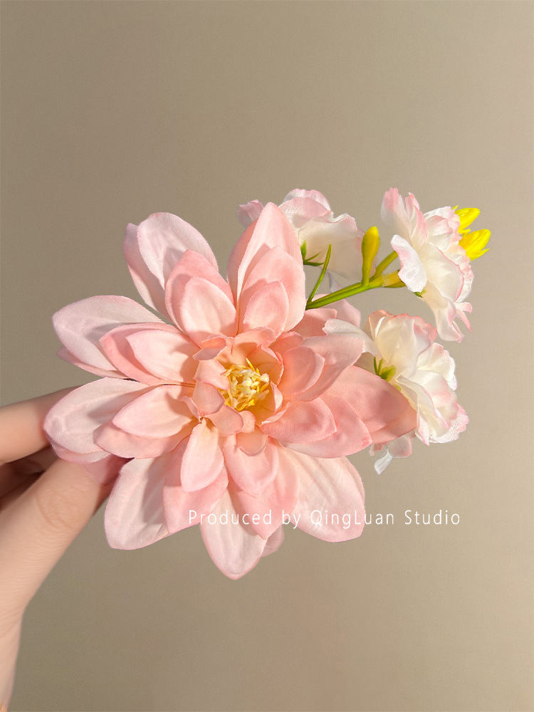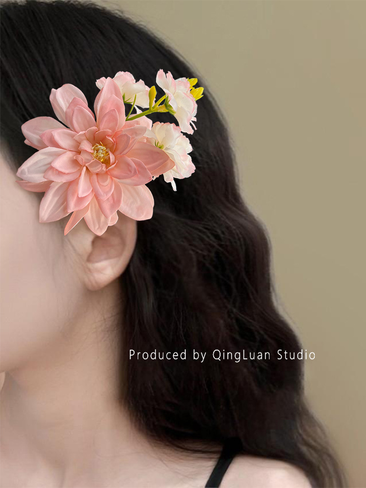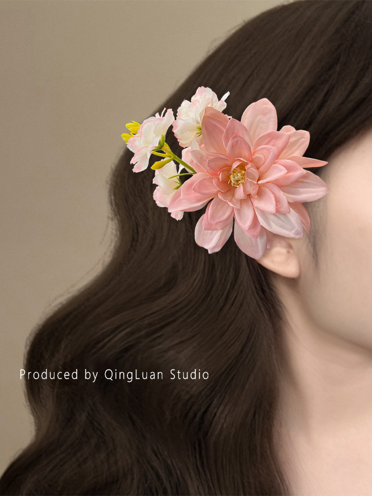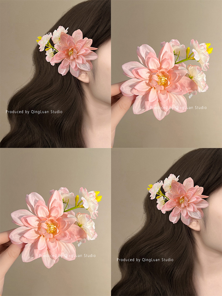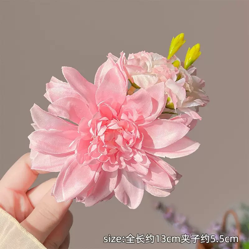봄 방학 휴가 분위기 핑크 모란 꽃 헤어핀 여성 사이드 클립 헤어 액세서리 인공 꽃 덕빌 클립 헤어핀