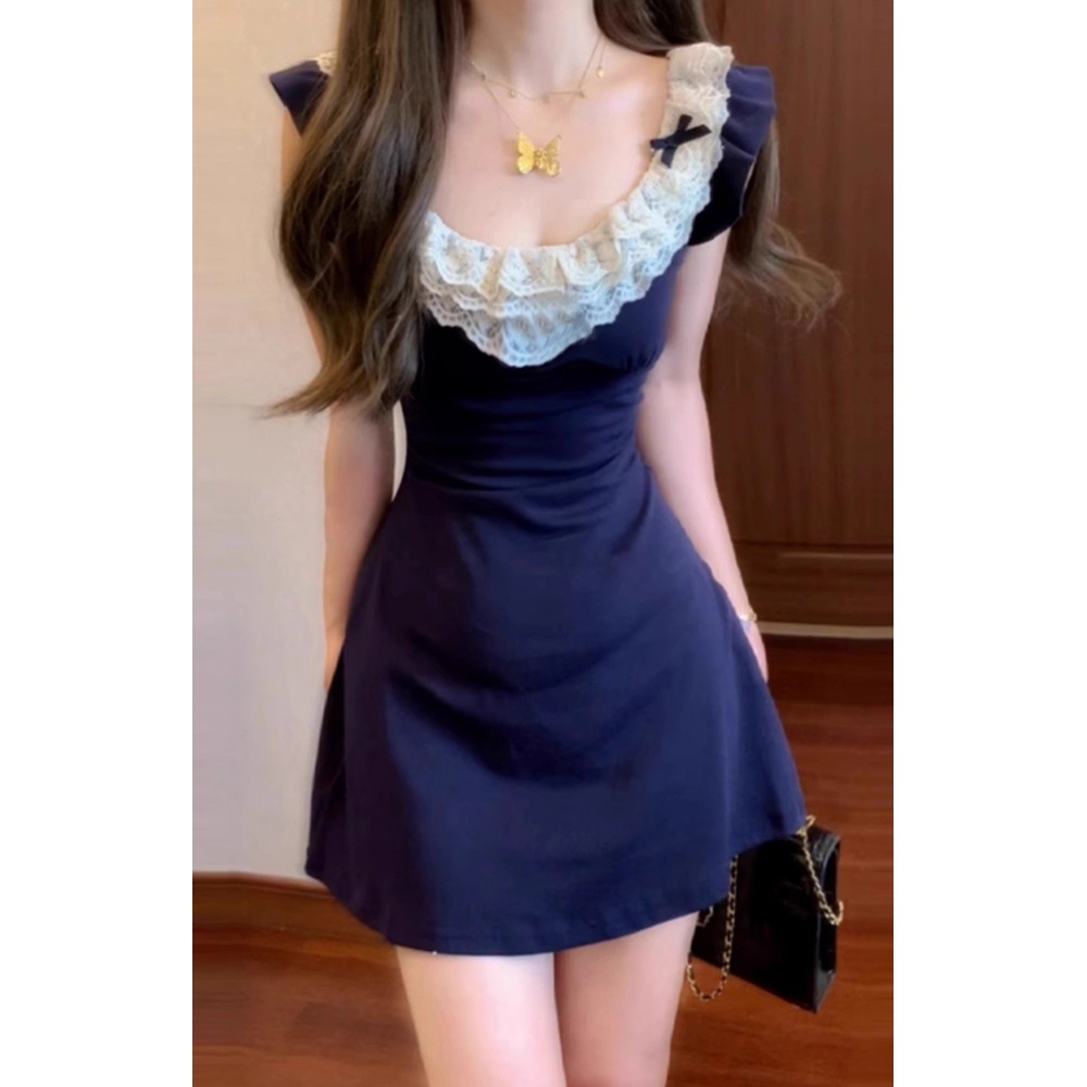프랑스 여름 순수한 욕망 작은 비행 소매 원피스 여성의 봄 새 소녀의 작은 허리 뜨거운 소녀의 엉덩이 스커트스토어 가기