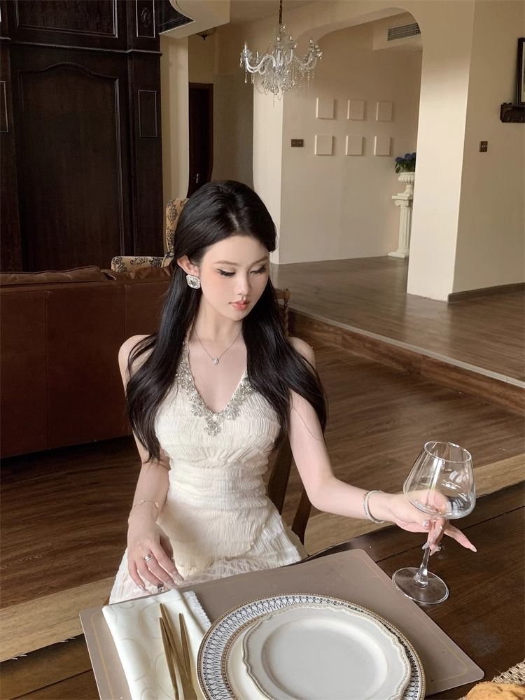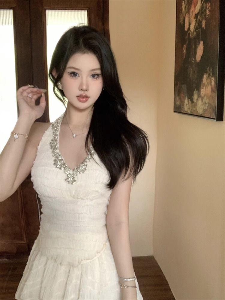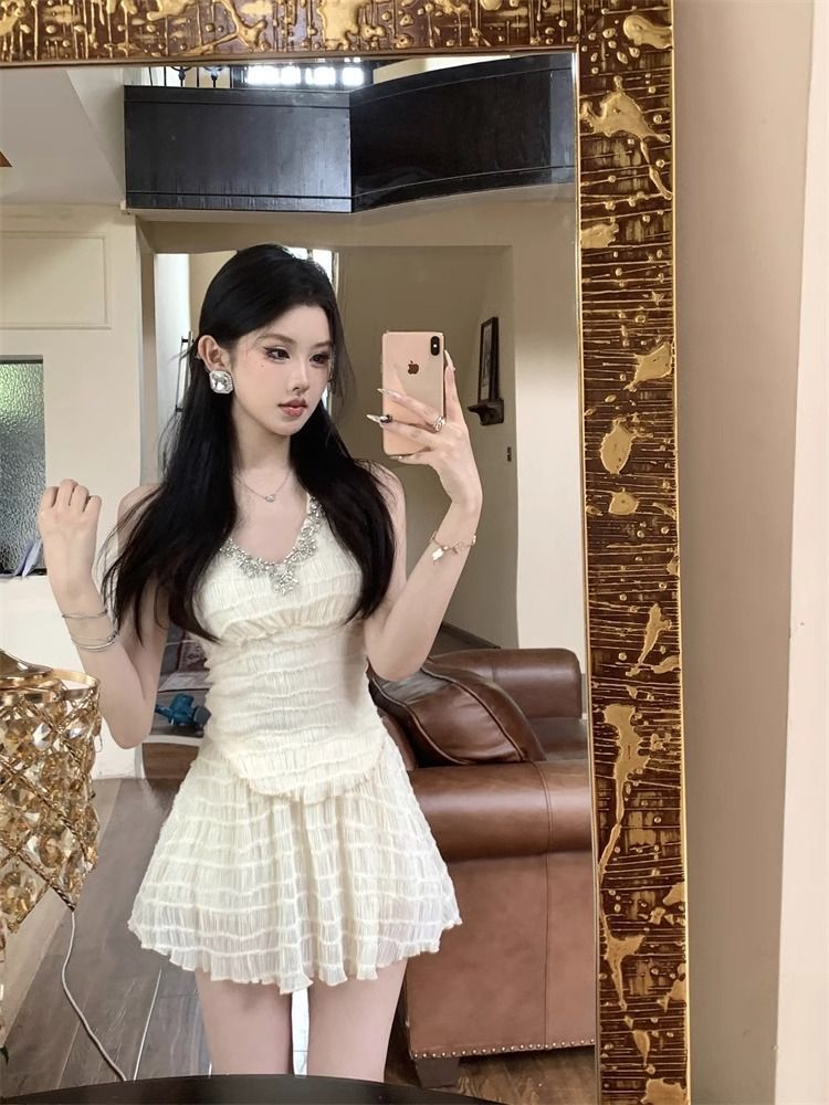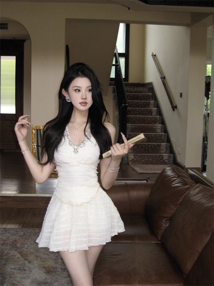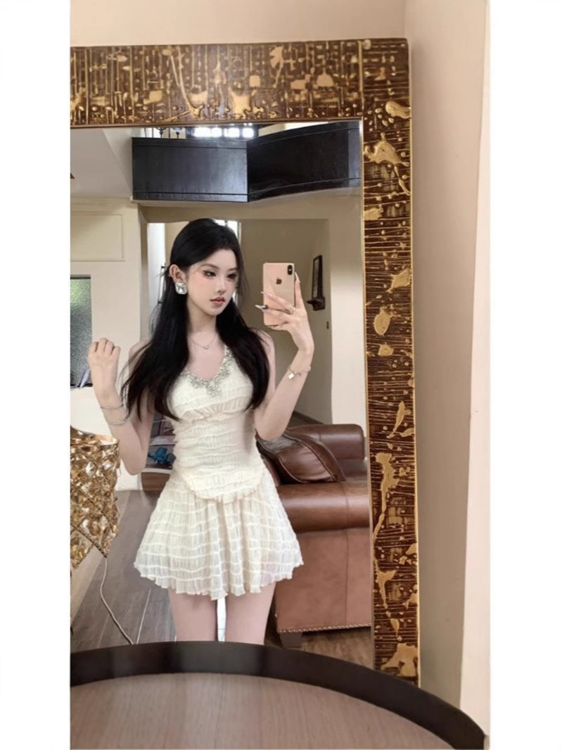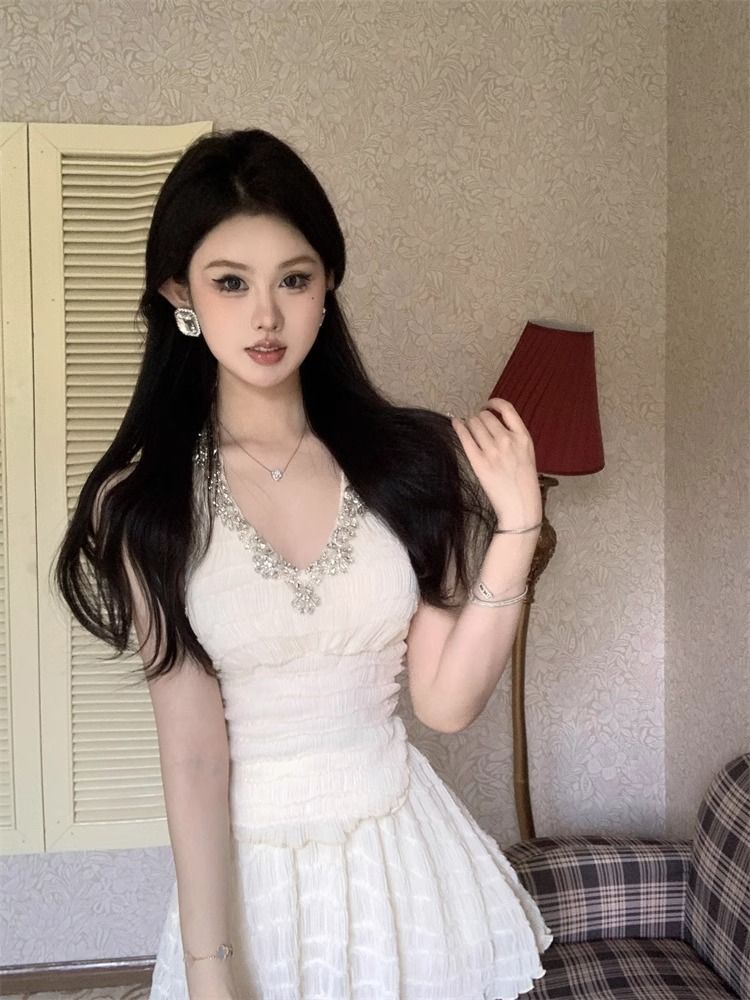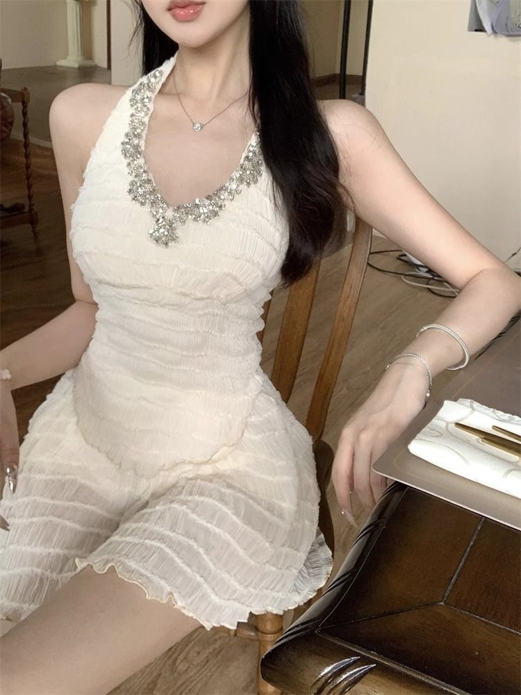여름 다이아몬드가 박힌 순수한 목 카미 솔 최고 여성 디자인 레이스 슬리밍 짧은 바지 원피스 패션 세트스토어 가기
