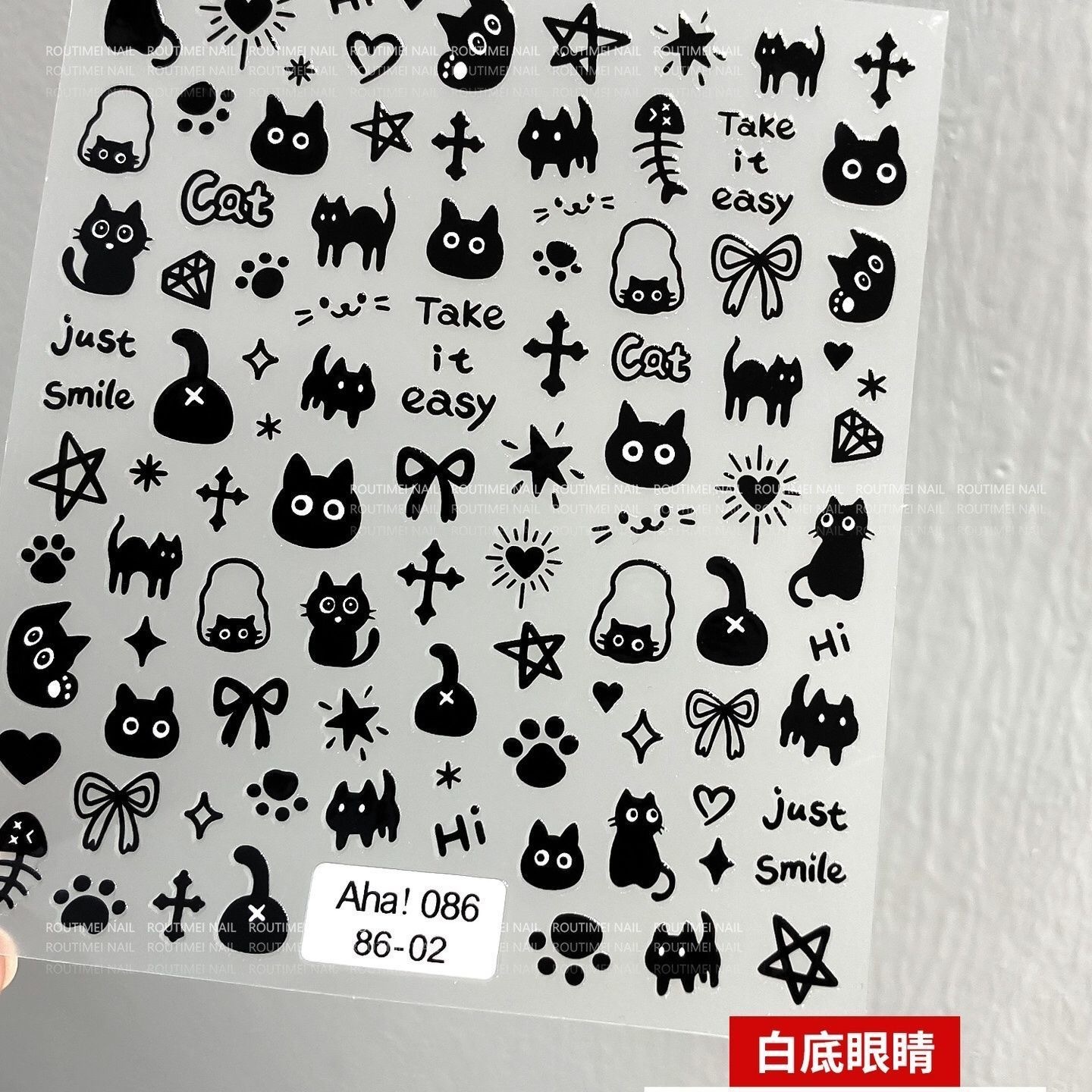 인터넷 인기 만화 스티커 클래식 흑백 고양이 새로운 귀여운 인스타 고양이 네일아트 접착제