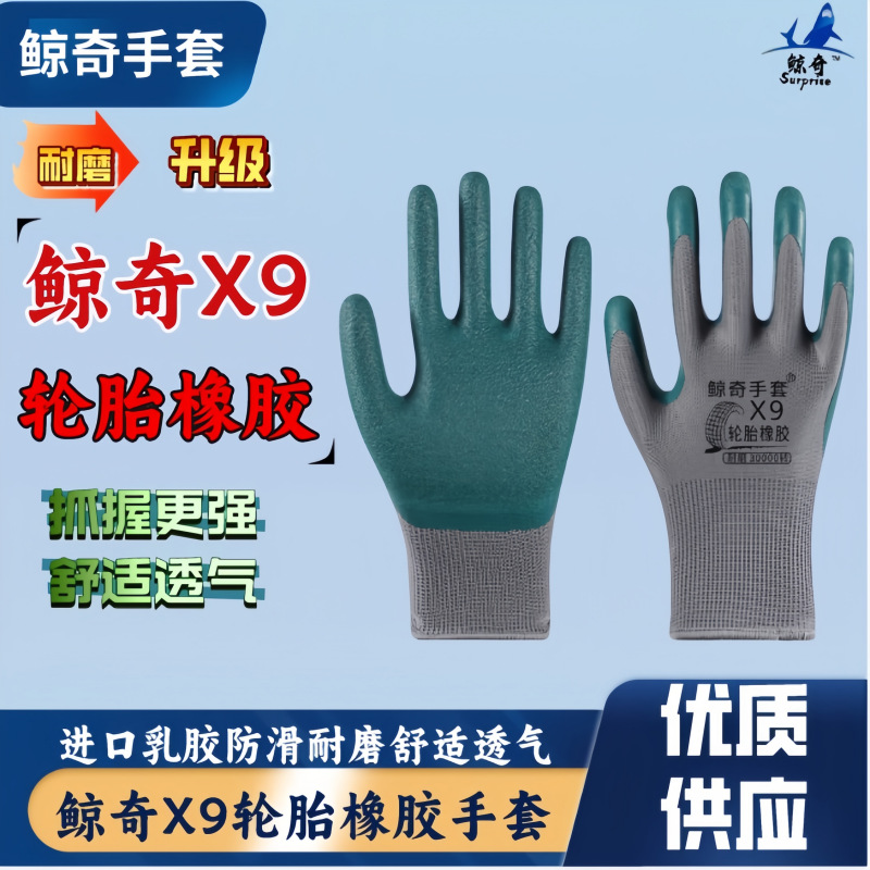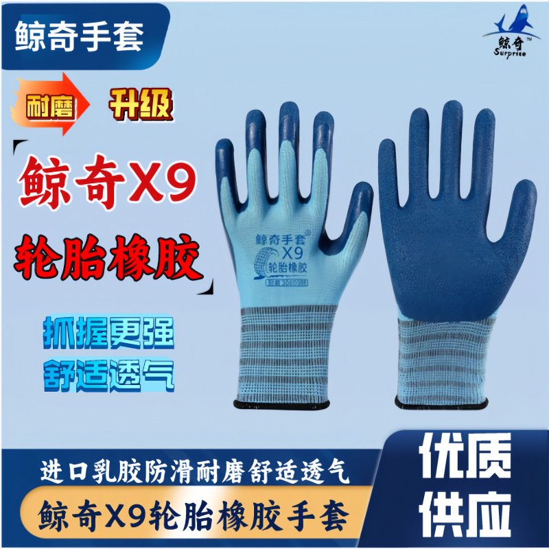 고래의 기적 X9 타이어 고무 코팅 노동 보호 장갑 내마모성 통기성 건설 현장 운반 작업 야외 수작업 전용