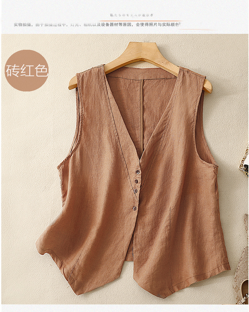 2025년 신형 샌드 워시 조끼 여성 복고풍 민소매 탑 조끼 루즈한 예술적 양복 조끼 카디건 조끼 여성용