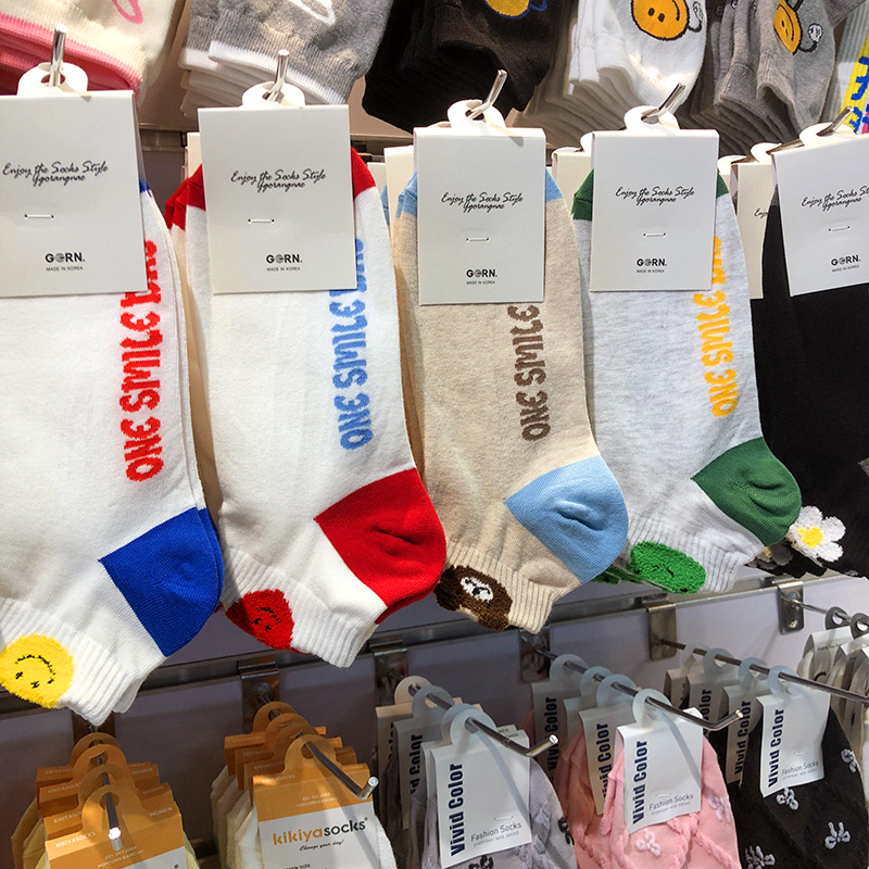 한국 수입 ggorangnae 양말 도파민 웃는 곰 소녀 만화 양말 코튼 양말과 일치하는 짧은 튜브 색상스토어 가기